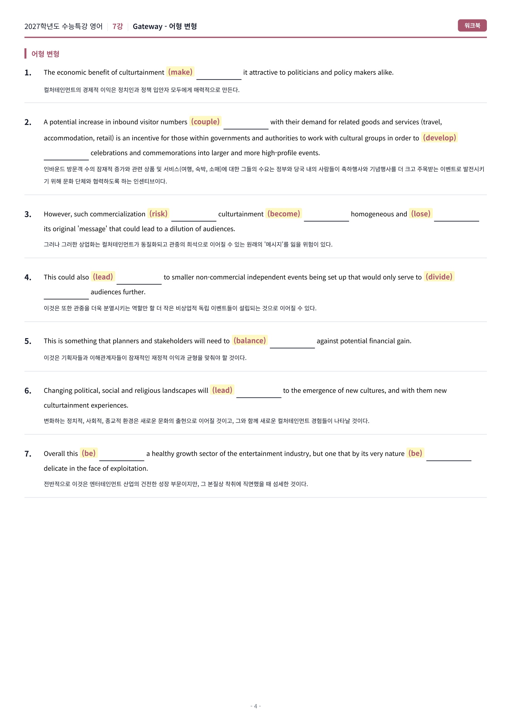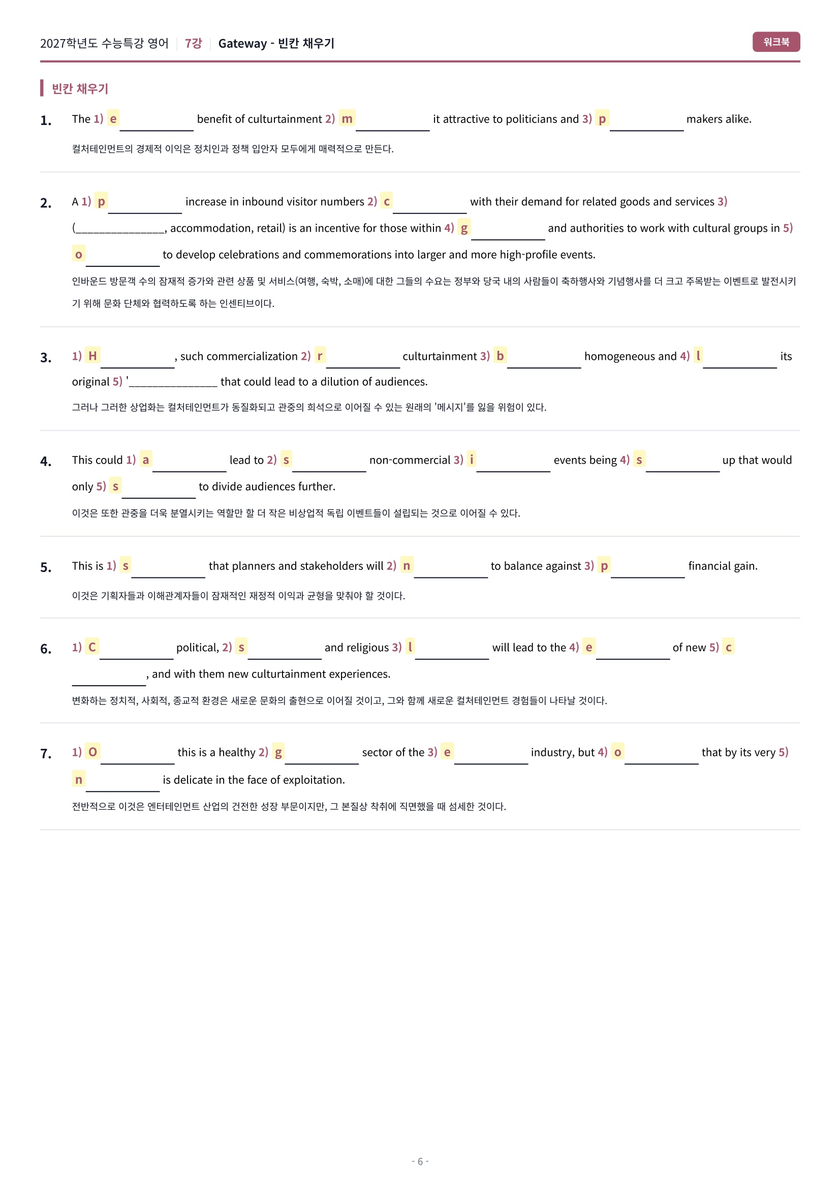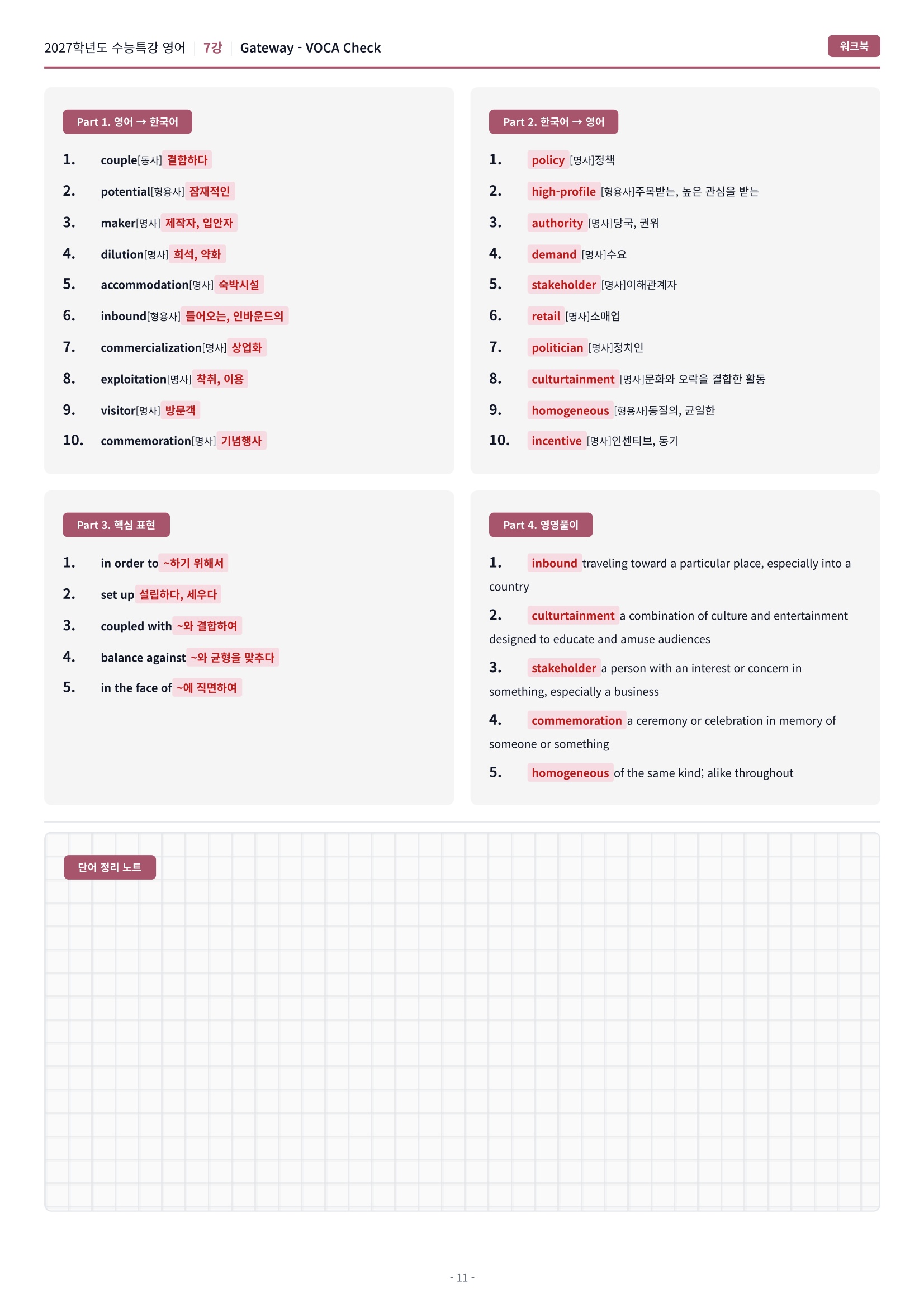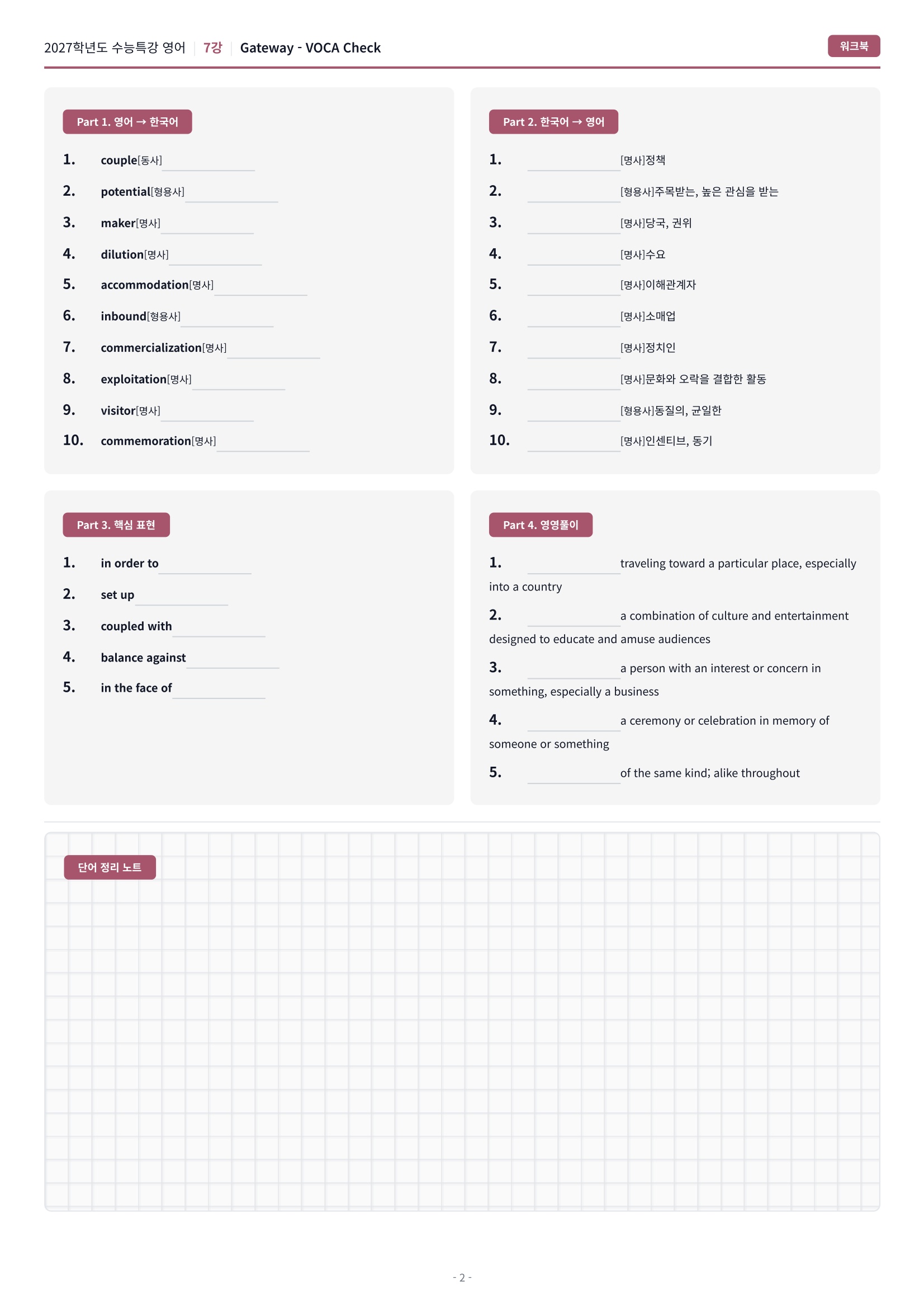 1. VOCA CHECK : ์๋ฌธ + ์ ์ฒดํด์ + ํ์๋จ์ด + ๋์์ด + ๋ฐ์์ด + ์์ํ์ด + ํ์ํํ