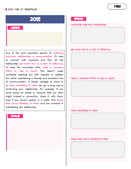 ์ง๋ฌธ๋ณ ํต์ฌ ์์ฝ๋ ธํธ, Main Idea, ๋ฌธ๋งฅ ์ดํ๋ก ์ด๋ฃจ์ด์ ธ ์์ต๋๋ค.