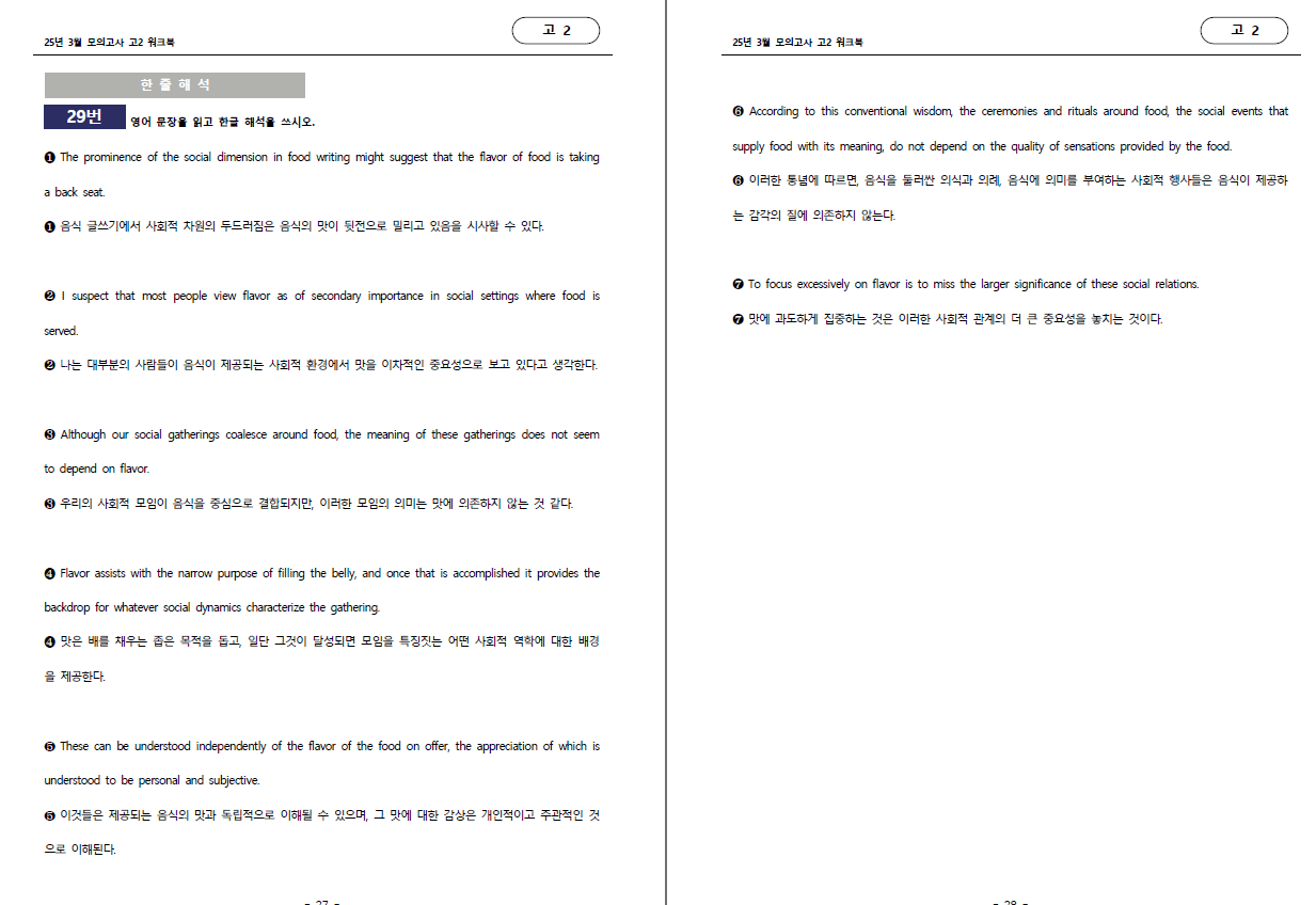 25학년도 3월 학력평가 고2 변형문제 입니다.