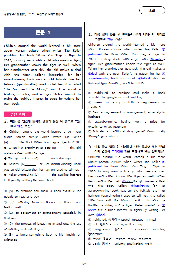 ๊ฐ ๋ณธ๋ฌธ๋ณ๋ก ๋ด์ ์ถ์ ํฌ์ธํธ๋ฅผ ๊ณ ๋ คํ์ฌ ๋งค์ฐ ์ธ๋ฐํ๊ฒ ์ถ์ ๋์์ผ๋ฉฐ ๋ง์ง๋ง์ ์ ์ฒด ์ง๋ฌธ์ ์ด๋ฒ & ์ดํ ํ๋ฆฐ๊ณณ ๋ชจ๋ ๊ณ ๋ฅด๊ธฐ ์ ํ์ด ์ฒจ๋ถ๋์ด ์์ต๋๋ค.
