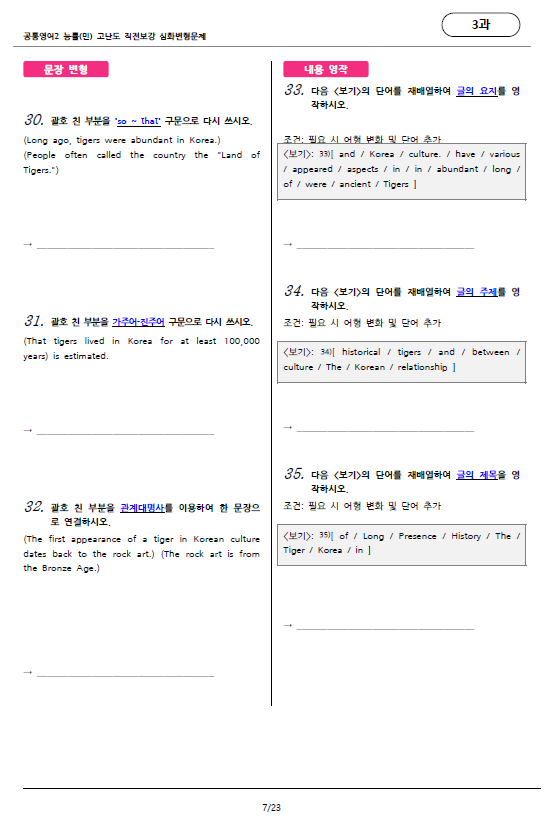 4. ๋ฌธ์ฅ ๋ณํ : ์๋ํ, ๊ด๊ณ๋๋ช ์ฌ, ํ๋ฒ ๋ฑ ๋ฌธ์ฅ์ ํํ๋ฅผ ๋ณํํ์ฌ ์จ๋ณด๊ธฐ