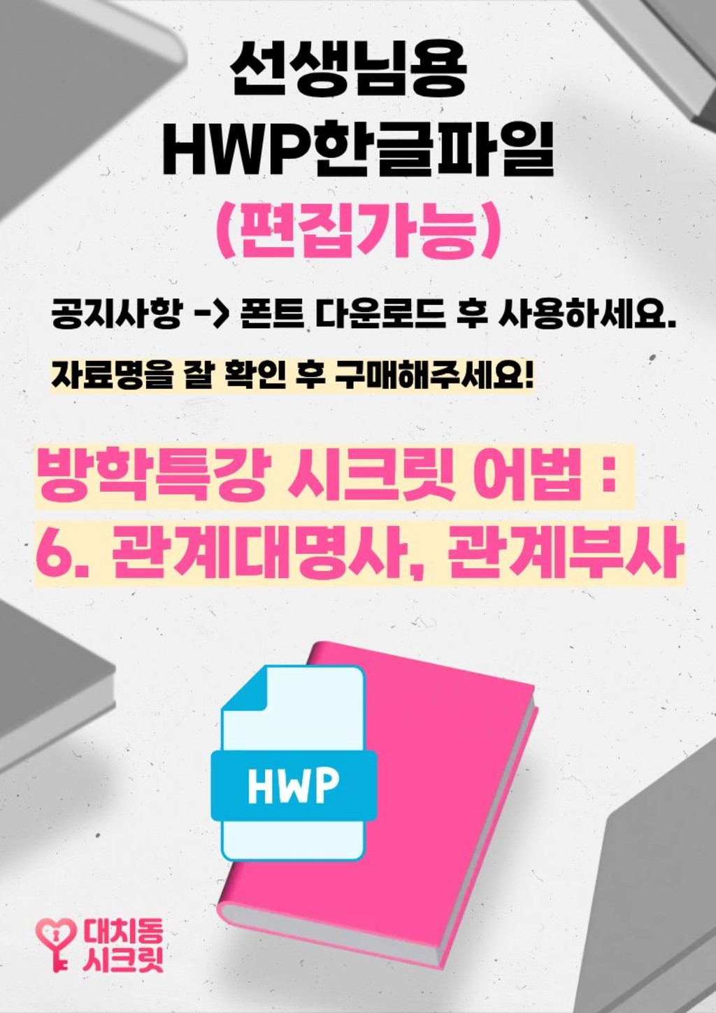 🩷시크릿어법: 6. 관계대명사, 관계부사 - 방학특강자료🩷