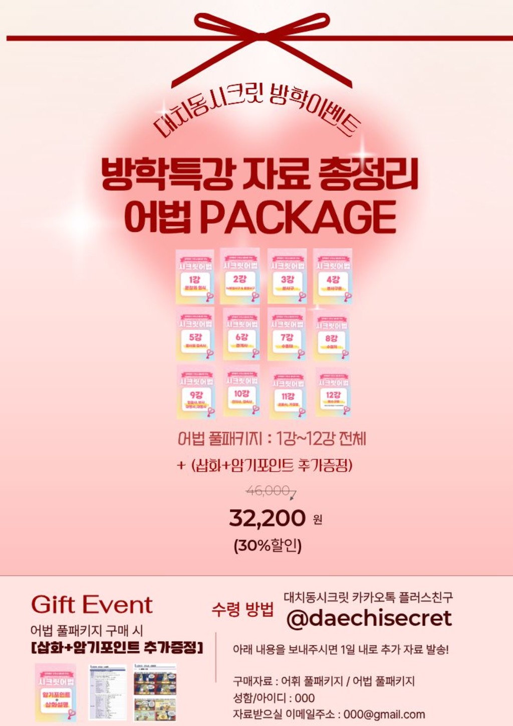 ๊ตฌ๋งค ํ ๋์น๋์ํฌ๋ฆฟ์ ๊ฐ์ ํ์ ์์ด๋/์ฑํจ๊ณผ ์๋ฃ ๋ฐ์ผ์ค ์ด๋ฉ์ผ์ฃผ์๋ฅผ