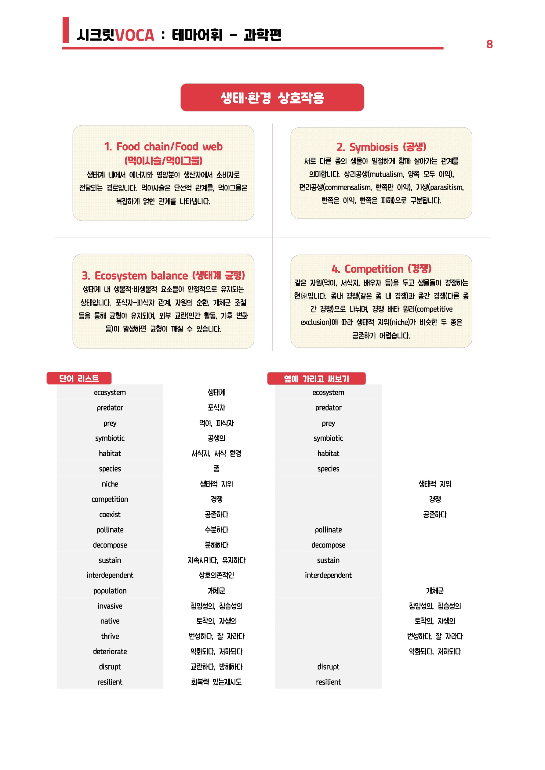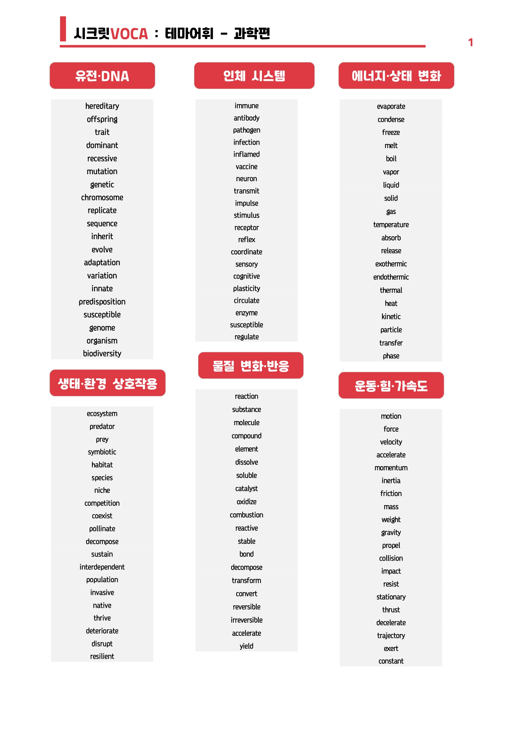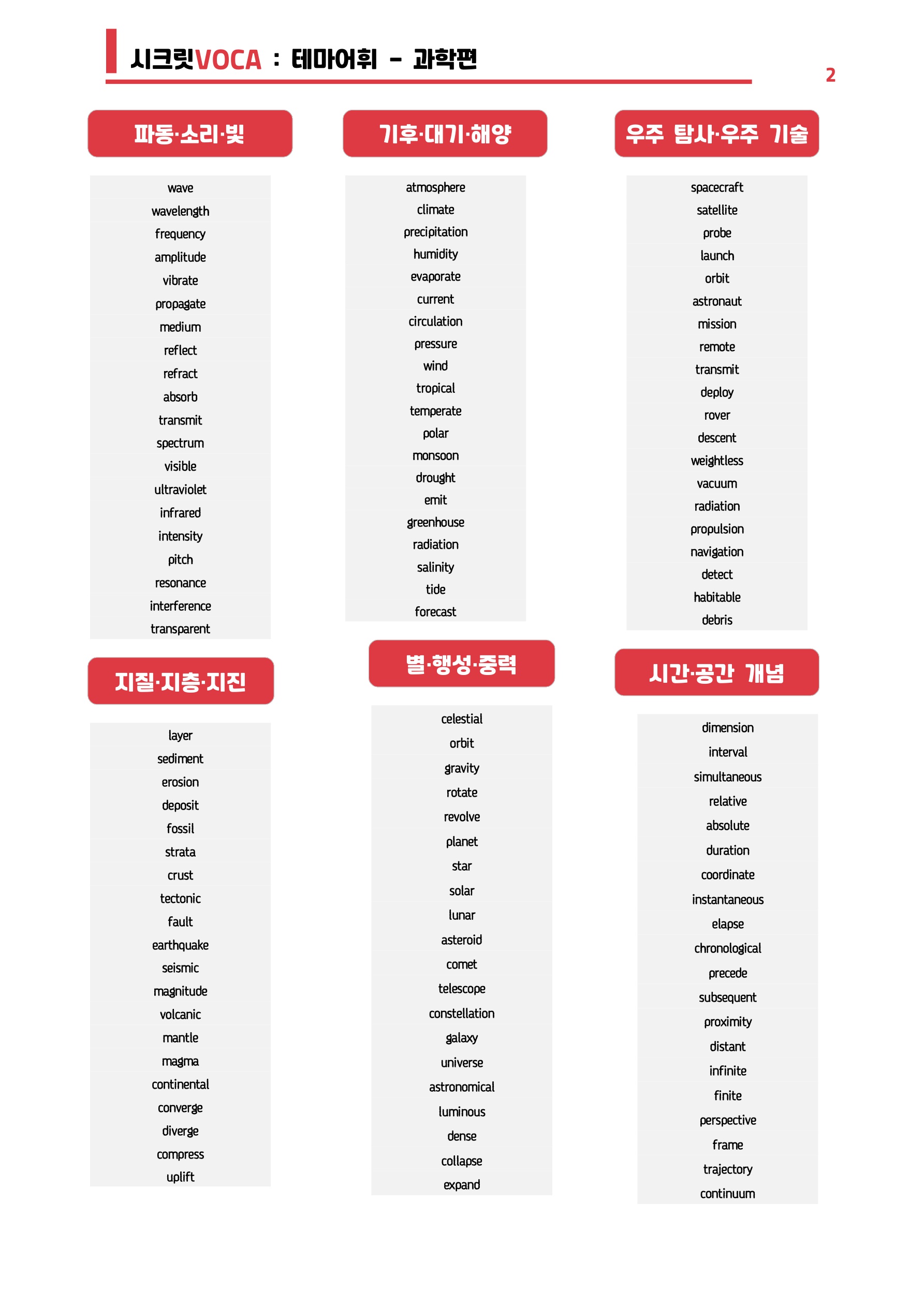 페이지 구성 [과학 관련 어휘 총 260단어]