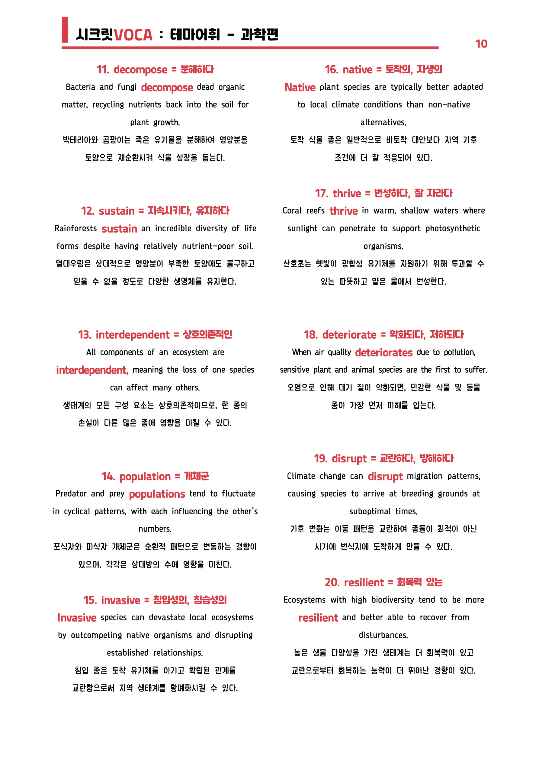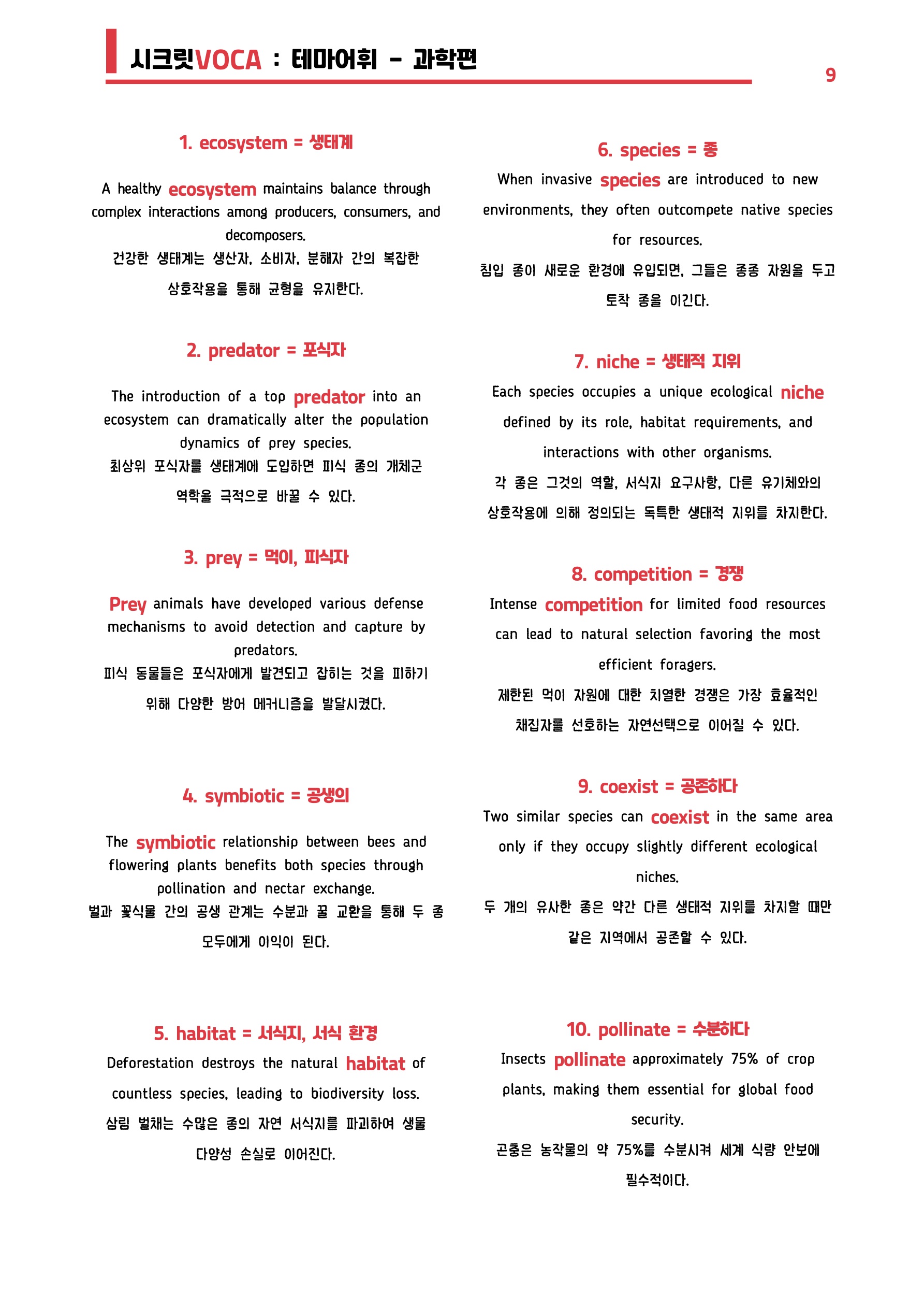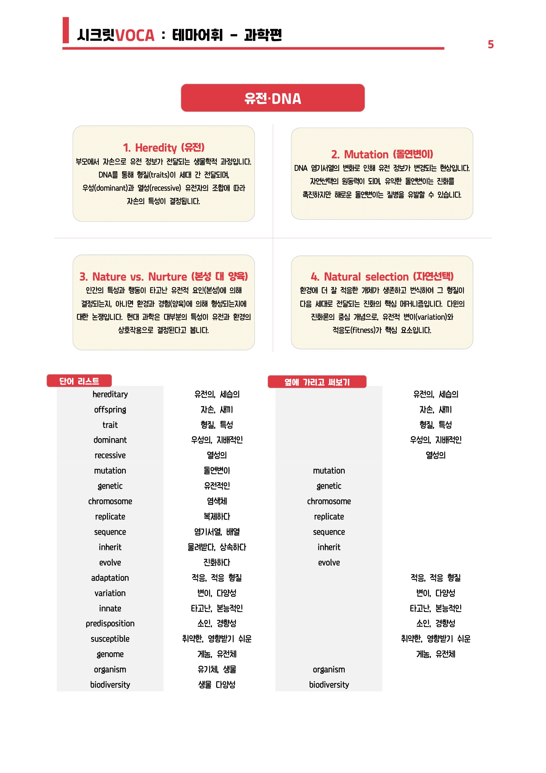 페이지 구성 [과학 관련 어휘 총 260단어]
