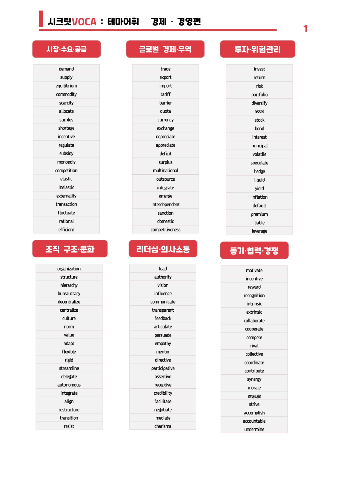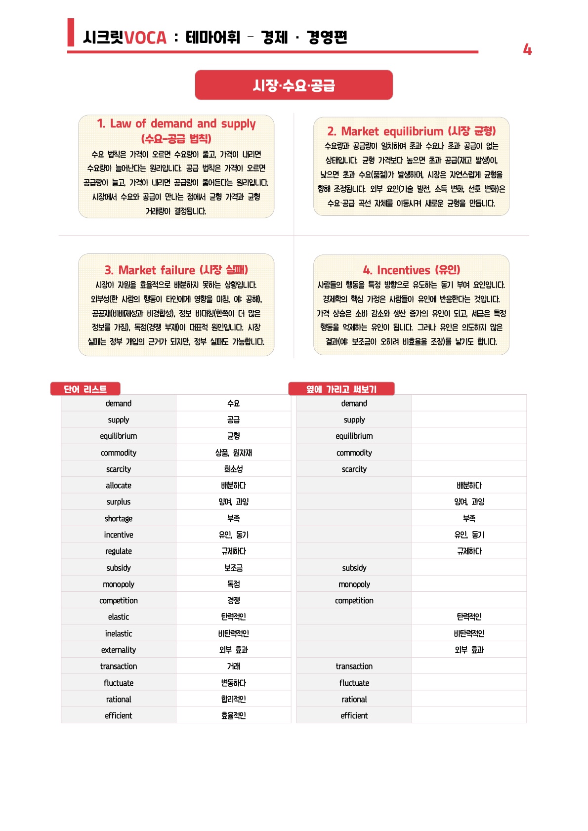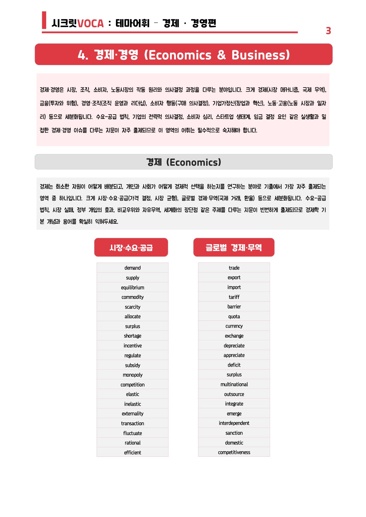 🩷시크릿VOCA : 테마별 어휘 [경제] (220단어) - 방학특강 어휘 자료🩷