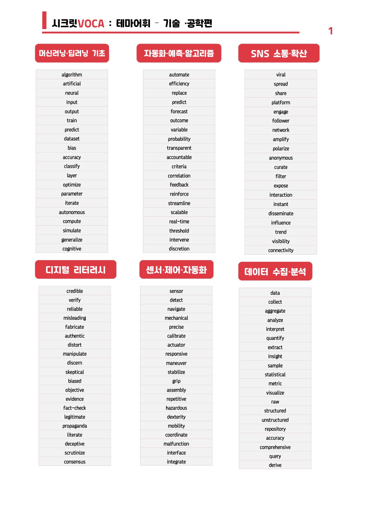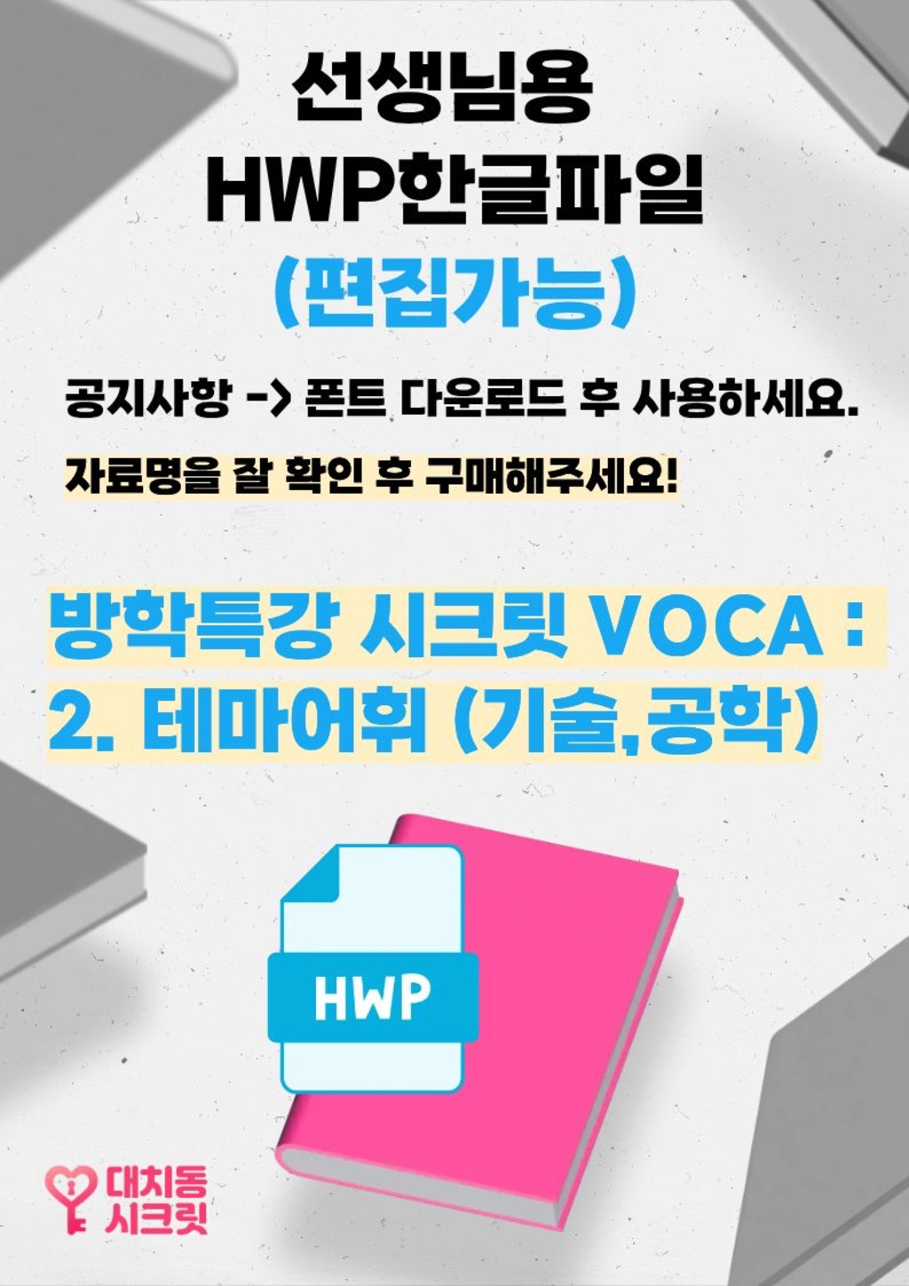 🩷시크릿VOCA : 테마별 어휘 [기술,공학] (220단어) - 방학특강 어휘 자료🩷