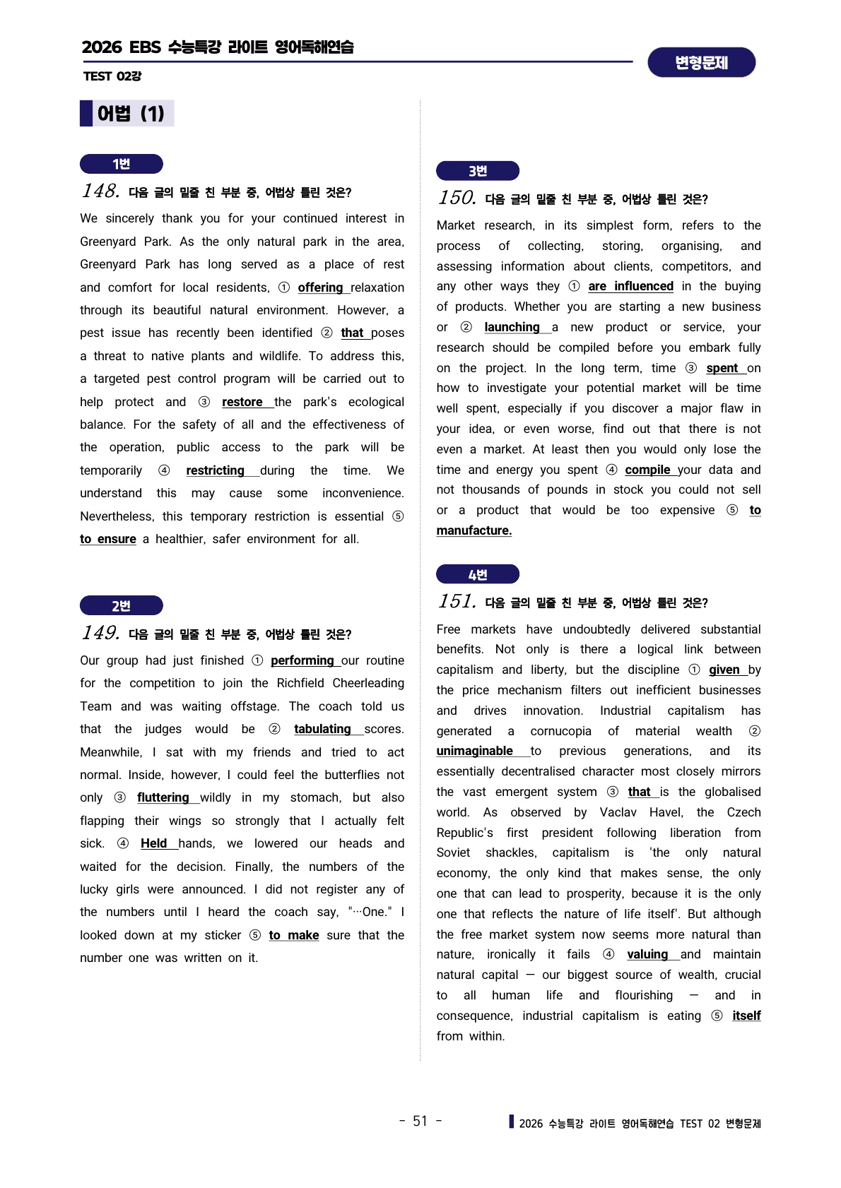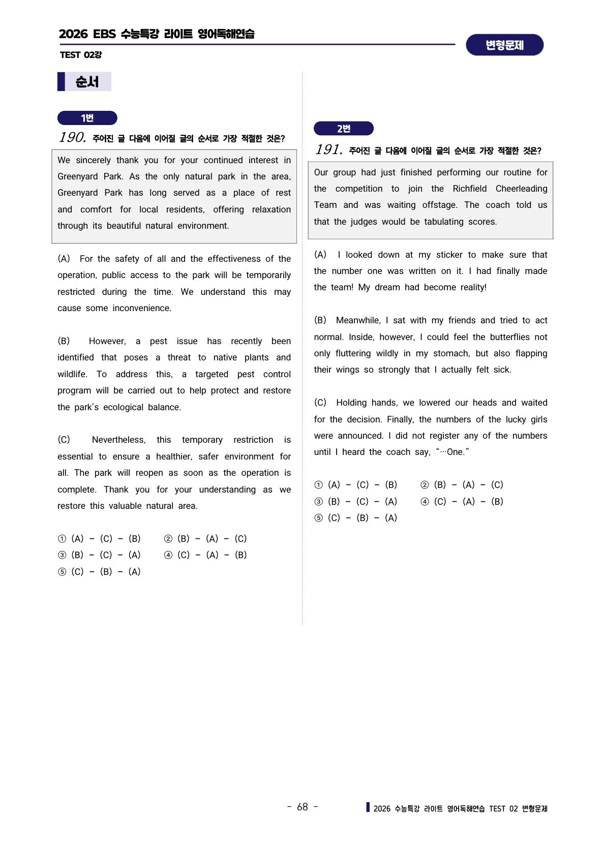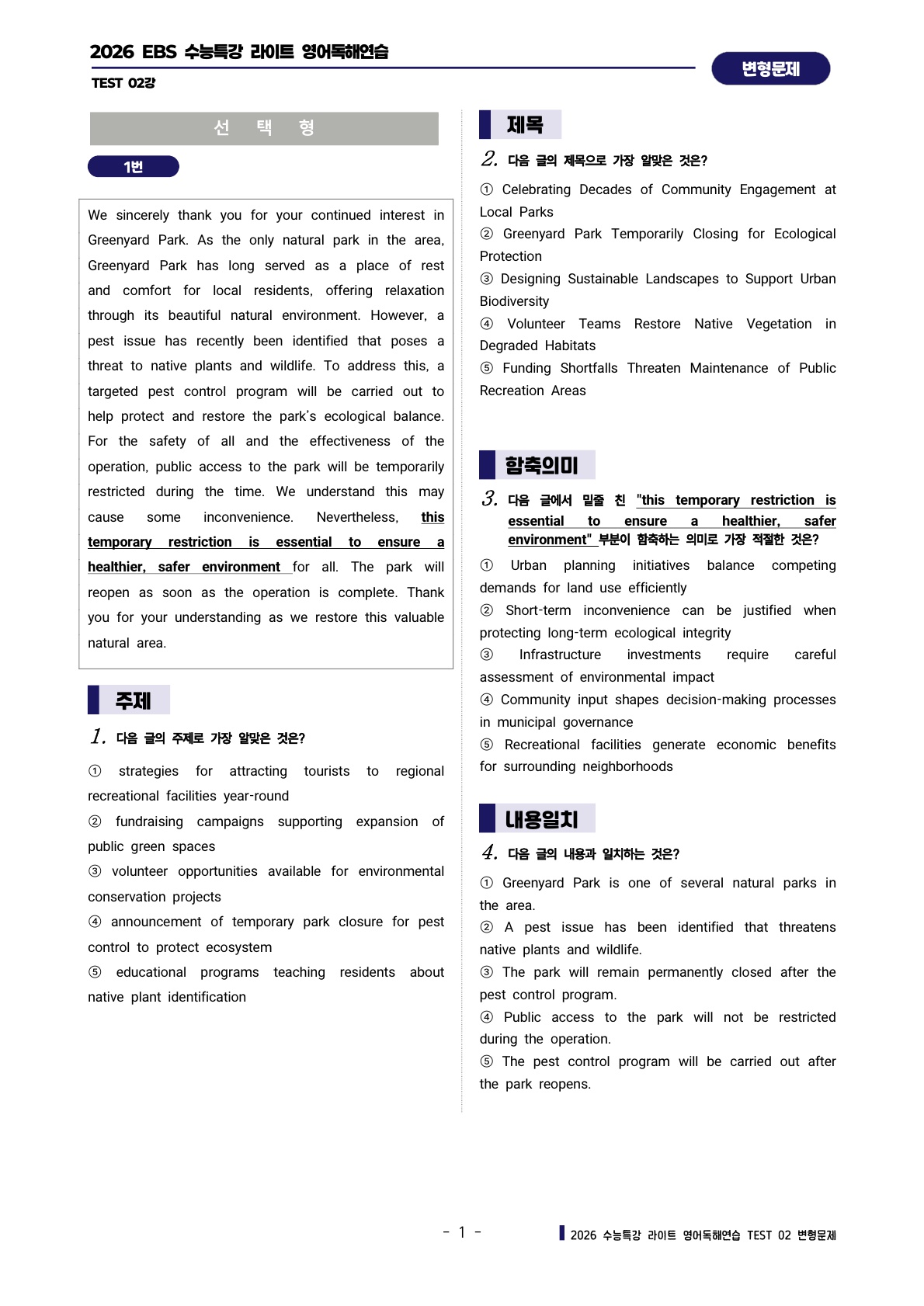 ํด์ฐ์ต [TEST 2๊ฐ] : ๋ณํ๋ฌธ์ ์ ํํธ (291์ )๐ฉท