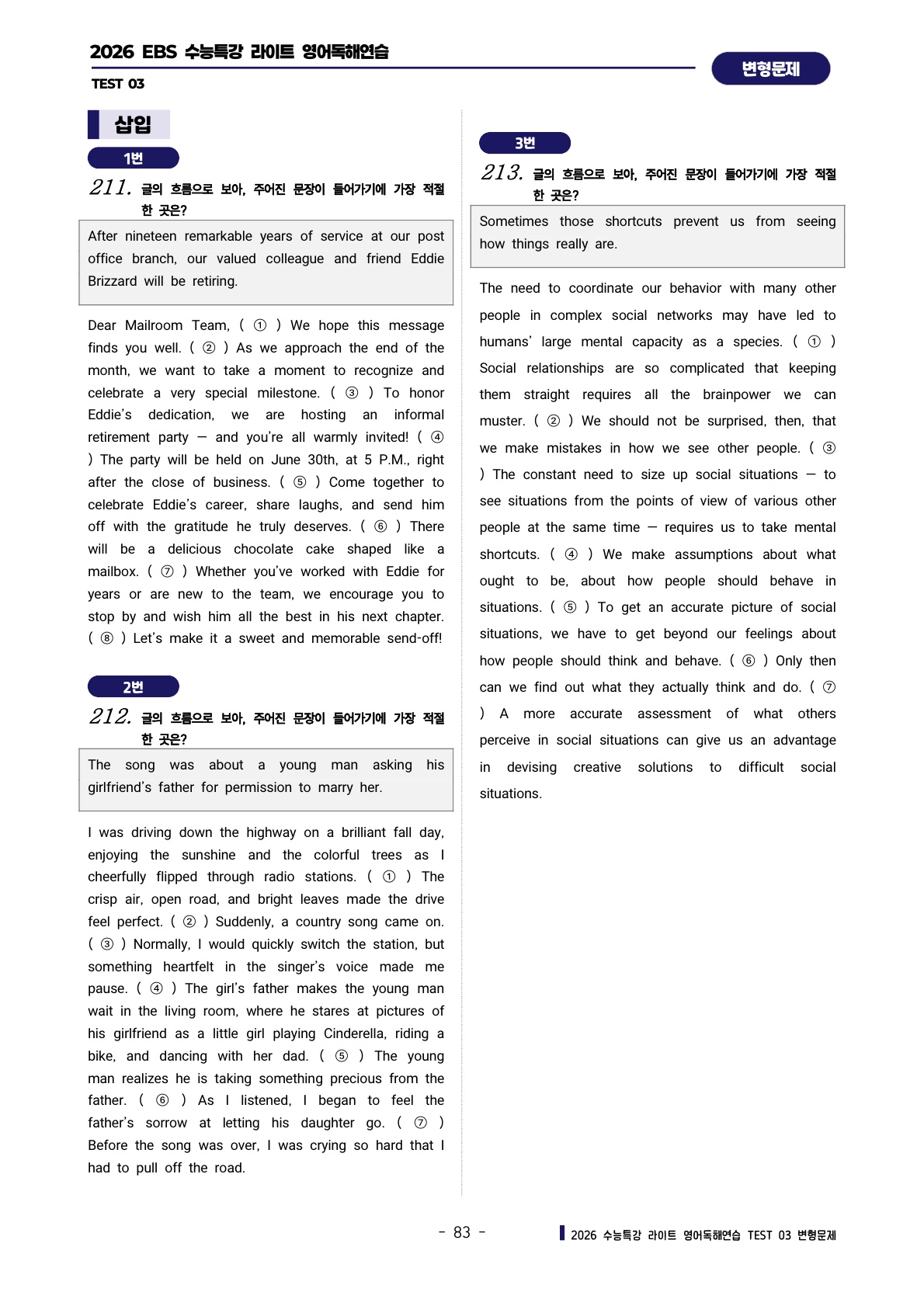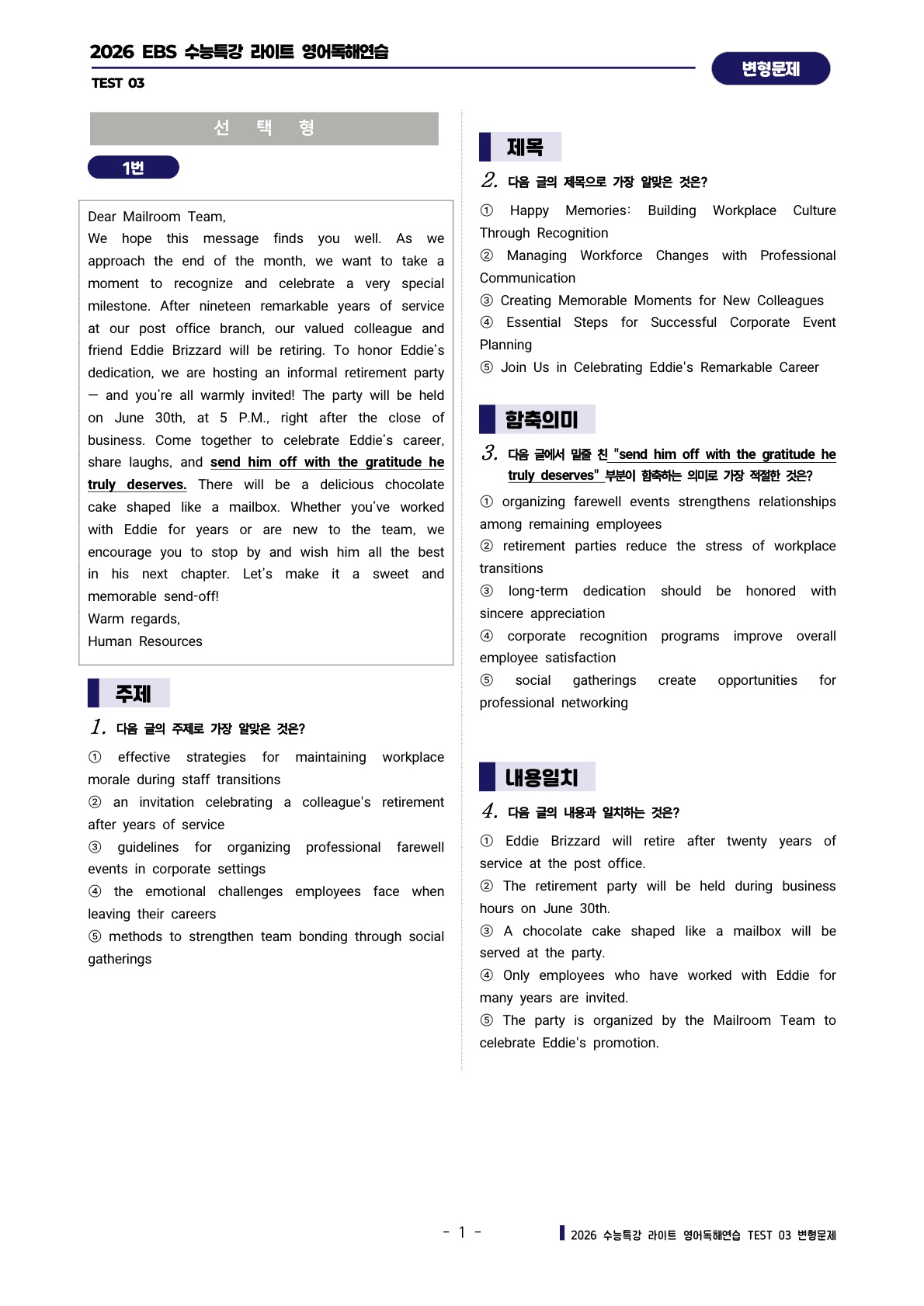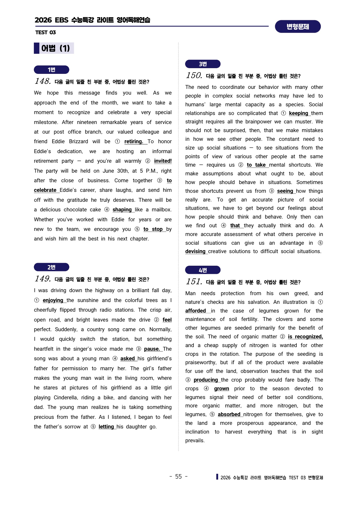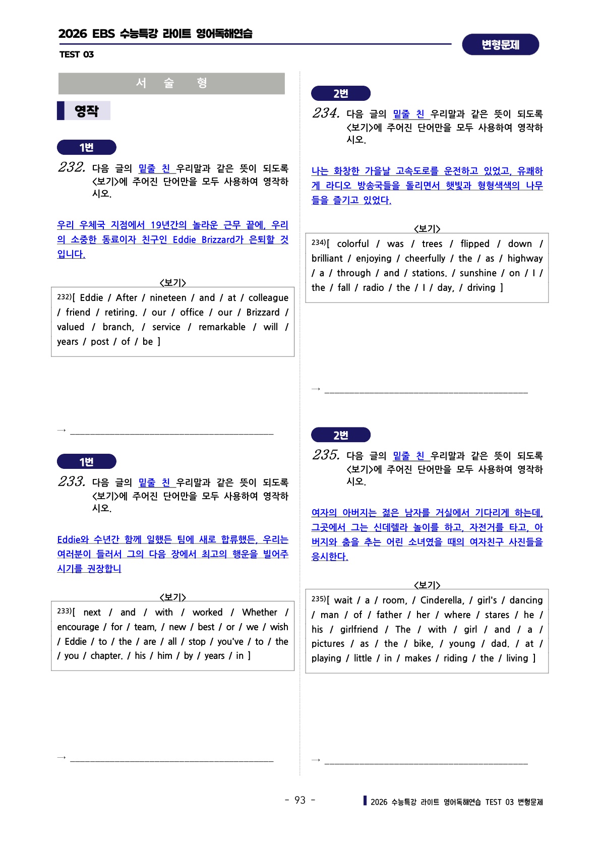 ํด์ฐ์ต [TEST 3๊ฐ] : ๋ณํ๋ฌธ์ ์ ํํธ (303์ )๐ฉท