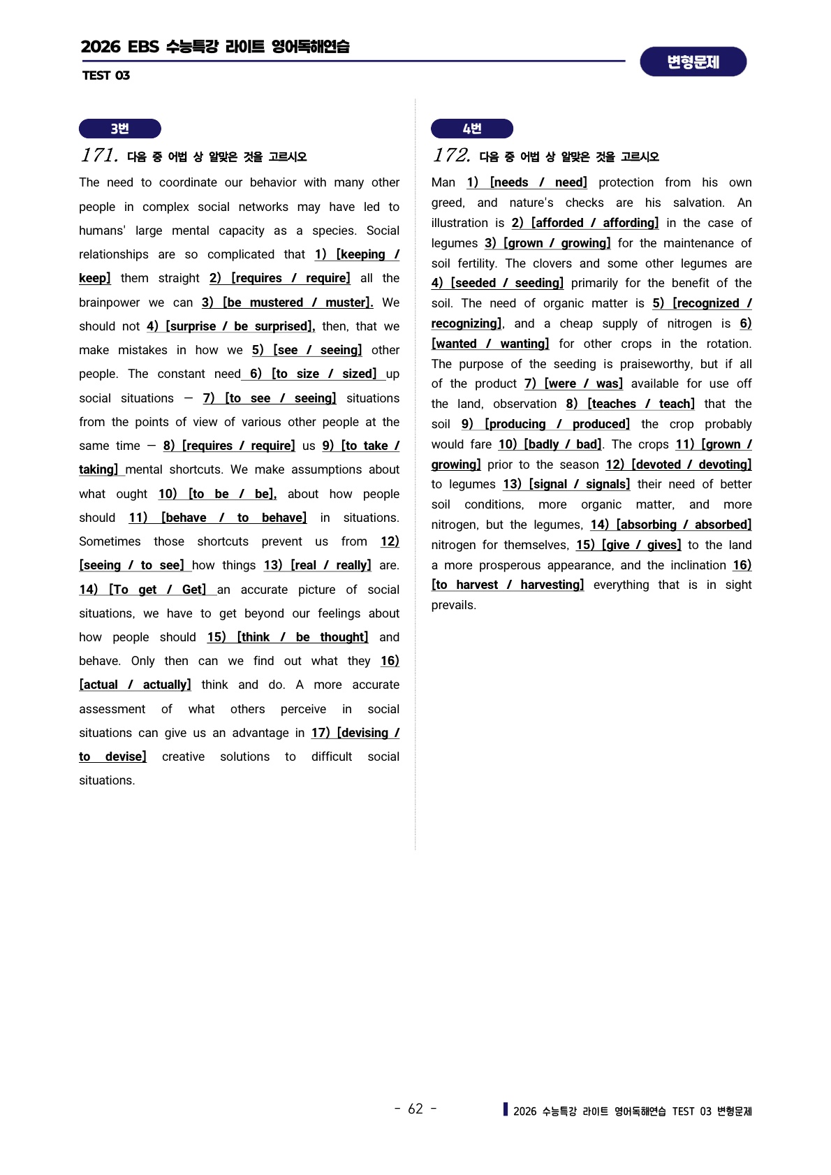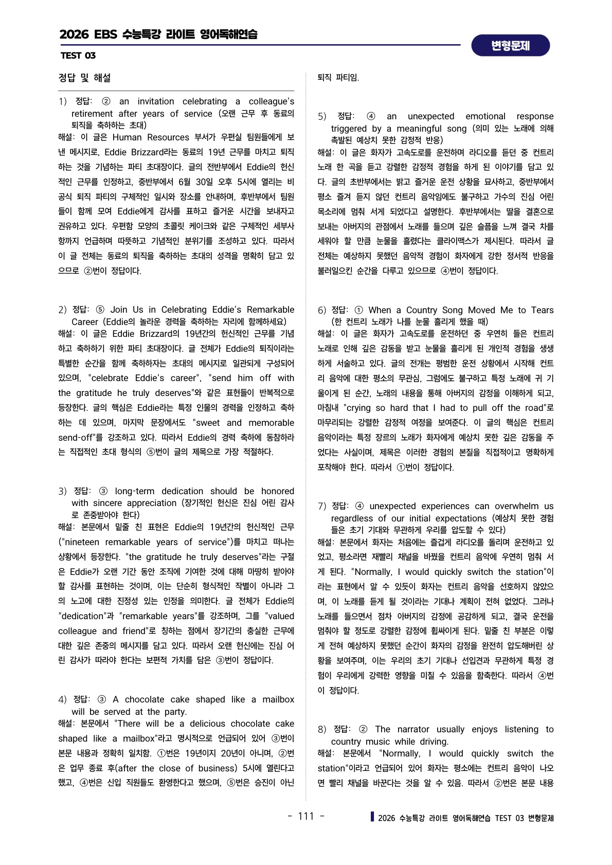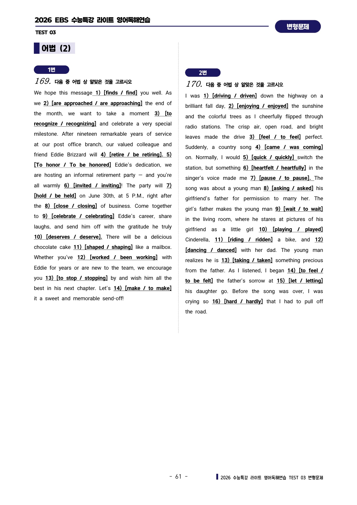 ํด์ฐ์ต [TEST 3๊ฐ] : ๋ณํ๋ฌธ์ ์ ํํธ (303์ )๐ฉท