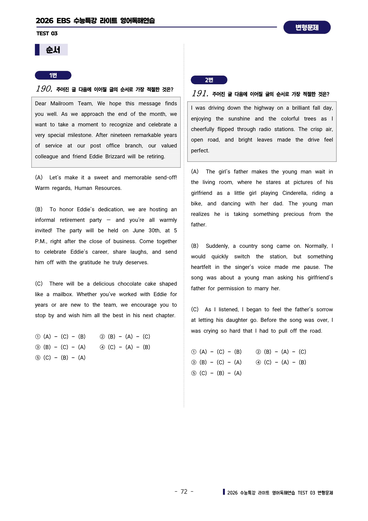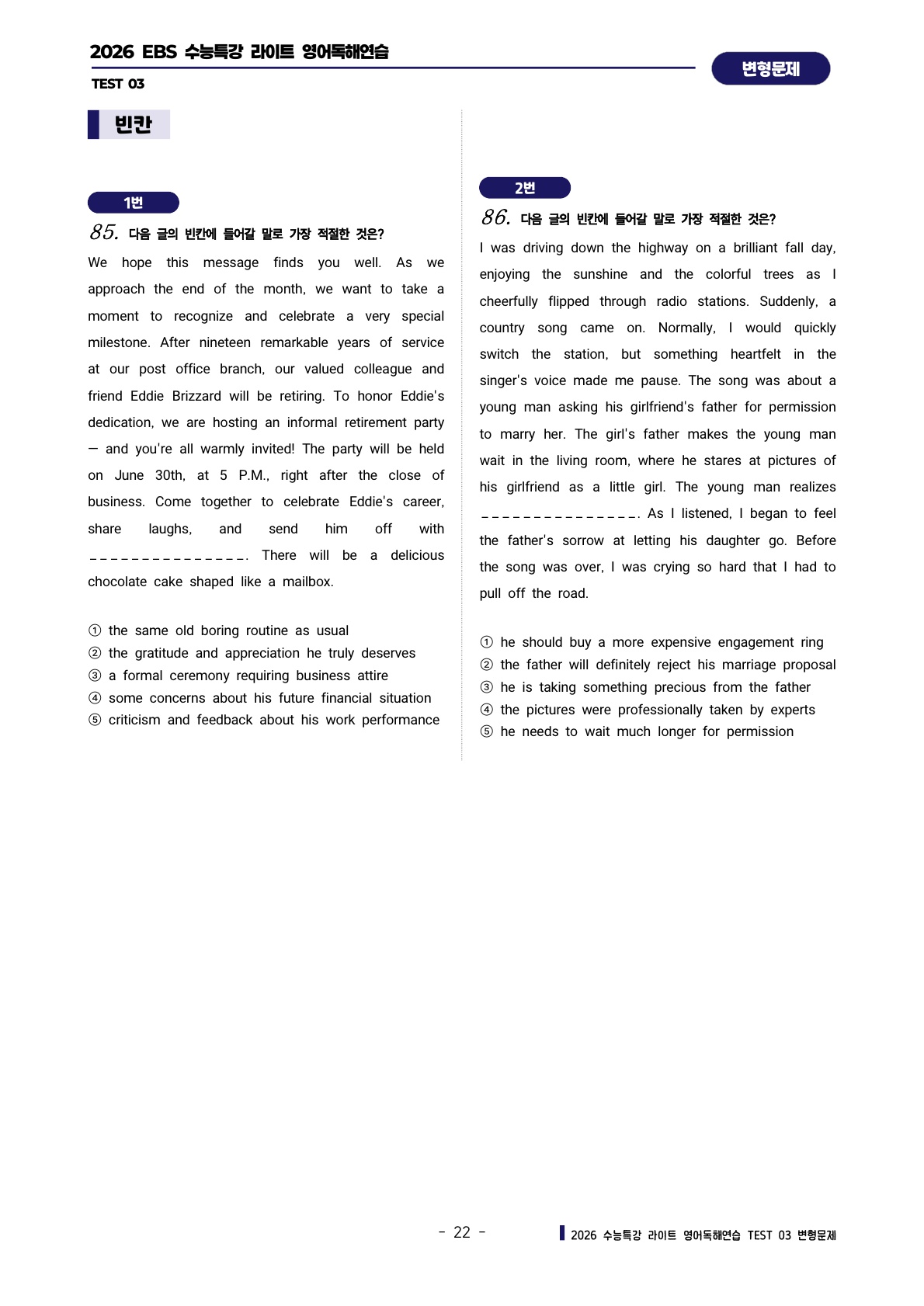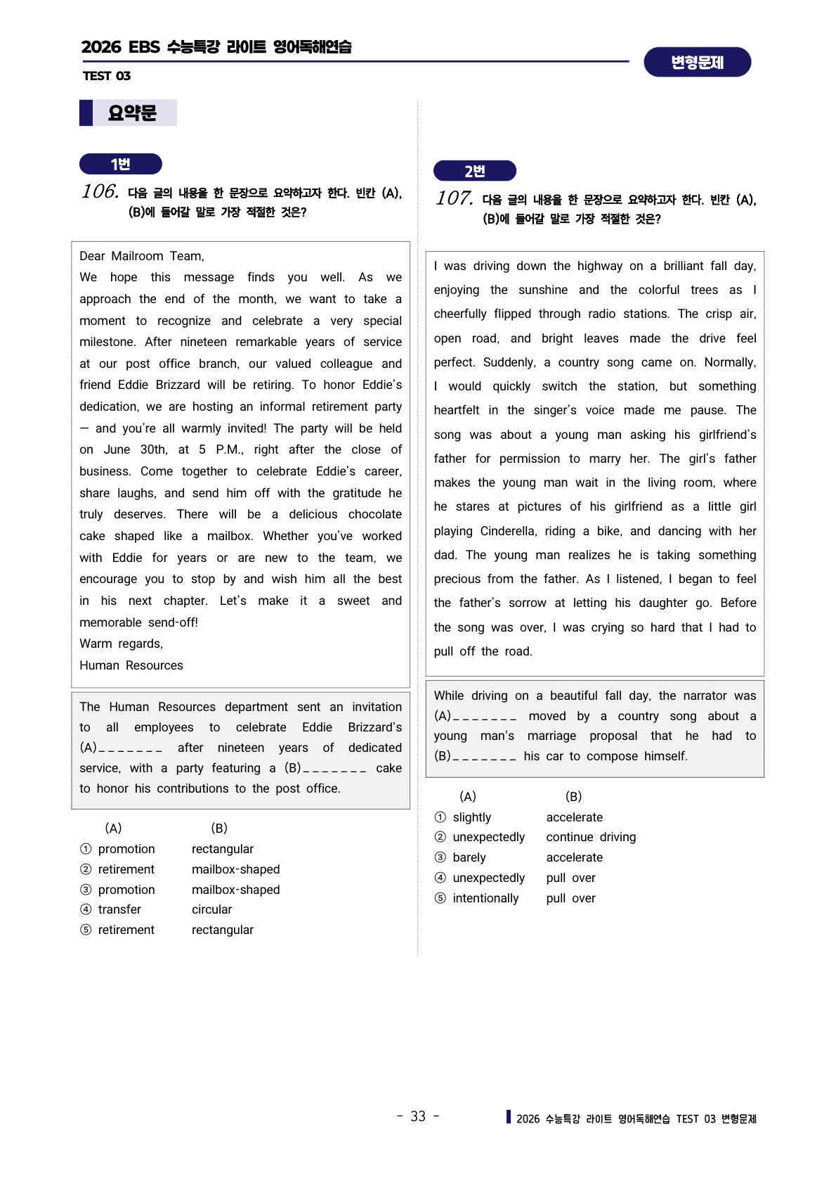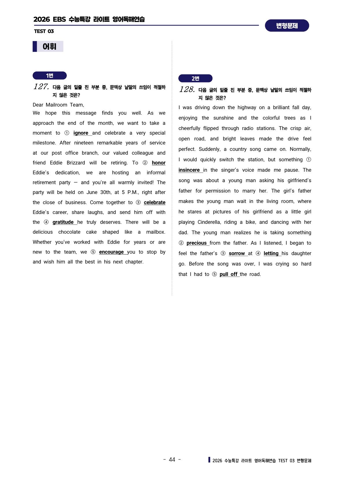 ํด์ฐ์ต [TEST 3๊ฐ] : ๋ณํ๋ฌธ์ ์ ํํธ (303์ )๐ฉท
