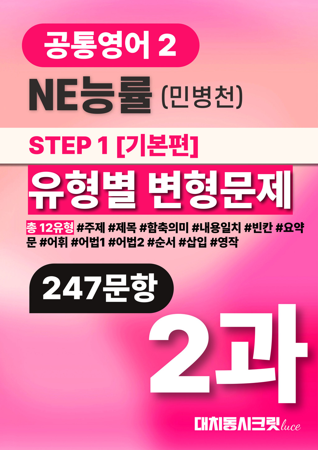 공통영어2 [능률(민)]-2과 변형문제 (247문항) 주제, 제목, 함축의미, 내용일치 지문 당 문항수를 5배 늘리고 (1문항 1지문 -> 1문항 평균 5지문) 서술형 문항 개수를 늘렸으며 오류를 최소화했습니다.