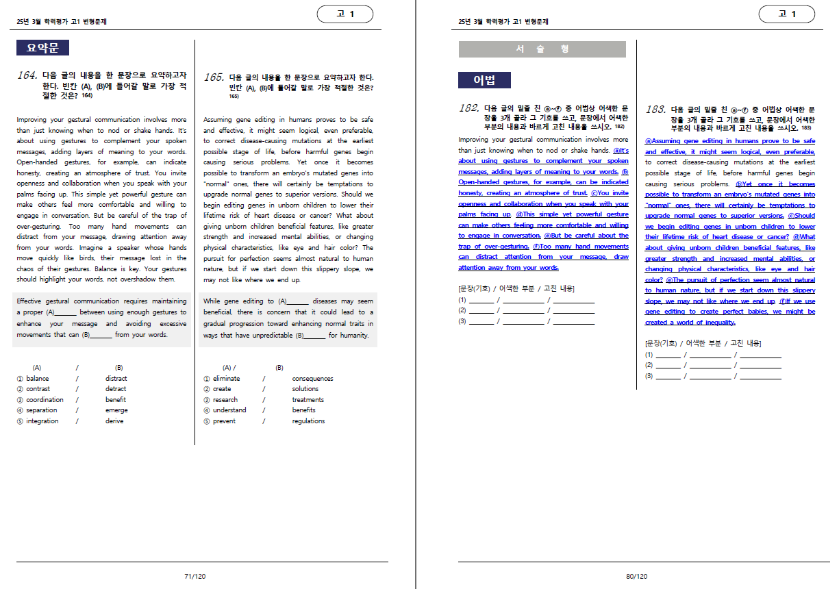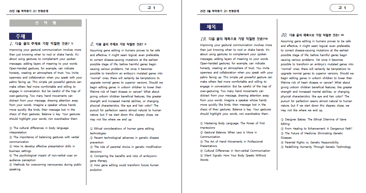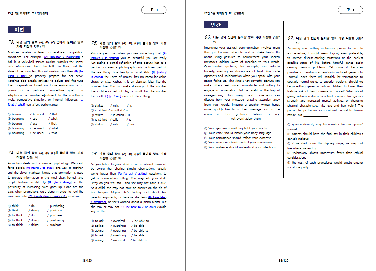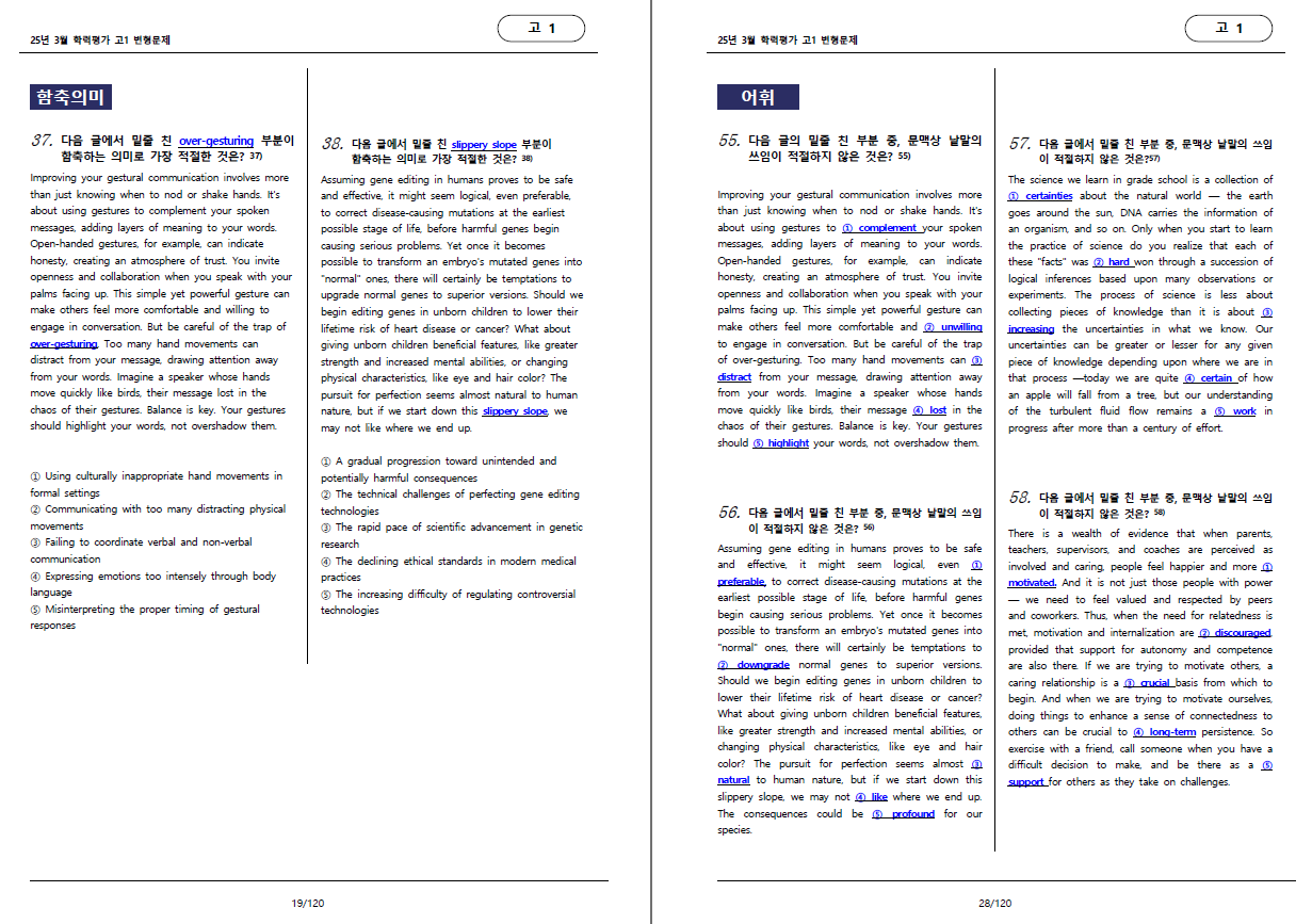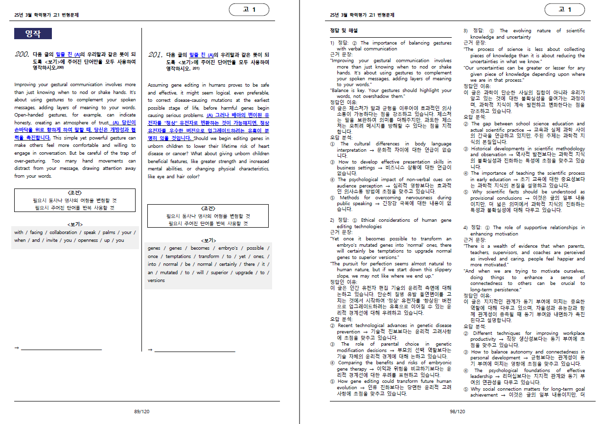 25학년도 3월 학력평가 고1 변형문제 입니다.
