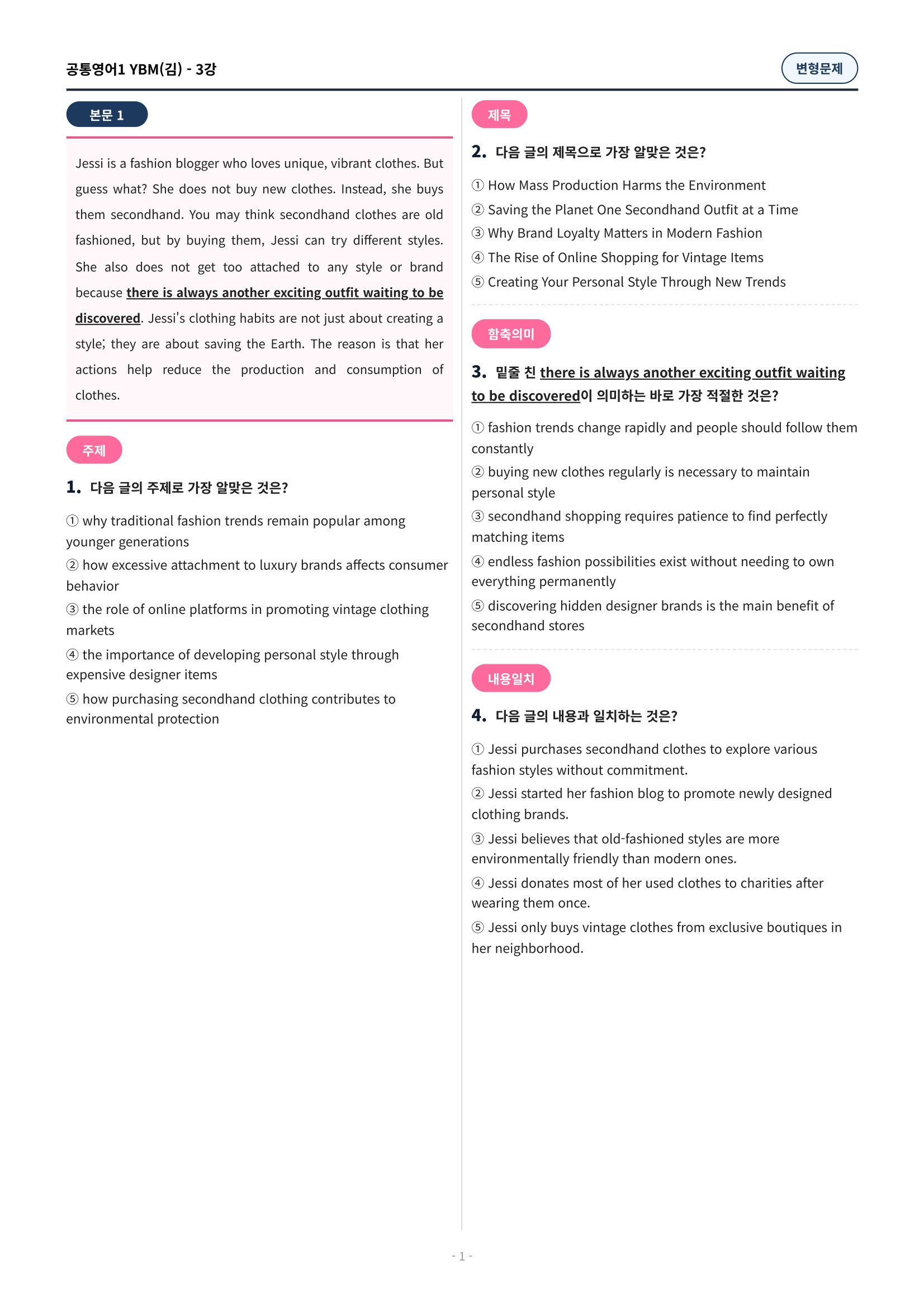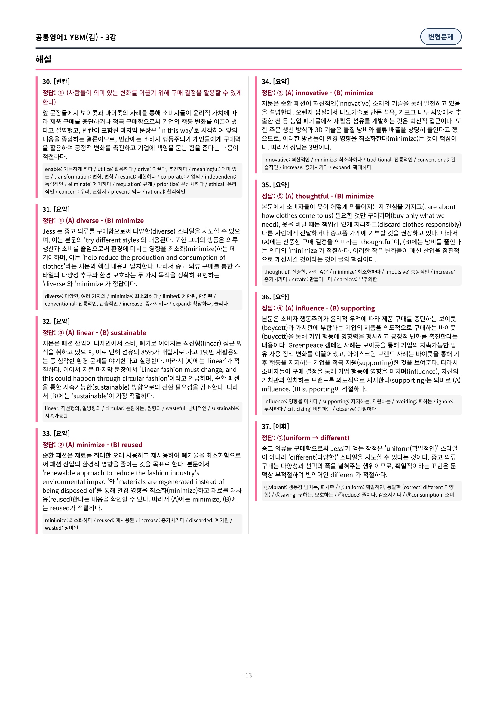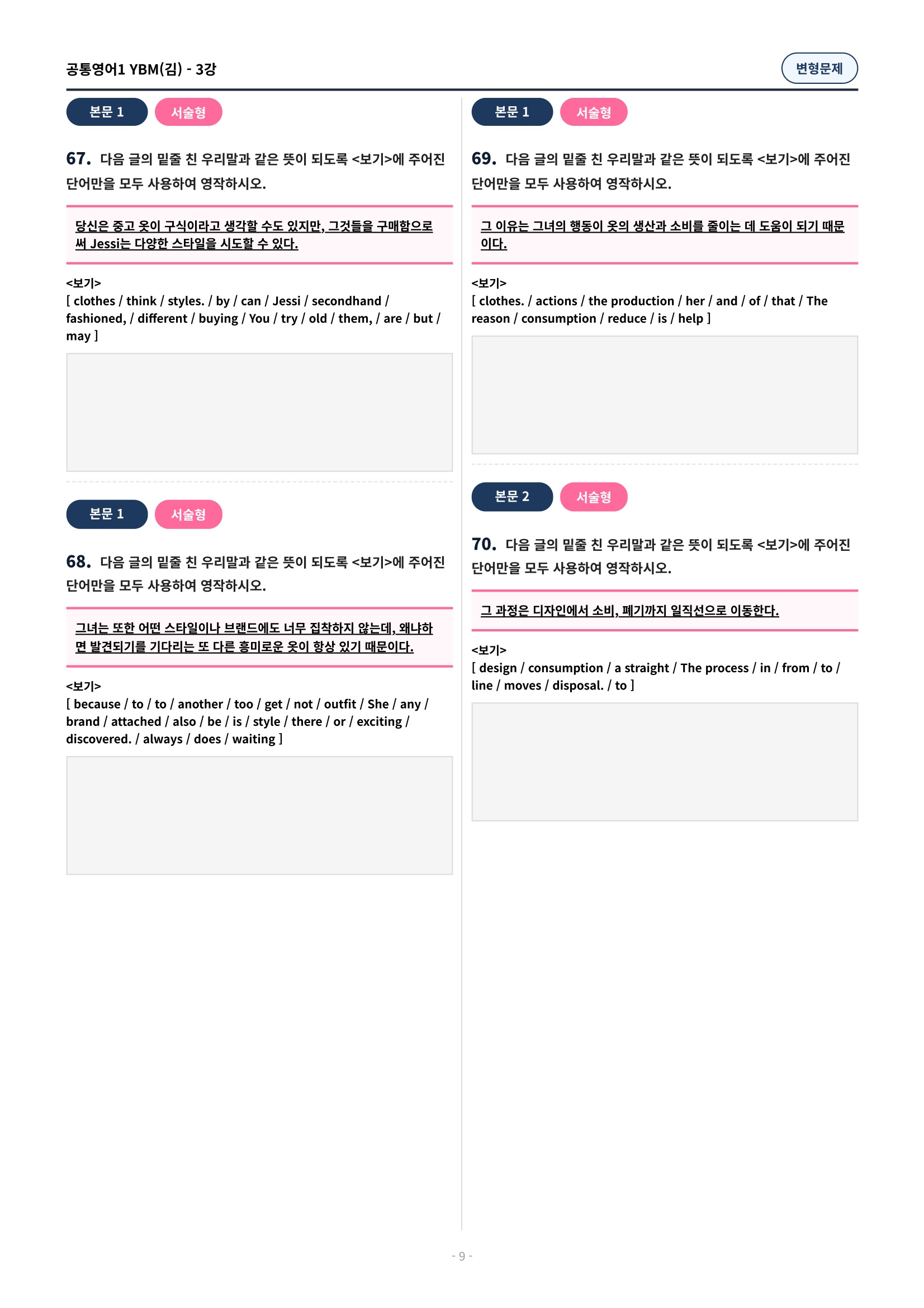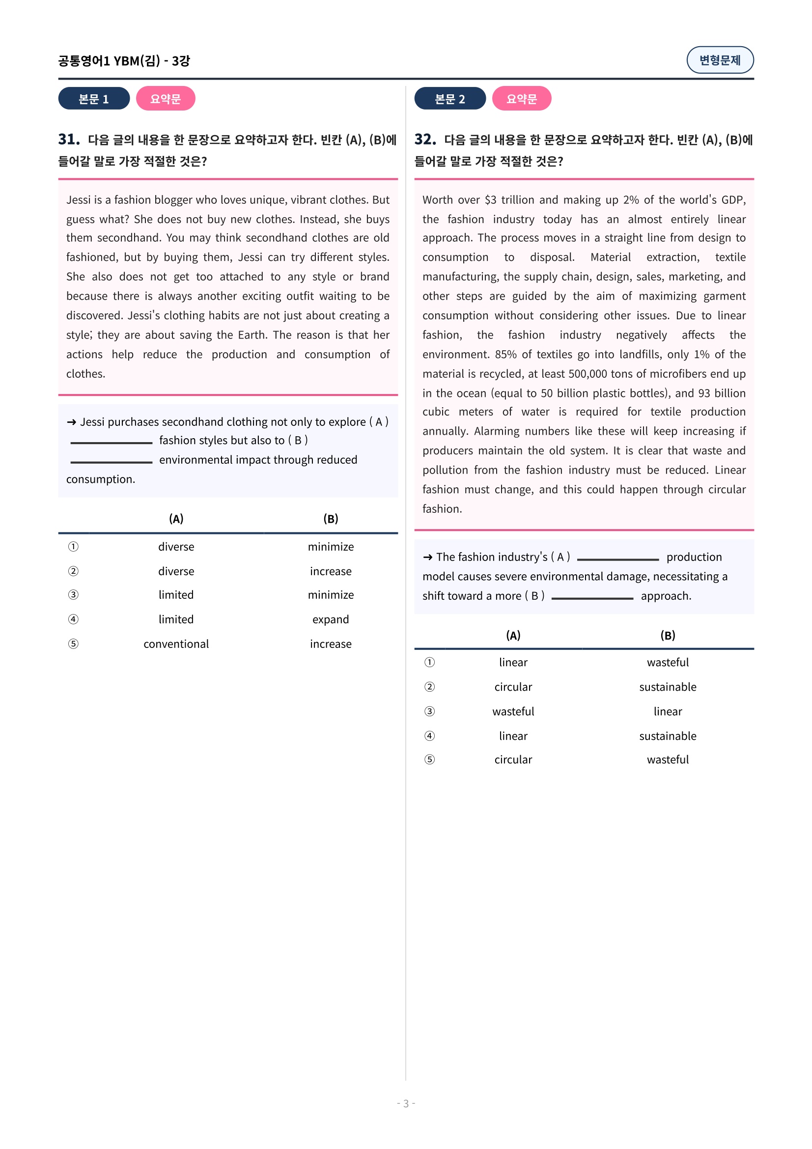 ๐ฉท[๊ณตํต1] YBM(๊น์ํ) 3๊ณผ ๋ณํ๋ฌธ์ 90์ ์ถ๊ฐ๋ฆฌ๋ฉํฌํจ๐ฉท