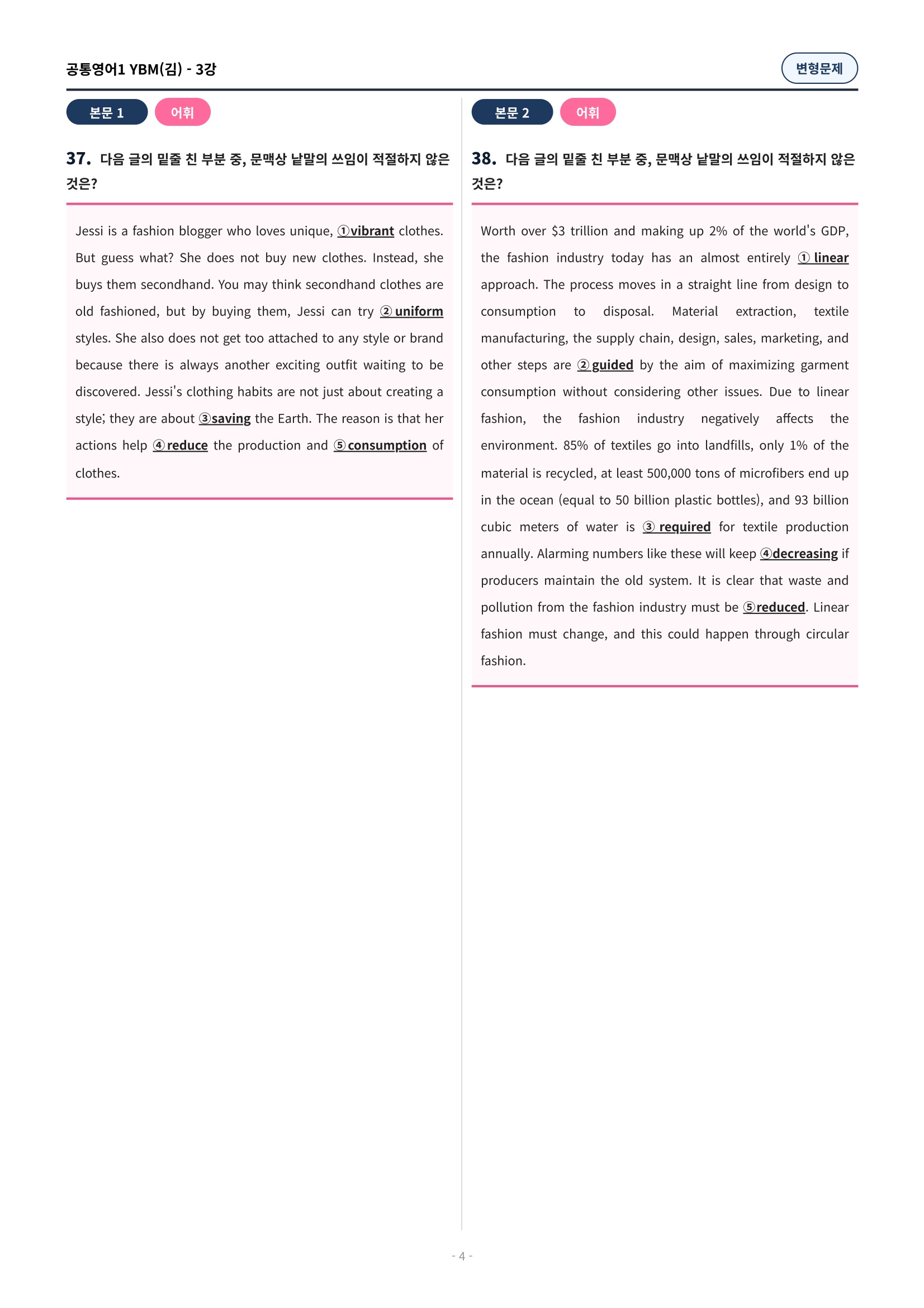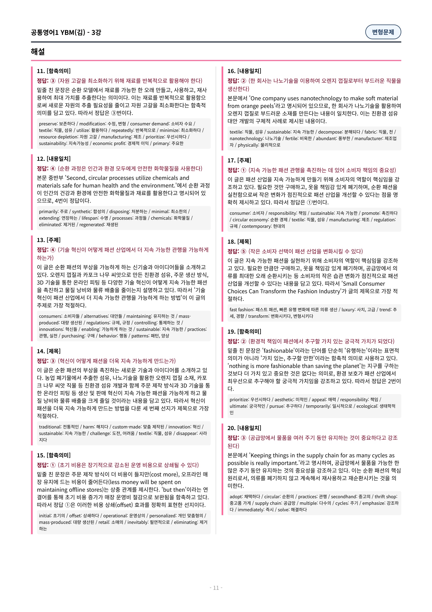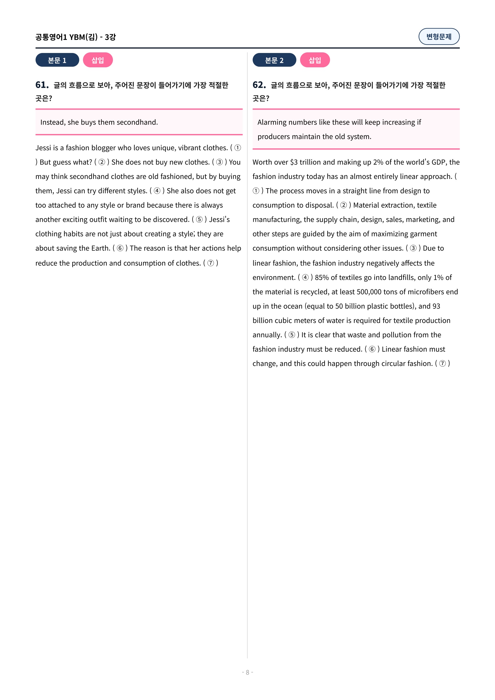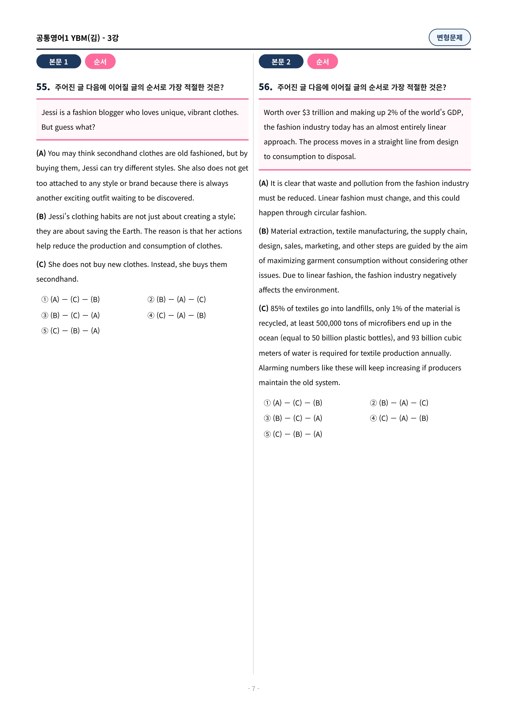 ๐ฉท[๊ณตํต1] YBM(๊น์ํ) 3๊ณผ ๋ณํ๋ฌธ์ 90์ ์ถ๊ฐ๋ฆฌ๋ฉํฌํจ๐ฉท