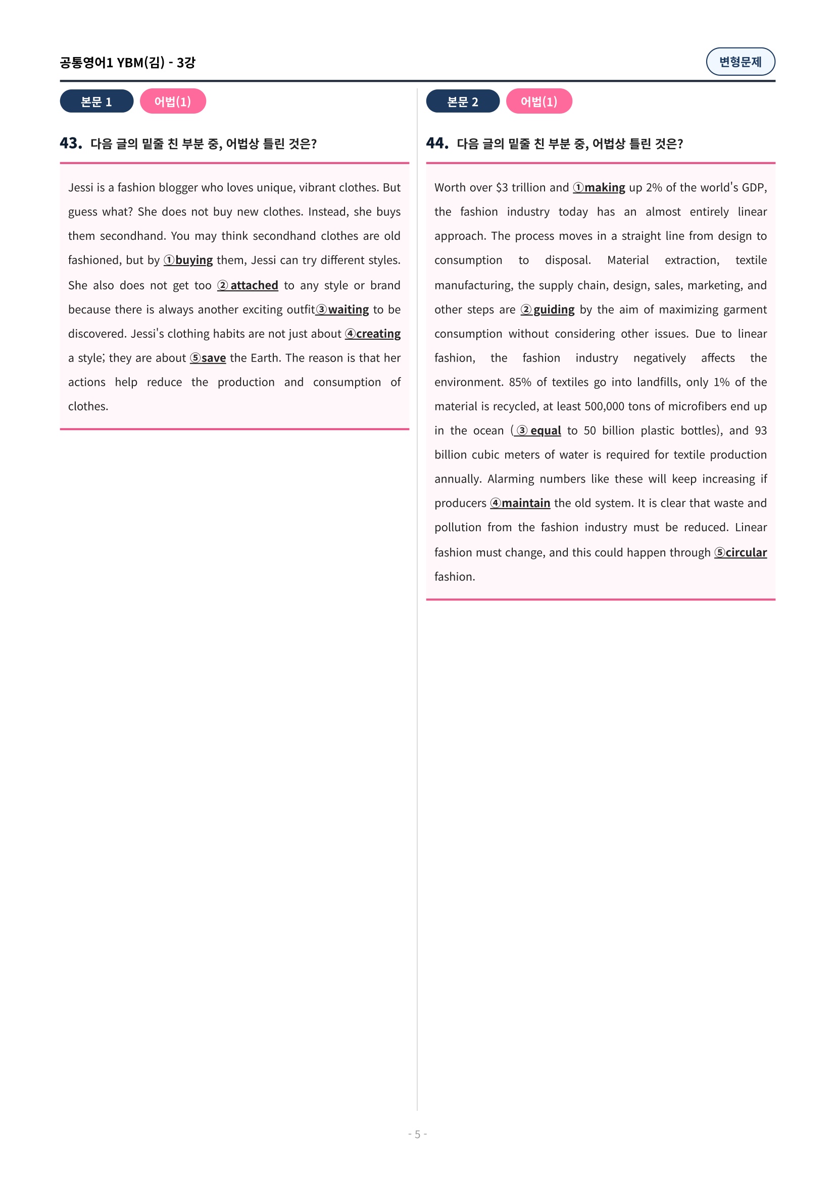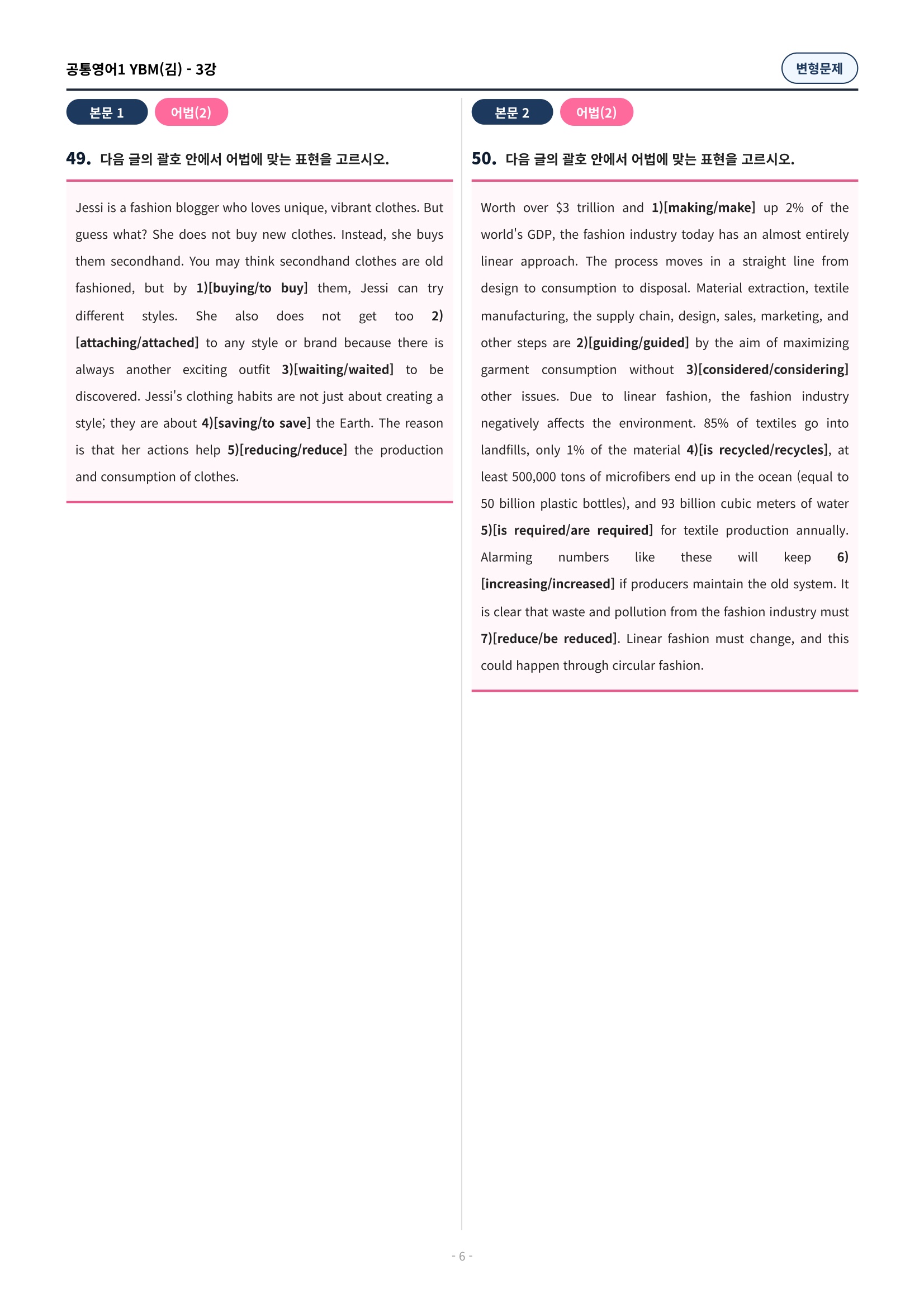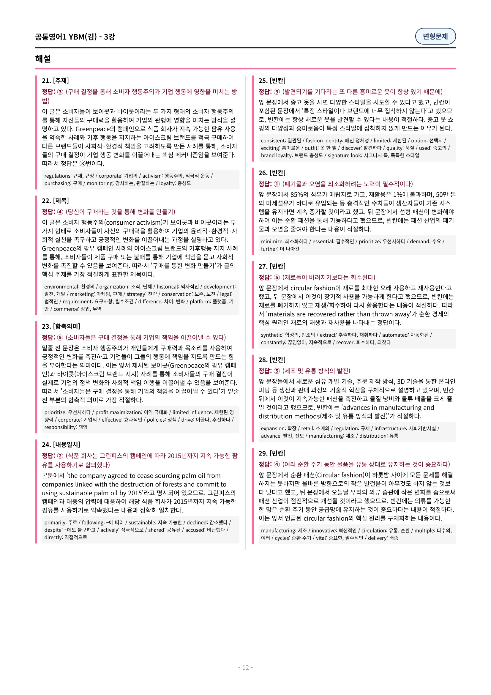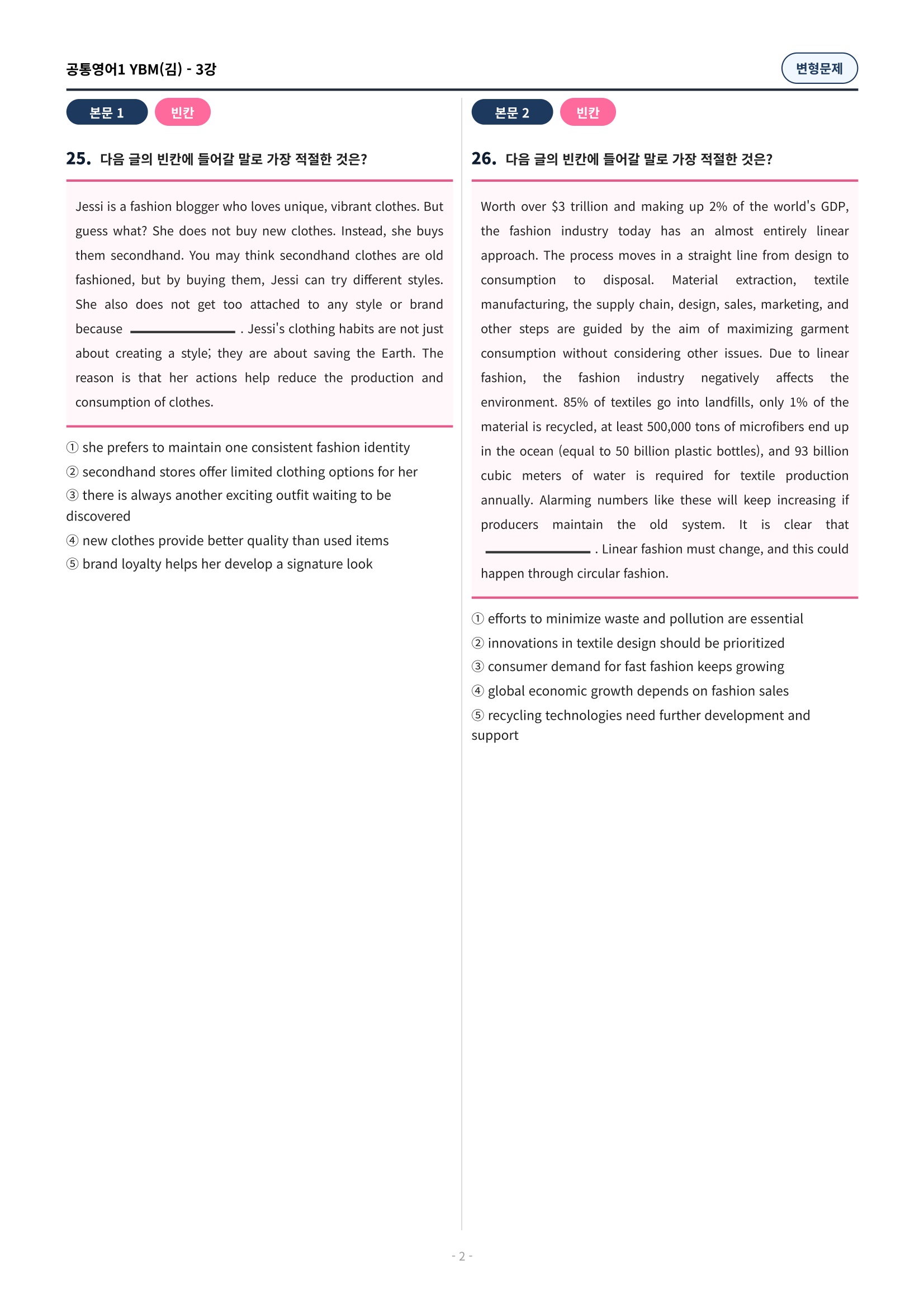 ๐ฉท[๊ณตํต1] YBM(๊น์ํ) 3๊ณผ ๋ณํ๋ฌธ์ 90์ ์ถ๊ฐ๋ฆฌ๋ฉํฌํจ๐ฉท