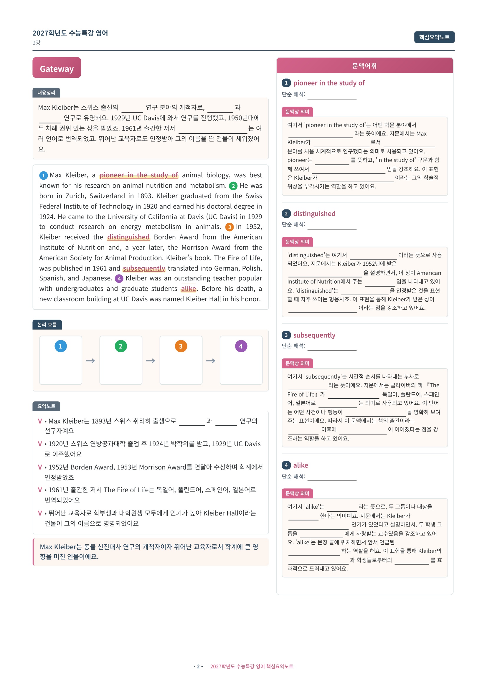 ๋ด์ฉ ์ ๋ฆฌ, ์๋ฌธ, ๋ ผ๋ฆฌ ํ๋ฆ, ์์ฝ๋ ธํธ, ๋ฌธ๋งฅ์ดํ ์ ๋ฆฌ + ๋ฐฑ์ง๋ ธํธ ๋น์นธ ์ฑ์ฐ๊ธฐ๋ก ๊ตฌ์ฑ๋์ด ์์ต๋๋ค.