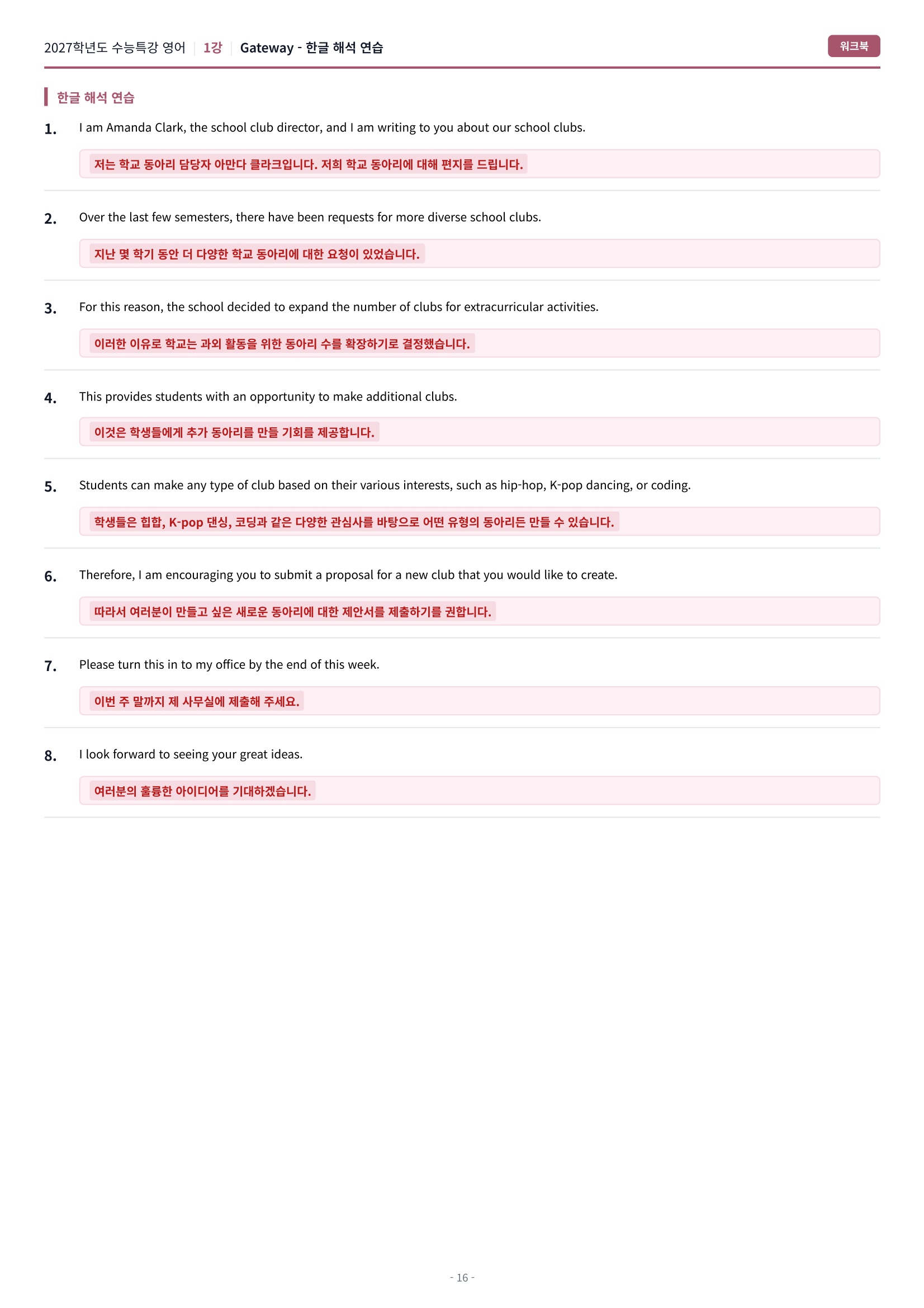 1. VOCA CHECK : ์๋ฌธ + ์ ์ฒดํด์ + ํ์๋จ์ด + ๋์์ด + ๋ฐ์์ด + ์์ํ์ด + ํ์ํํ