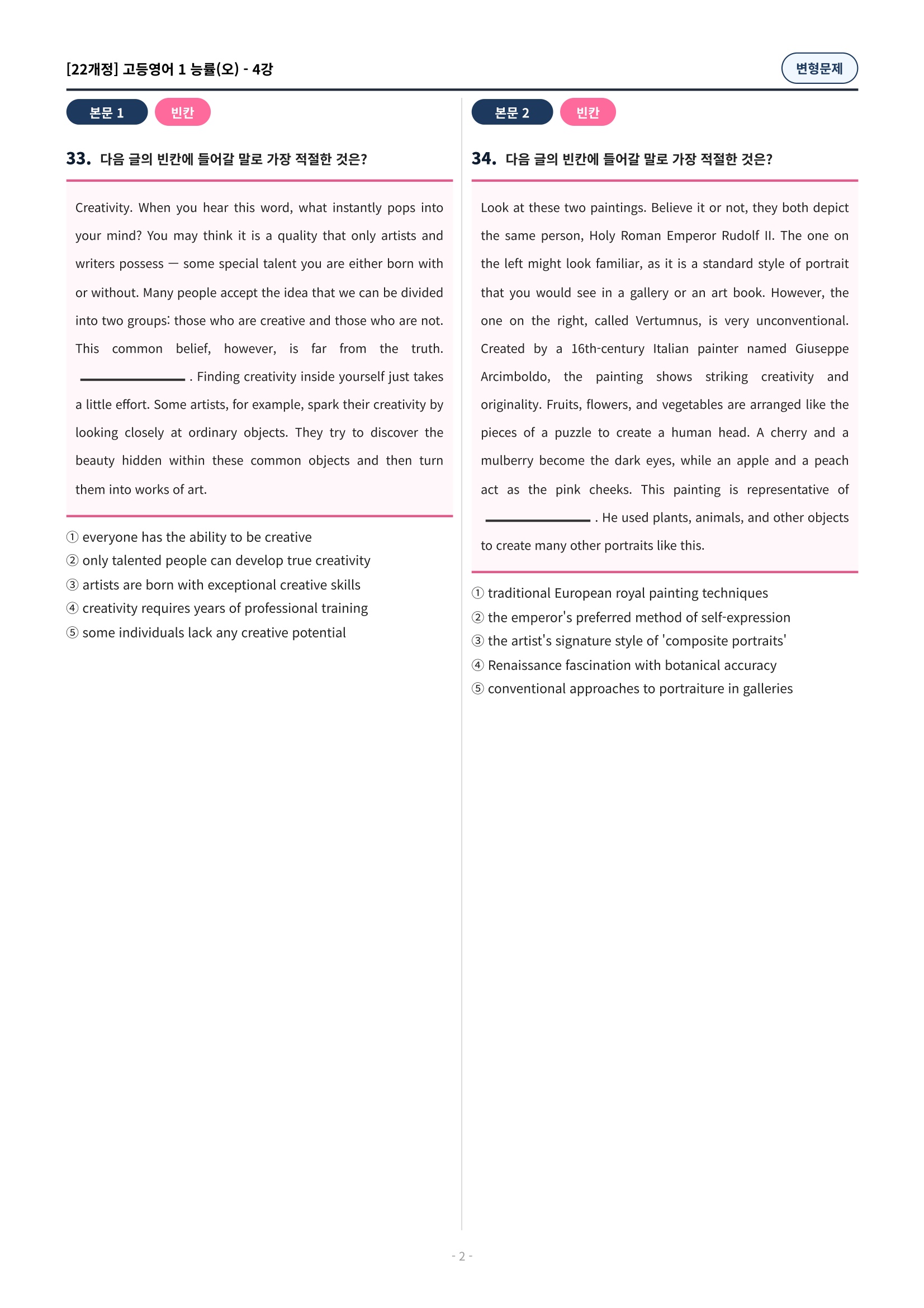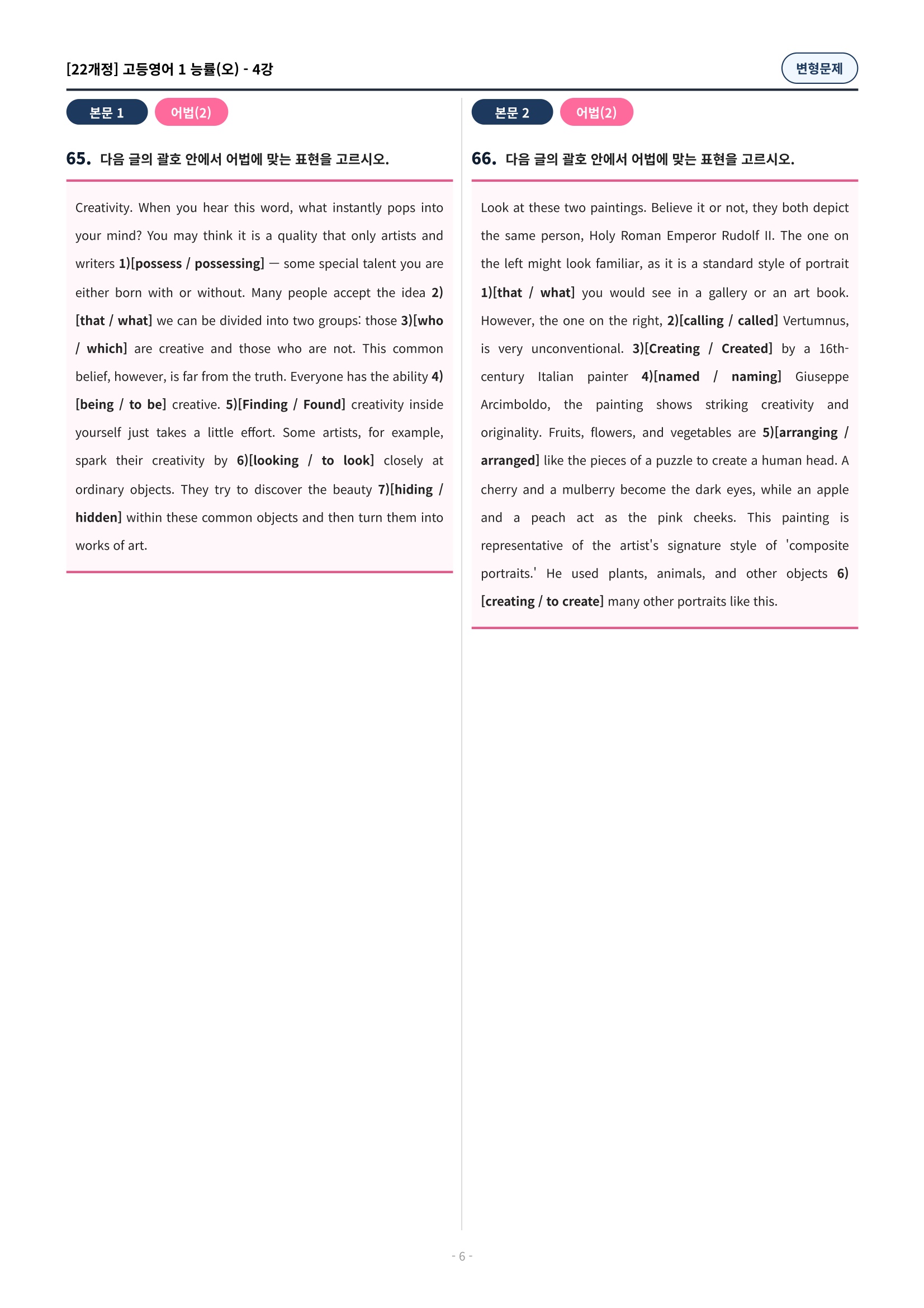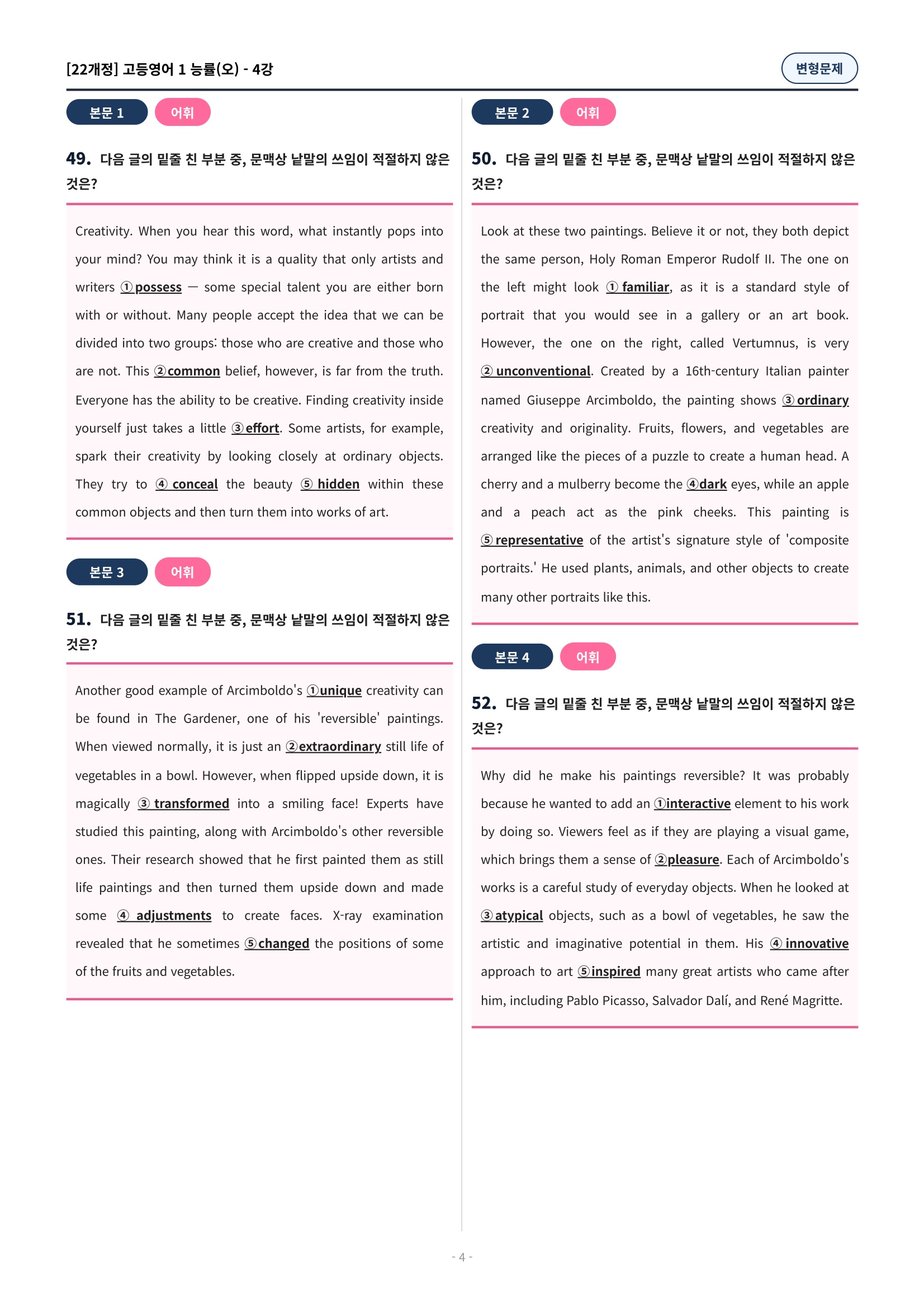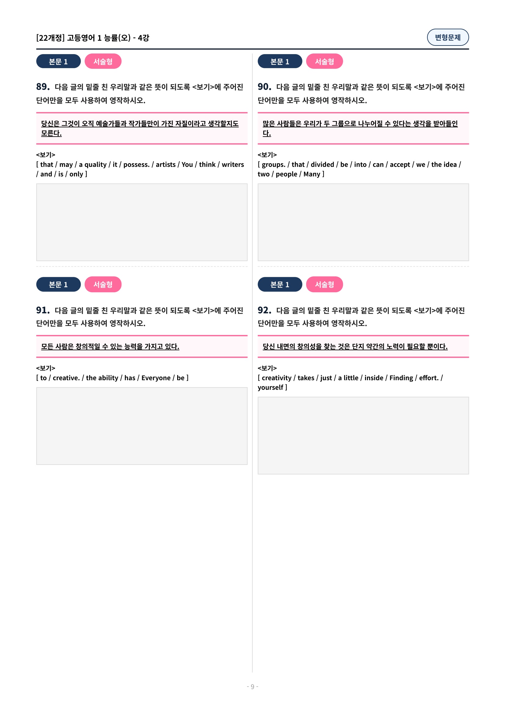 ๐ฉท[4๊ณผ][๊ณ ๋ฑ์์ด1] ๋ฅ๋ฅ (์ค)๋ณํ๋ฌธ์ (122์ )๐ฉท