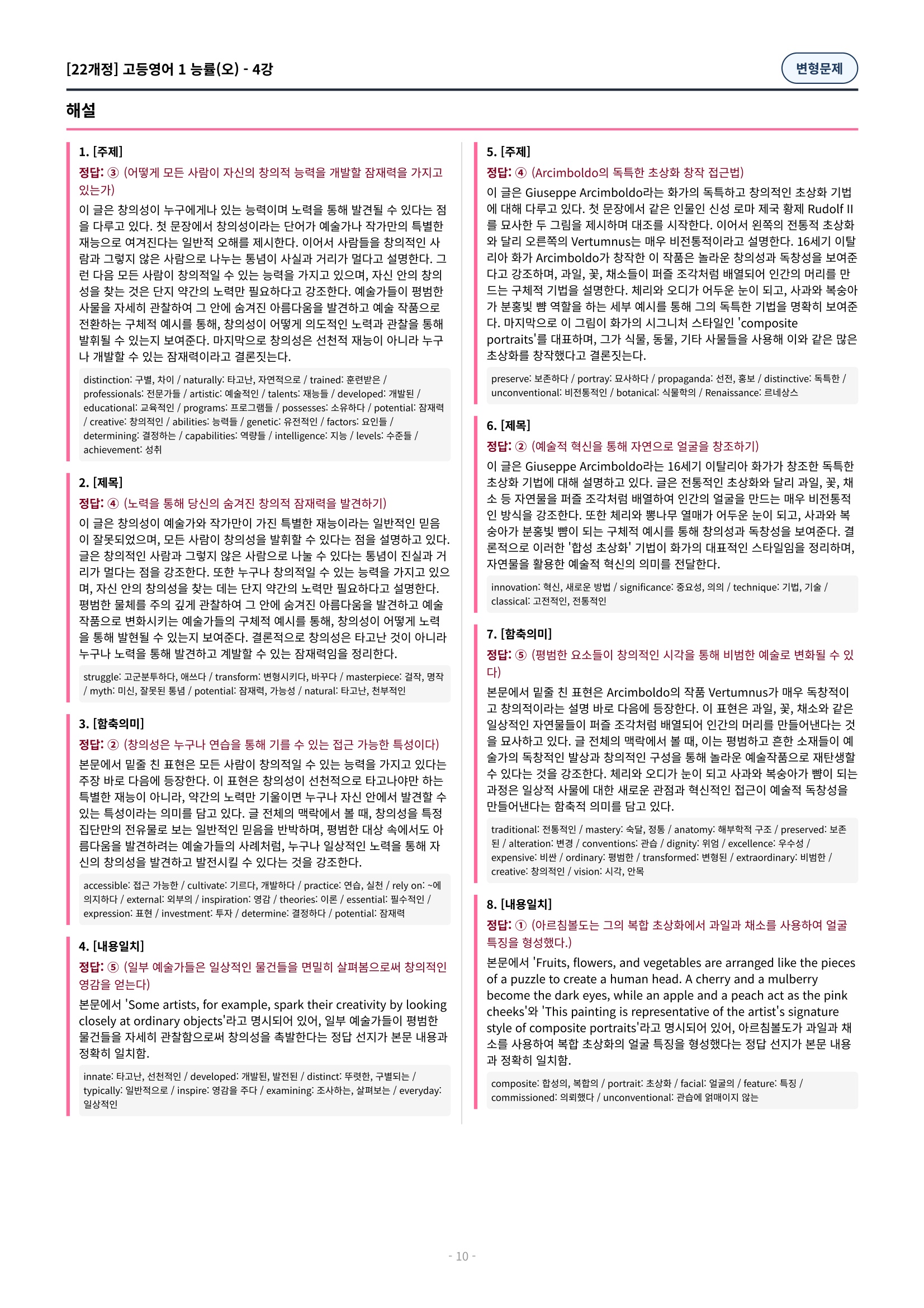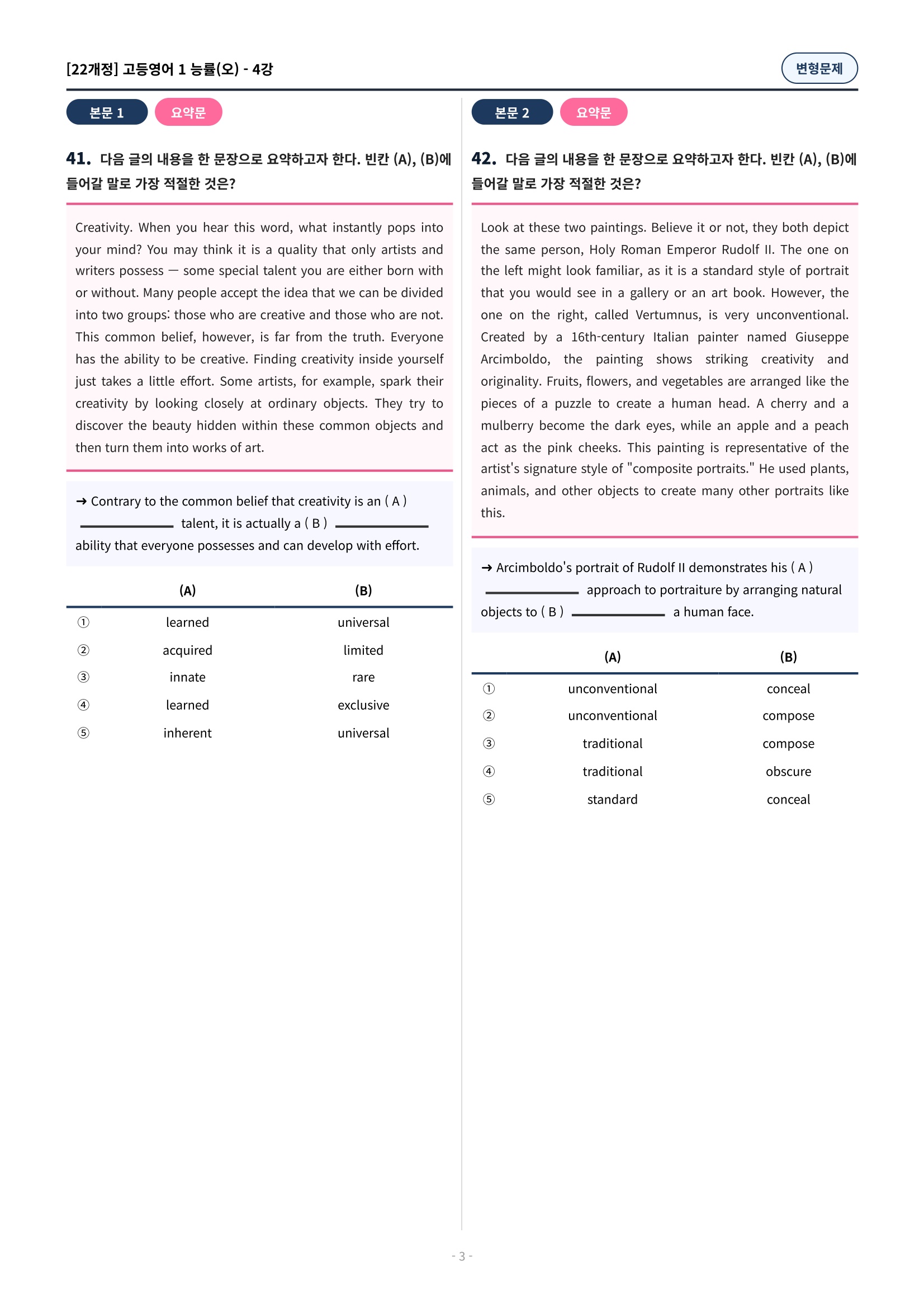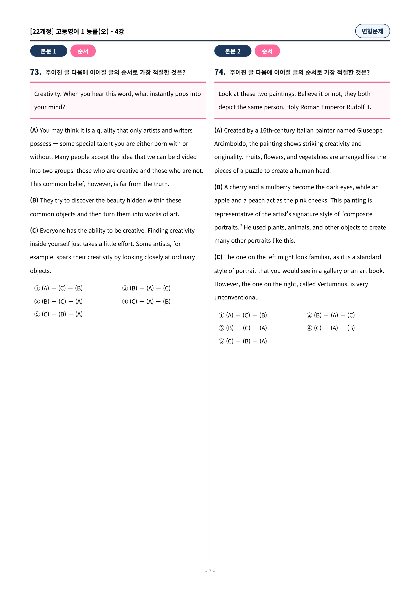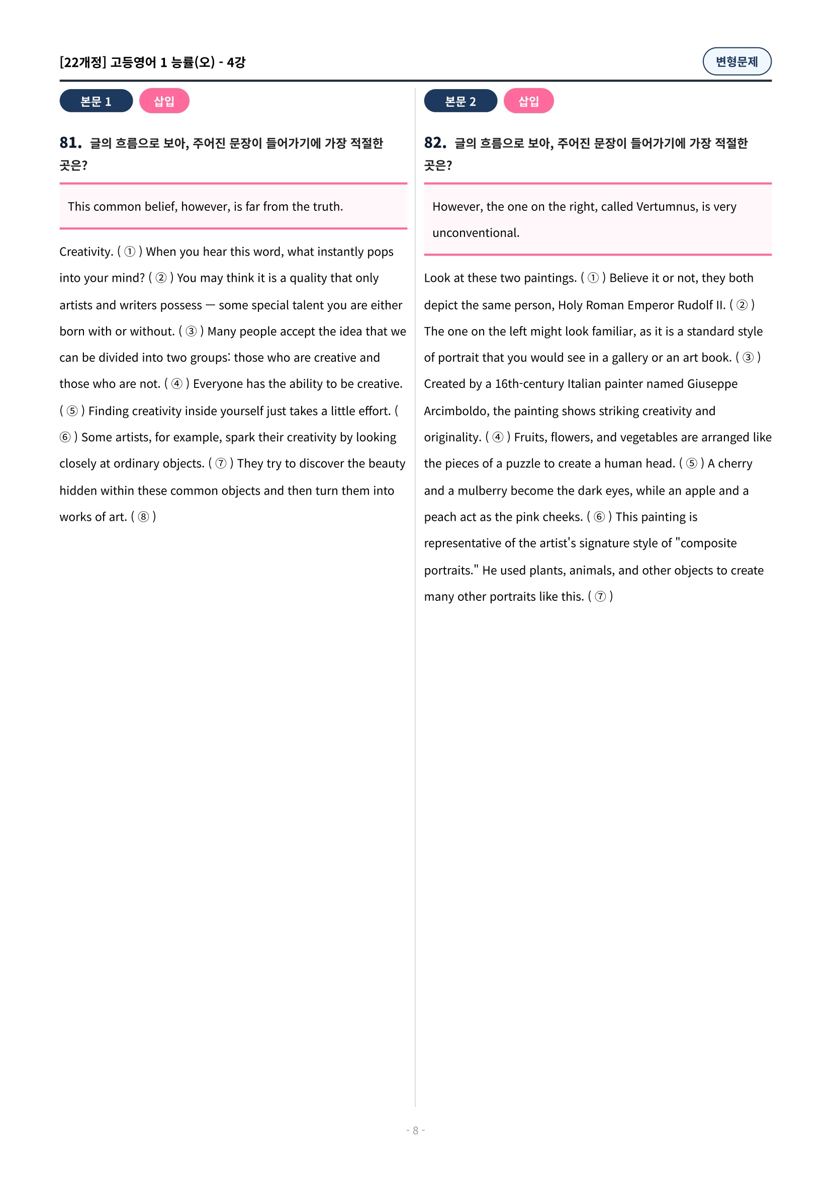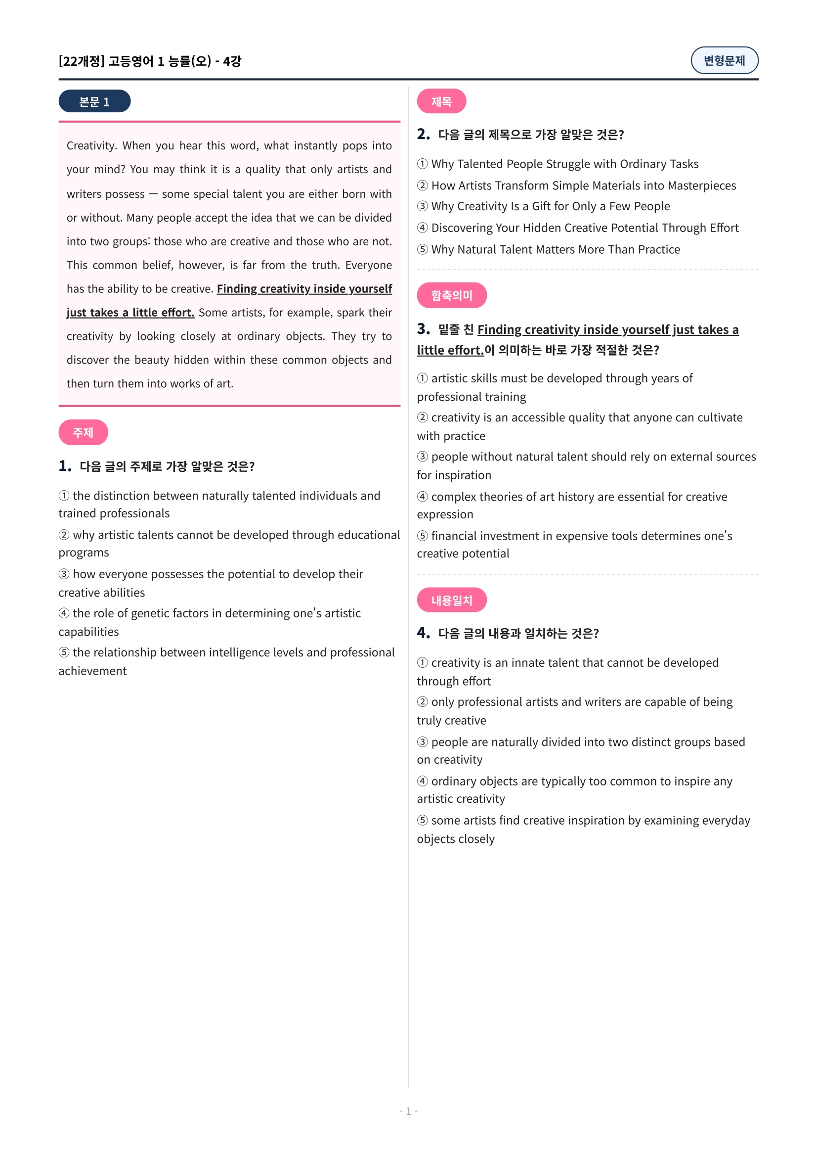 ๐ฉท[4๊ณผ][๊ณ ๋ฑ์์ด1] ๋ฅ๋ฅ (์ค)๋ณํ๋ฌธ์ (122์ )๐ฉท
