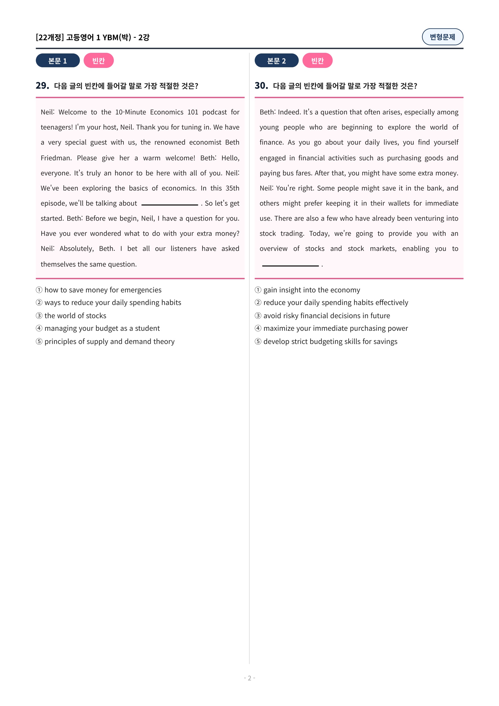 ๐ฉท[2๊ณผ][๊ณ ๋ฑ์์ด1] YBM(๋ฐ)๋ณํ๋ฌธ์ (108์ )(์ถ๊ฐ๋ฆฌ๋ฉํฌํจ)๐ฉท