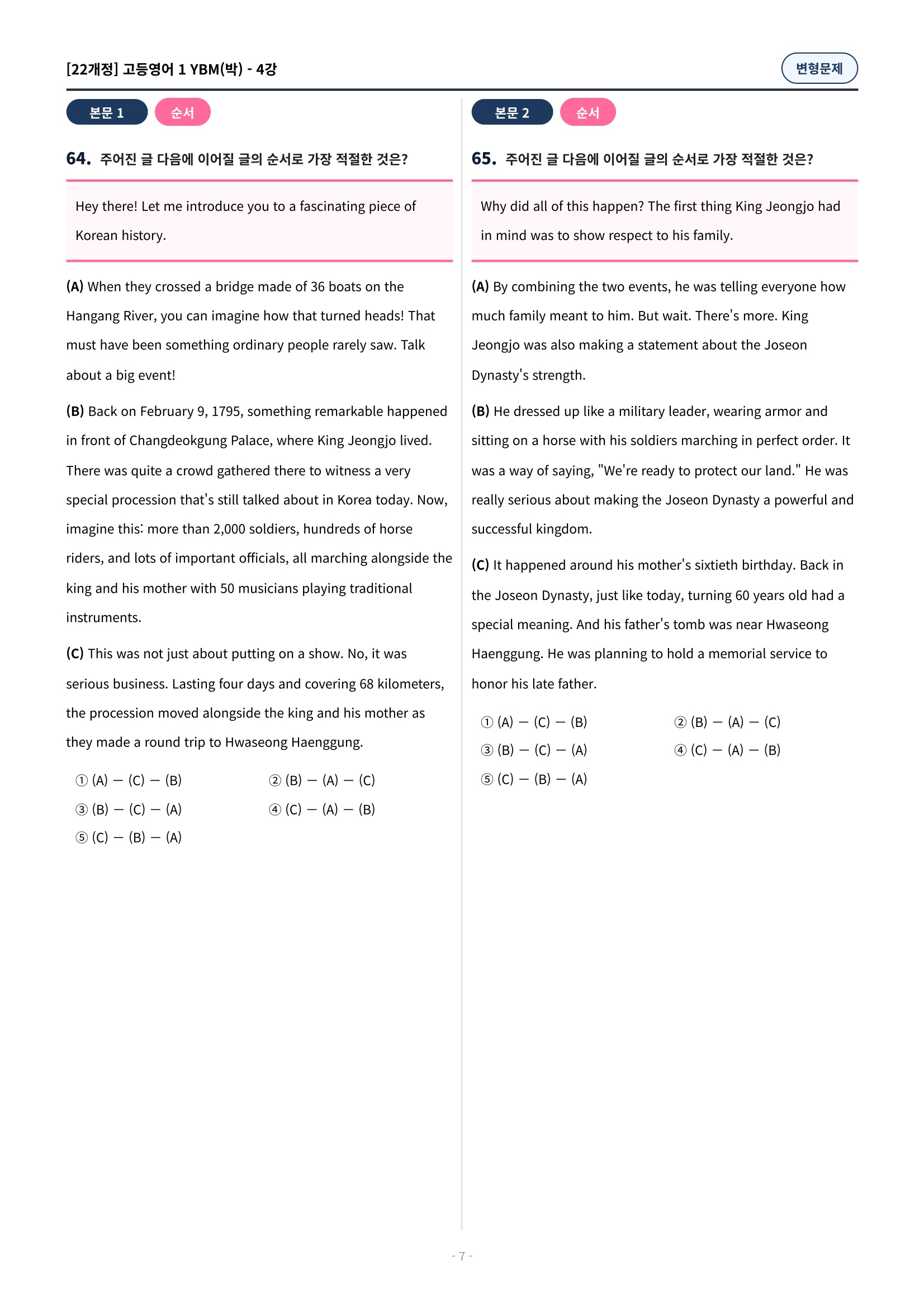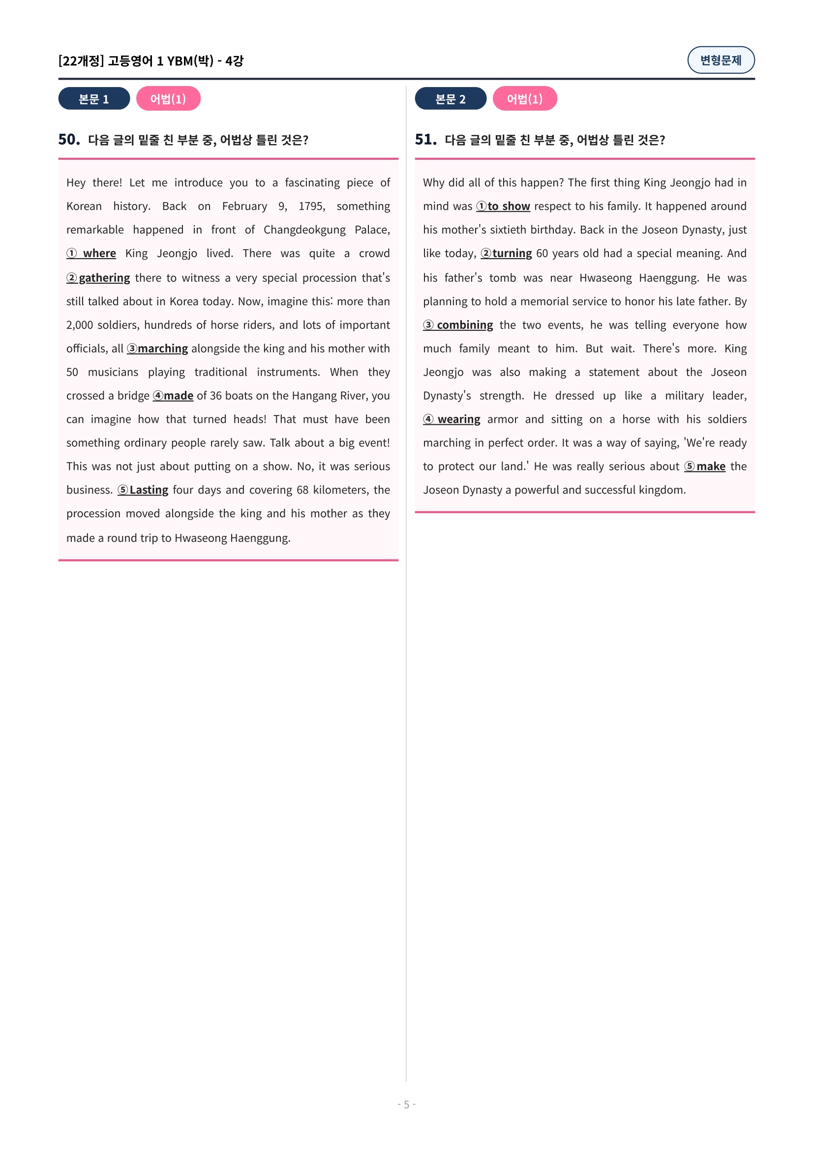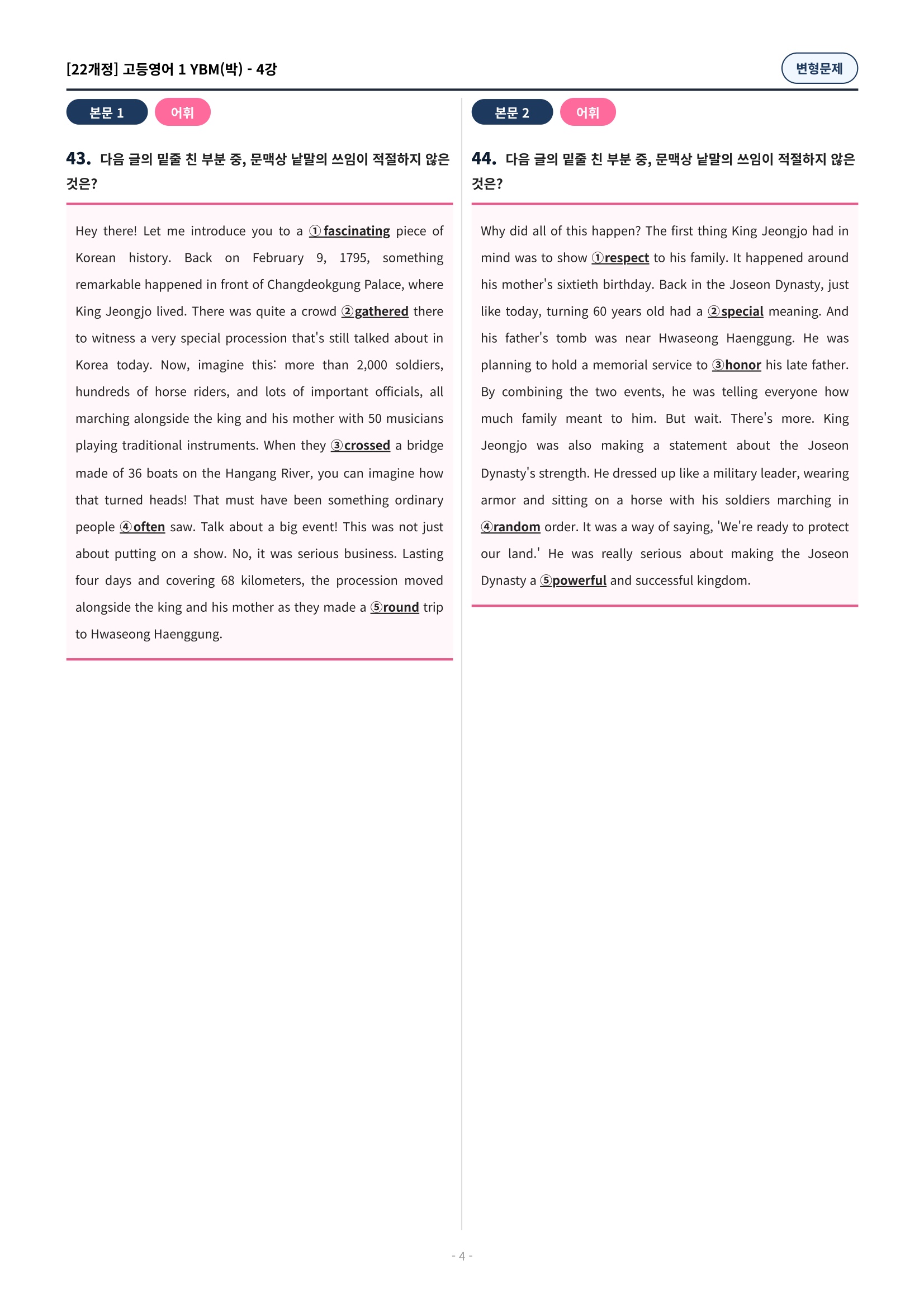 ๐ฉท[4๊ณผ][๊ณ ๋ฑ์์ด1] YBM(๋ฐ)๋ณํ๋ฌธ์ (107์ )(์ถ๊ฐ๋ฆฌ๋ฉํฌํจ)๐ฉท