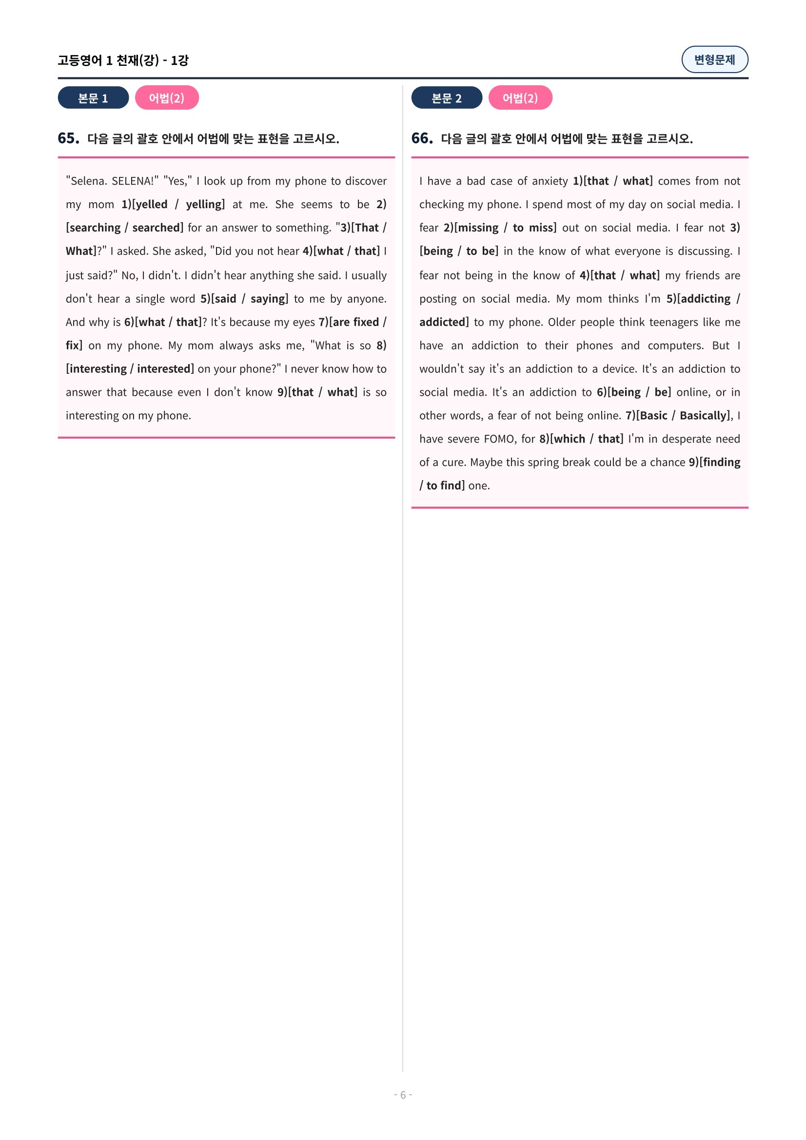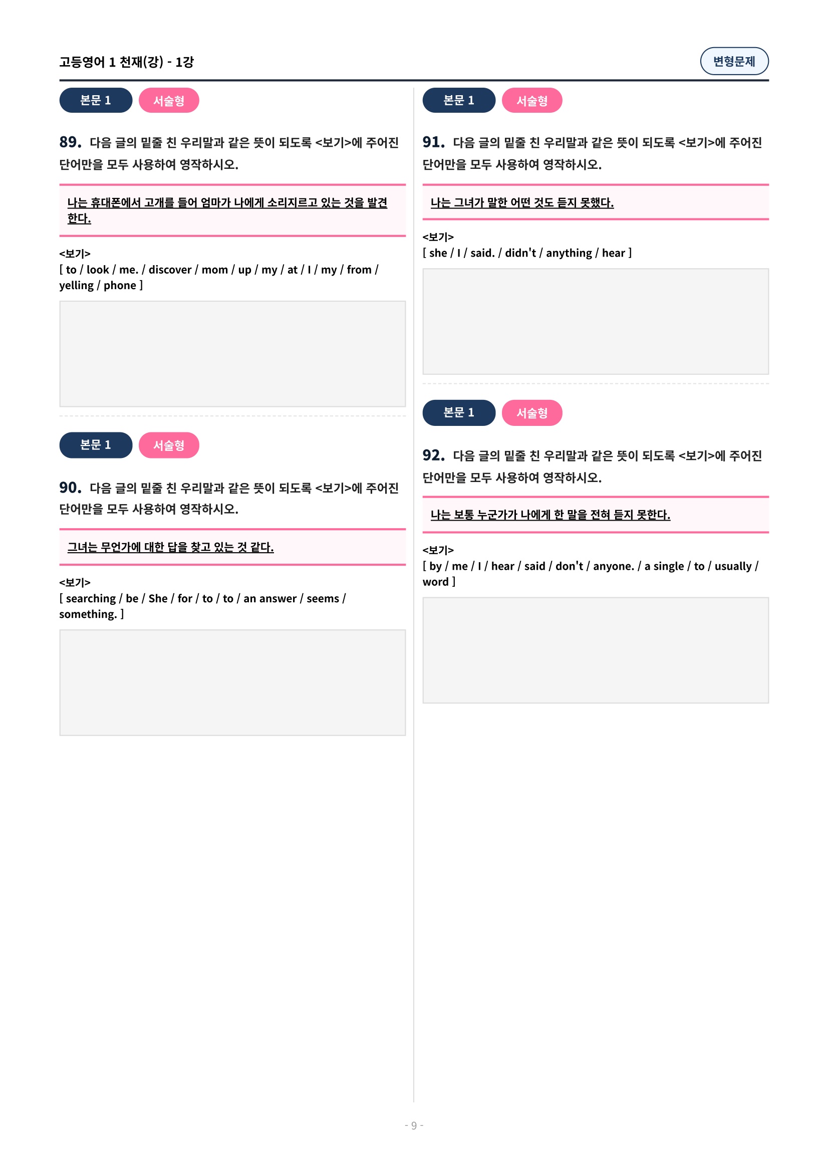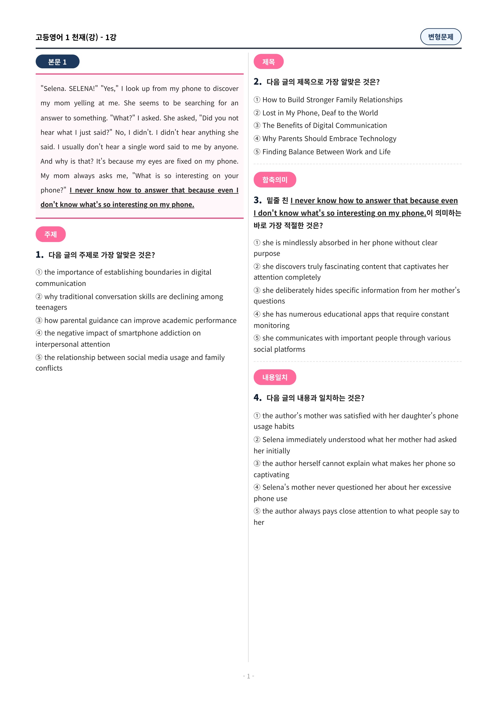 ๐ฉท[๊ณ ๋ฑ์์ด1] ์ฒ์ฌ(๊ฐ) 1๊ณผ ๋ณํ๋ฌธ์ (122์ )๐ฉท