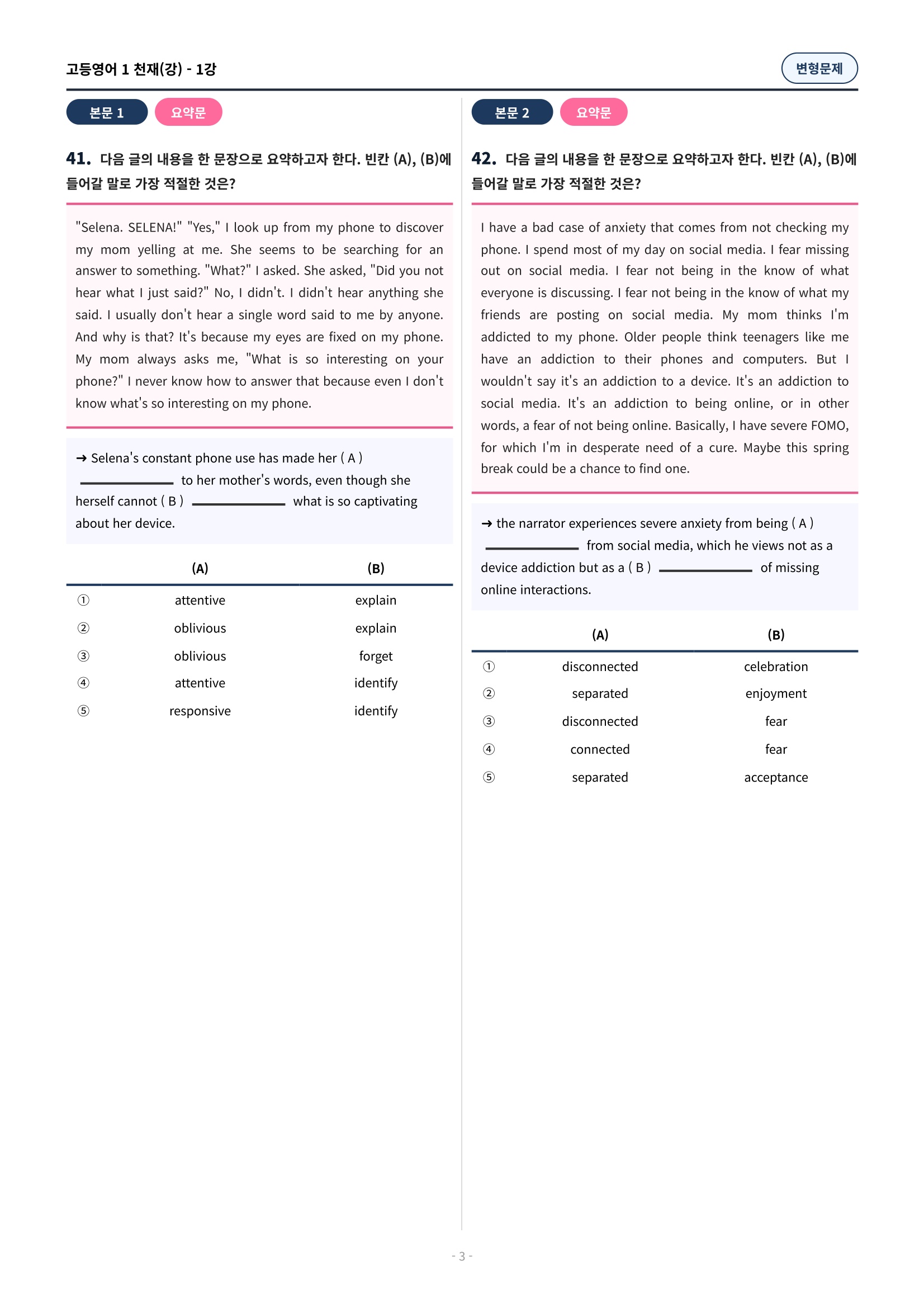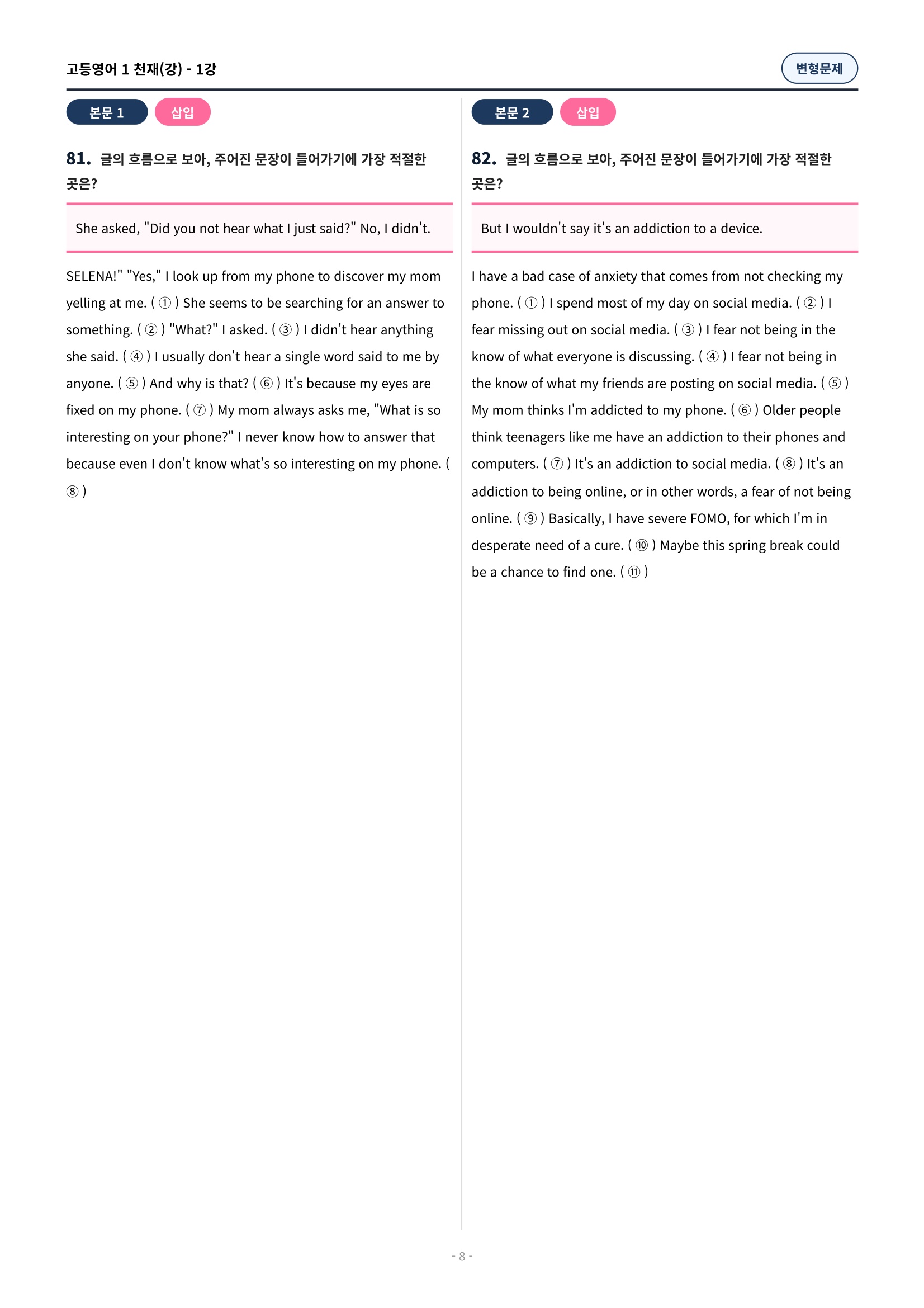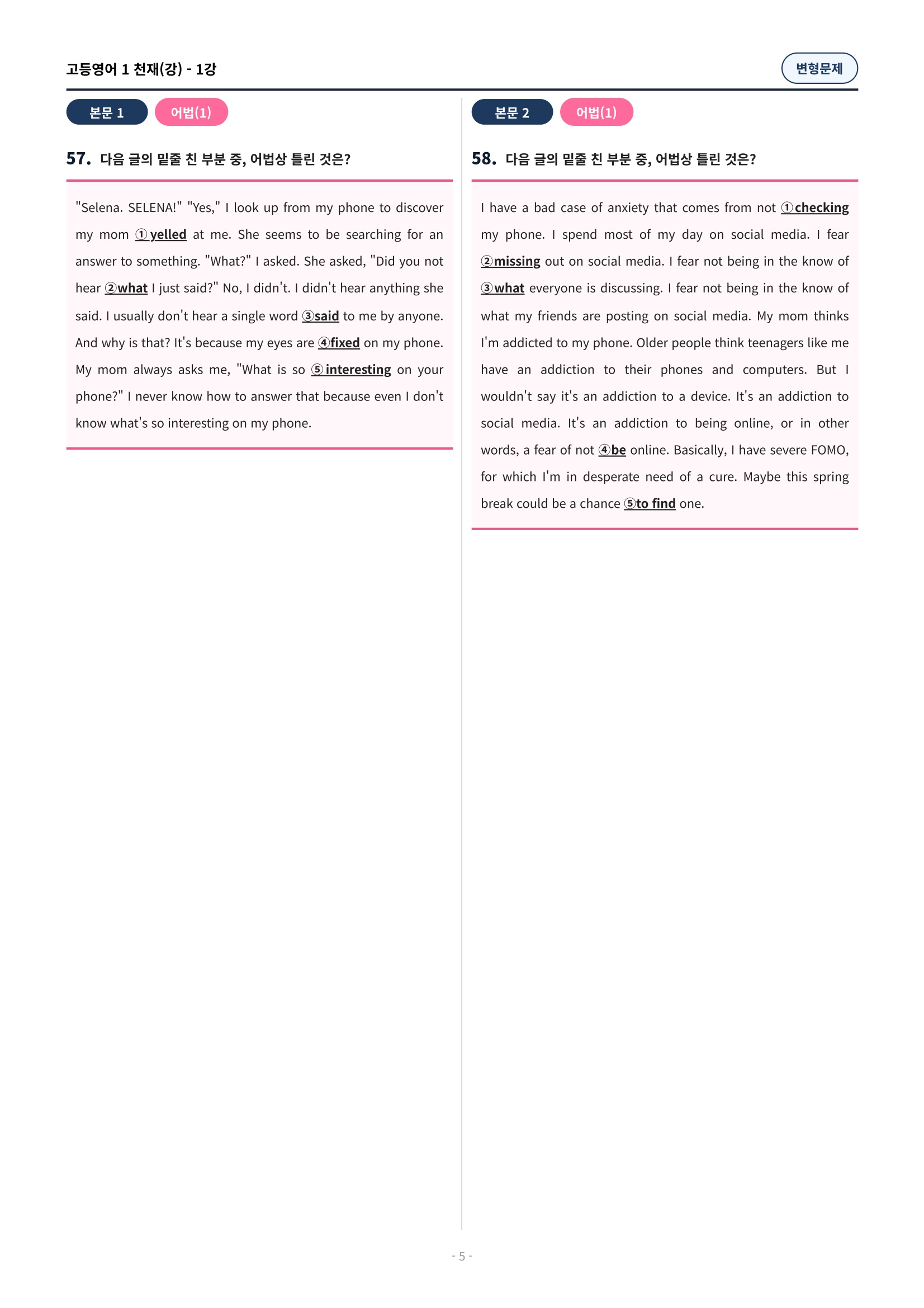 ๐ฉท[๊ณ ๋ฑ์์ด1] ์ฒ์ฌ(๊ฐ) 1๊ณผ ๋ณํ๋ฌธ์ (122์ )๐ฉท