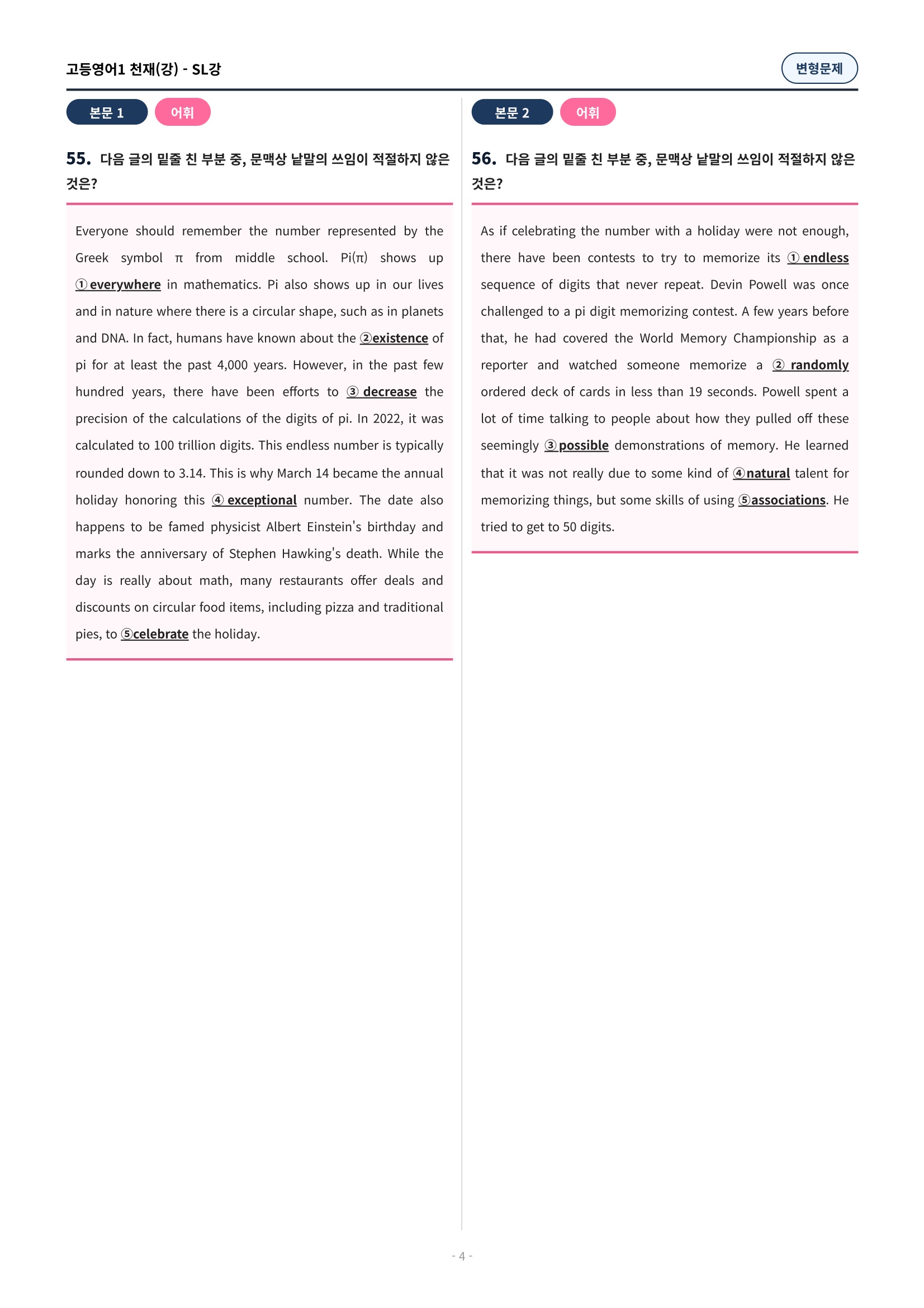 ๐ฉท[SL๊ณผ][๊ณ ๋ฑ์์ด1] ์ฒ์ฌ(๊ฐ) ๋ณํ๋ฌธ์ (134์ )๐ฉท