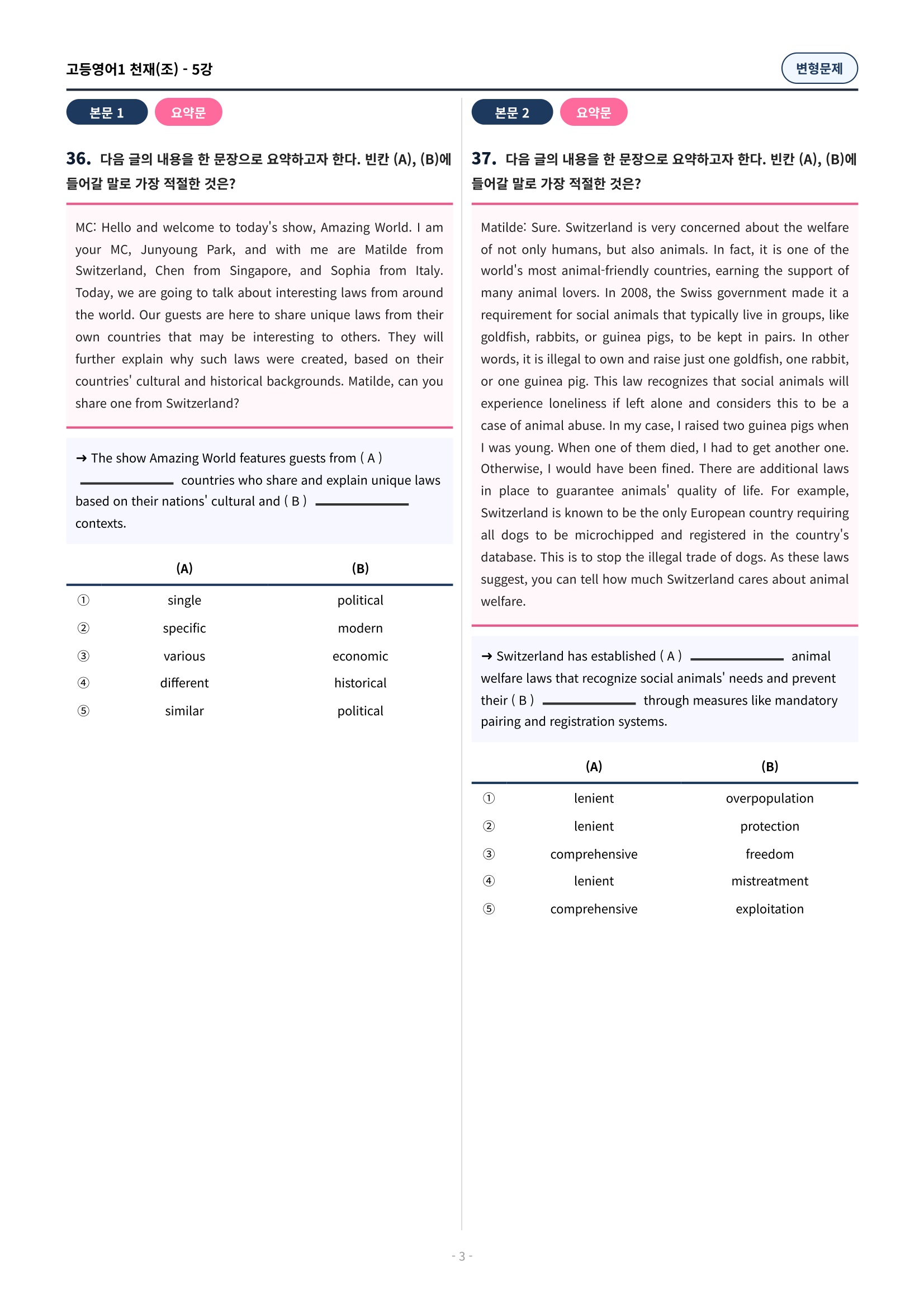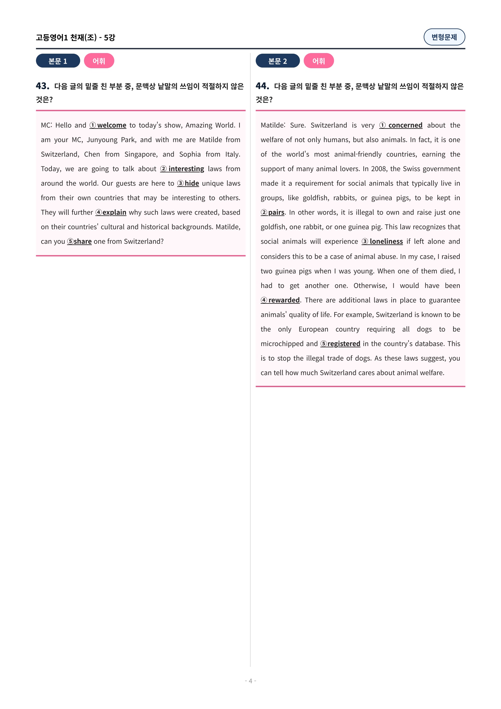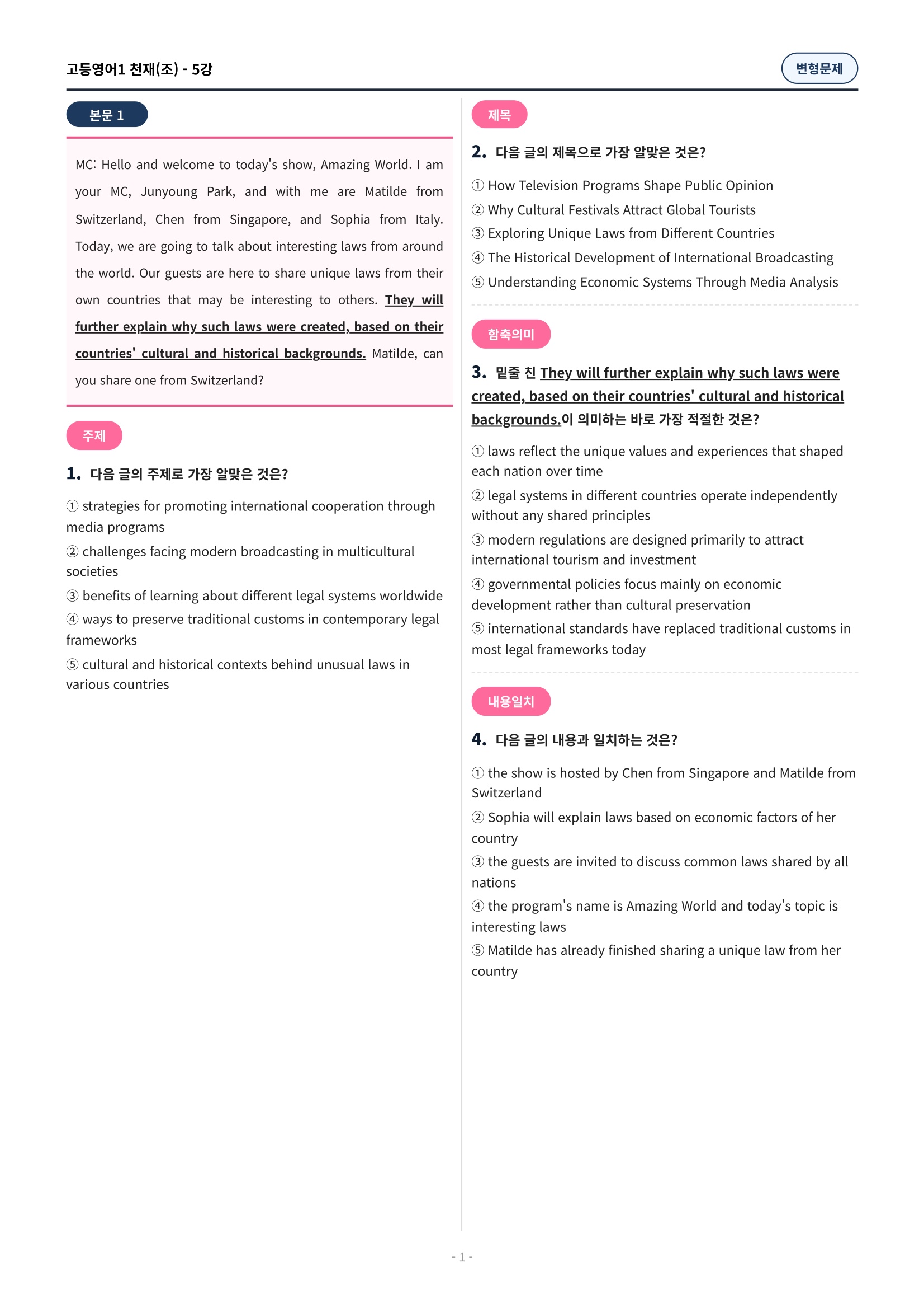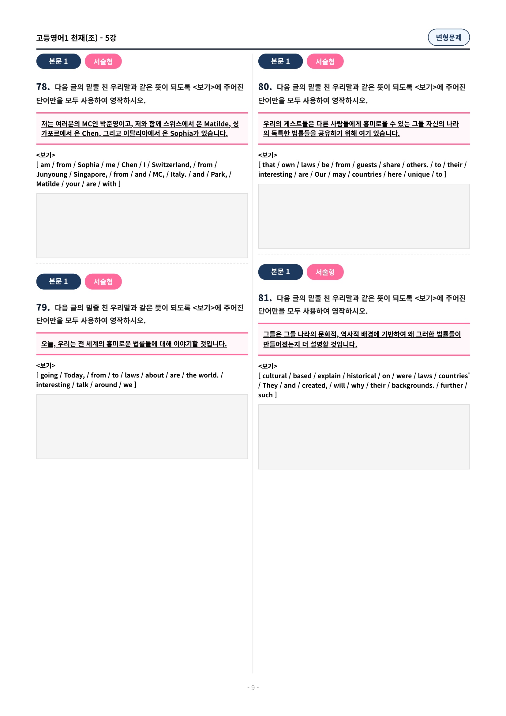 ๐ฉท[5๊ณผ][๊ณ ๋ฑ์์ด1] ์ฒ์ฌ(์กฐ) ๋ณํ๋ฌธ์ (107์ )๐ฉท