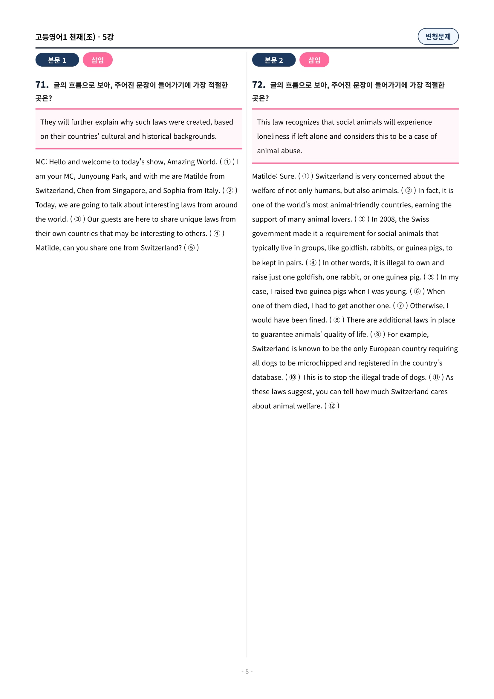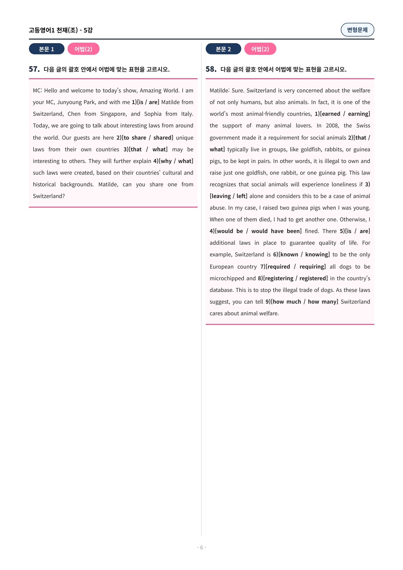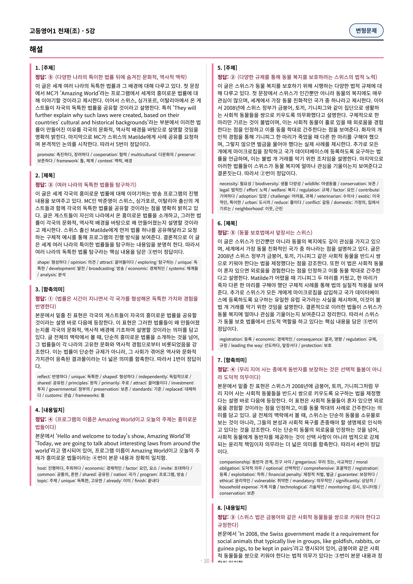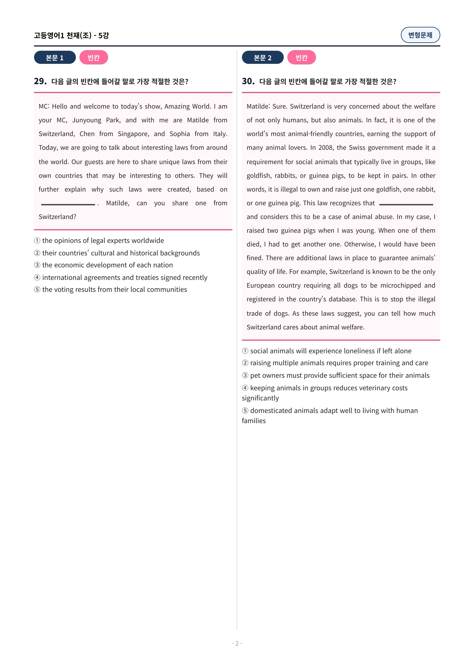 ๐ฉท[5๊ณผ][๊ณ ๋ฑ์์ด1] ์ฒ์ฌ(์กฐ) ๋ณํ๋ฌธ์ (107์ )๐ฉท