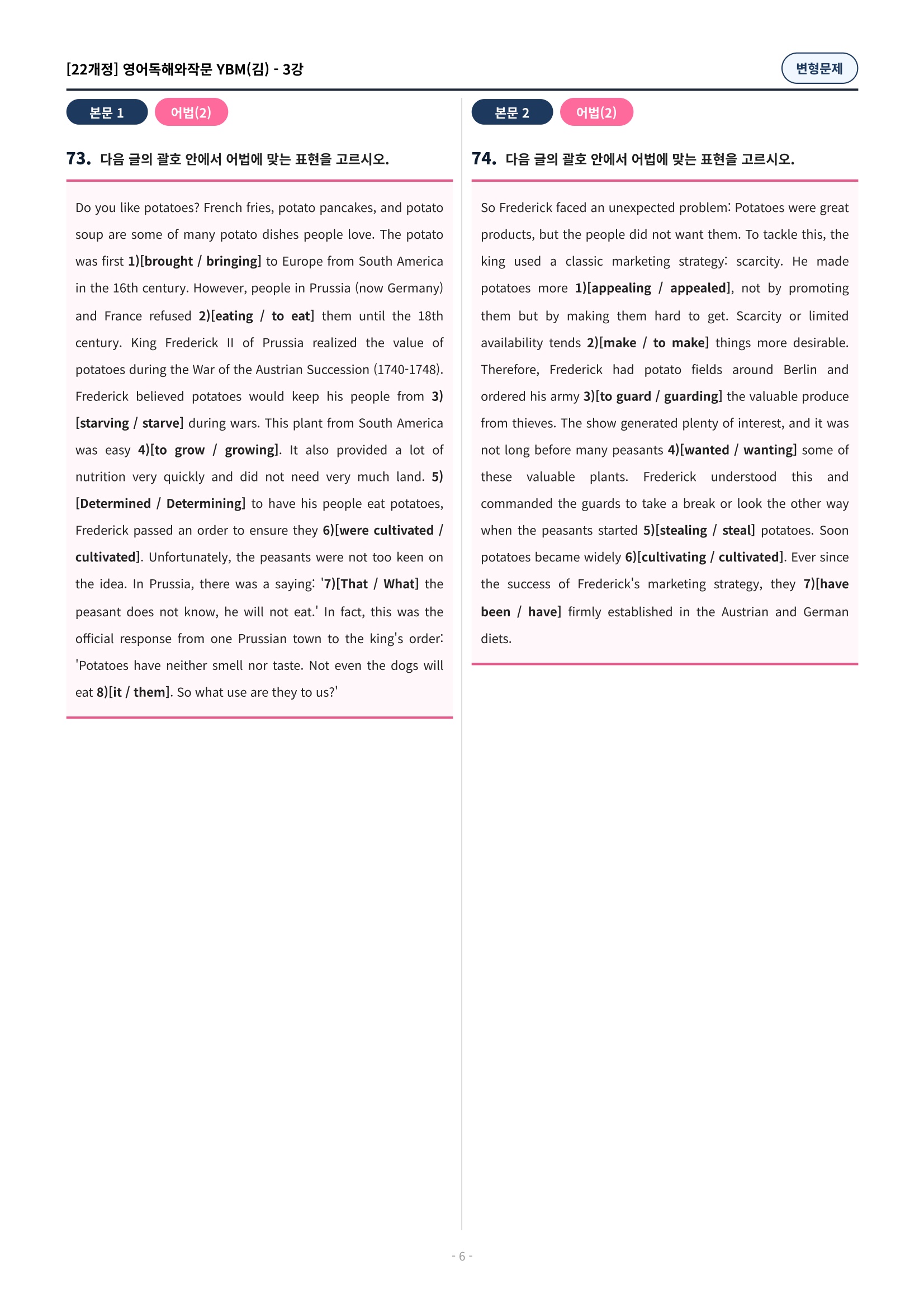 ๐ฉท[3๊ณผ][๋ณํ๋ฌธ์ ] ์์ด๋ ํด์์๋ฌธ YBM(๊น) (134์ )๐ฉท