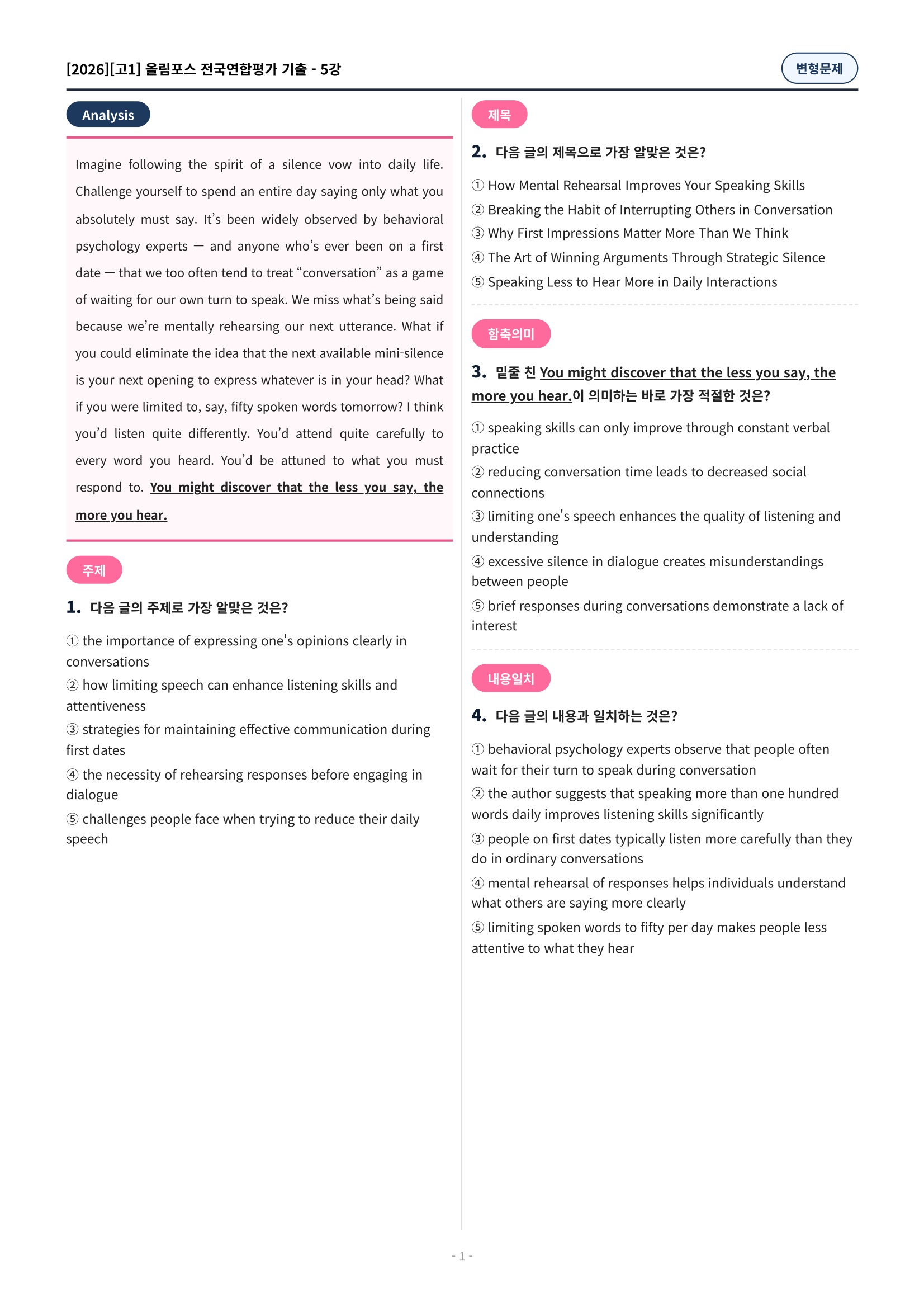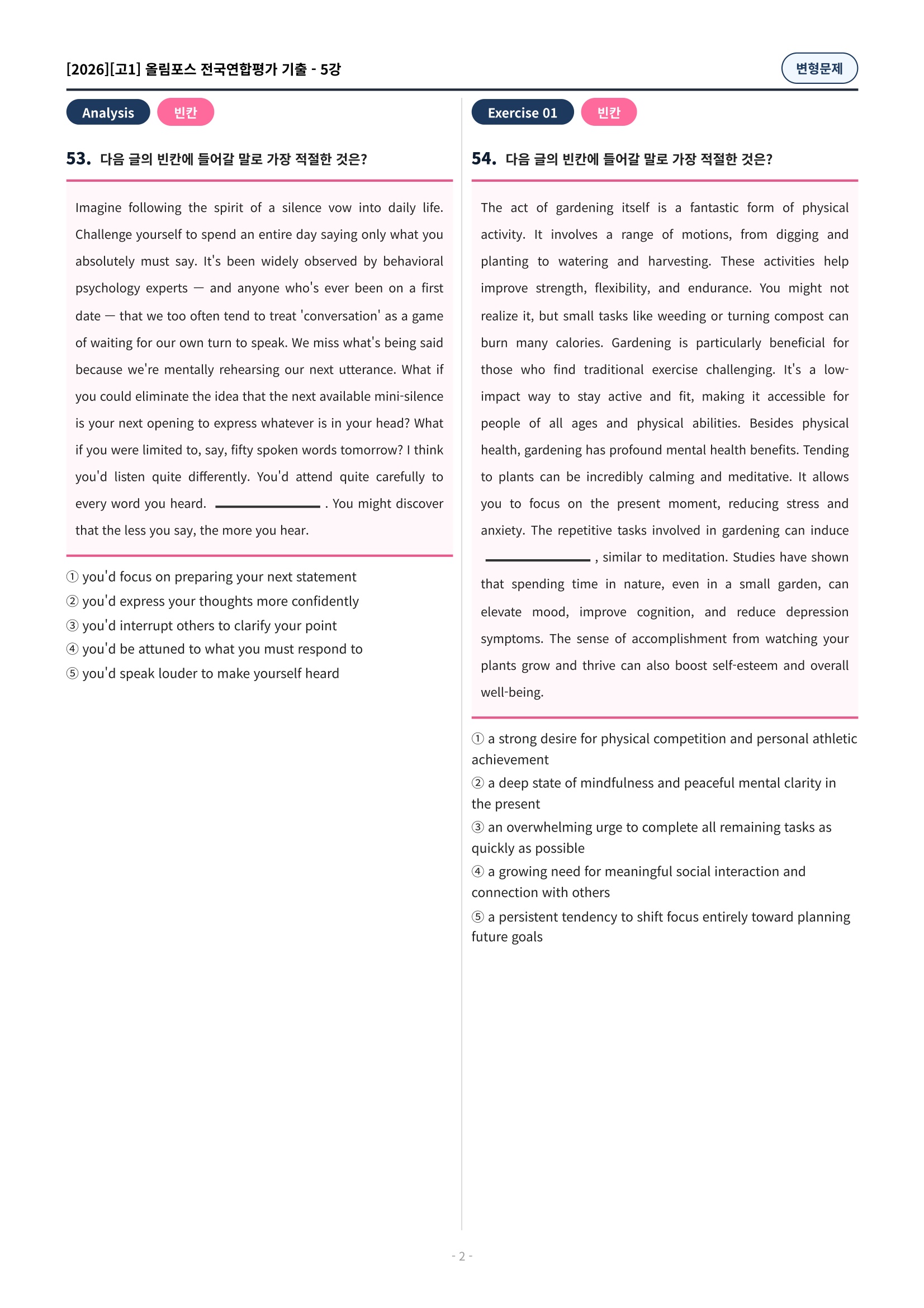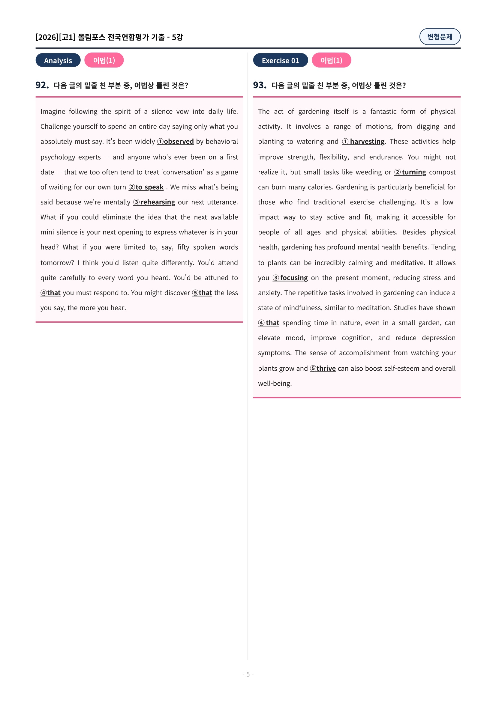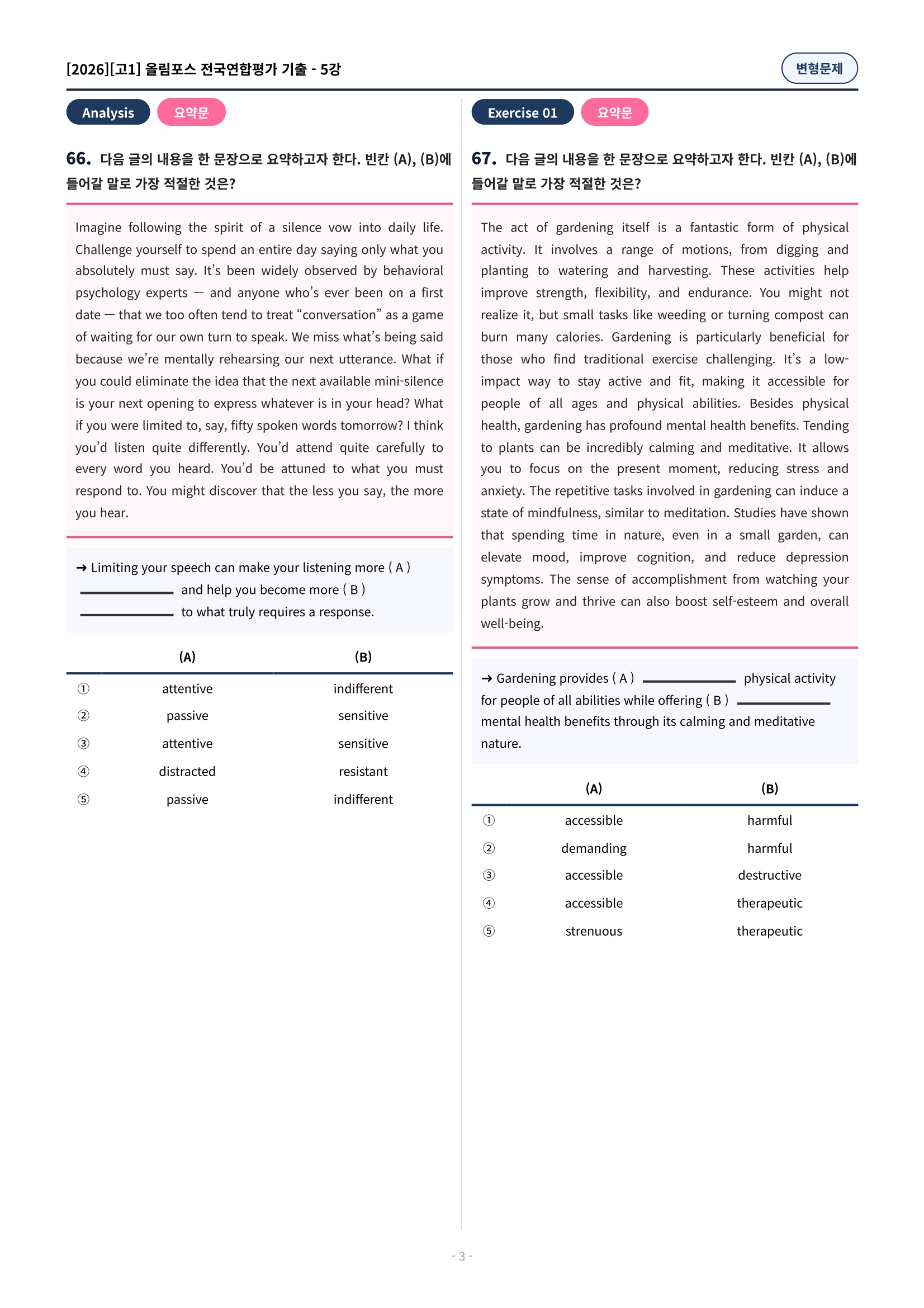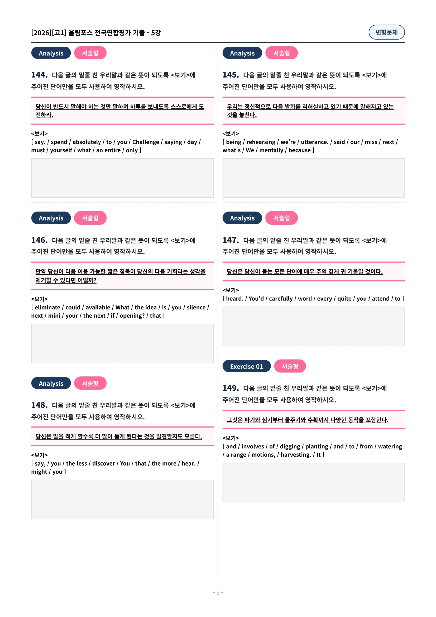๐ฉท[5๊ฐ][๊ณ 1][๋ณํ๋ฌธ์ ] 2026์ฌ๋ฆผํฌ์ค์ ๊ตญ์ฐํฉ๊ธฐ์ถ(197์ )๐ฉท
