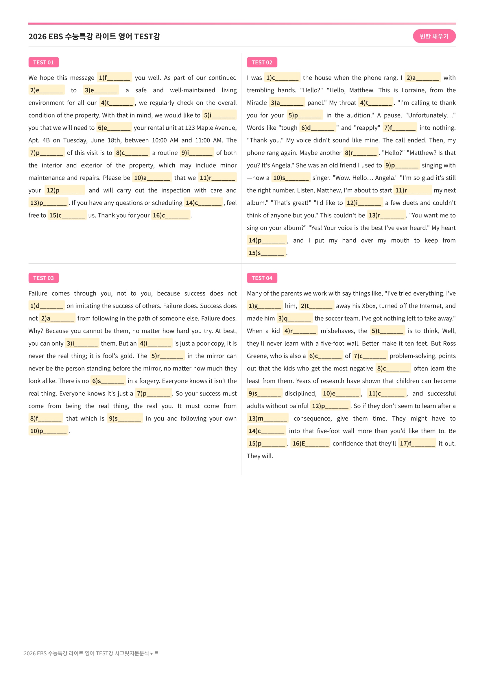 ๋ณธ ์ํ์ ๋์งํธ ํ์ผ ํํ์ ์ฝํ ์ธ ๋ก, ๋ณ๋์ ๋ฌผ๋ฆฌ์ ์ ๋ณธ์ด๋ ๋ฐฐ์ก์ ์งํ๋์ง ์์ต๋๋ค. (ํ์ผ์ ๋ค์ด๋ก๋ ํ์ ํ ์ง์ ํ๋ฆฐํธํด์ ์ฌ์ฉํ์๋ ์๋ฃ์ ๋๋ค.)