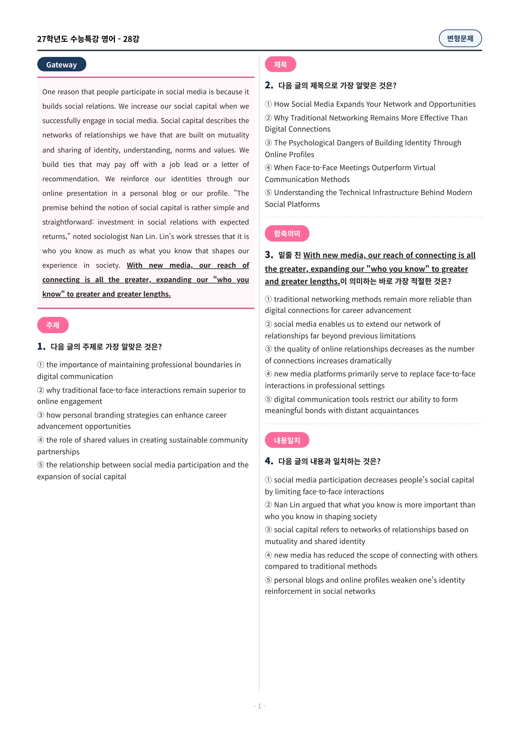EBS์๋ฅํน๊ฐ ์์ด] ๋ณํ๋ฌธ์ (60์ )๐ฉท