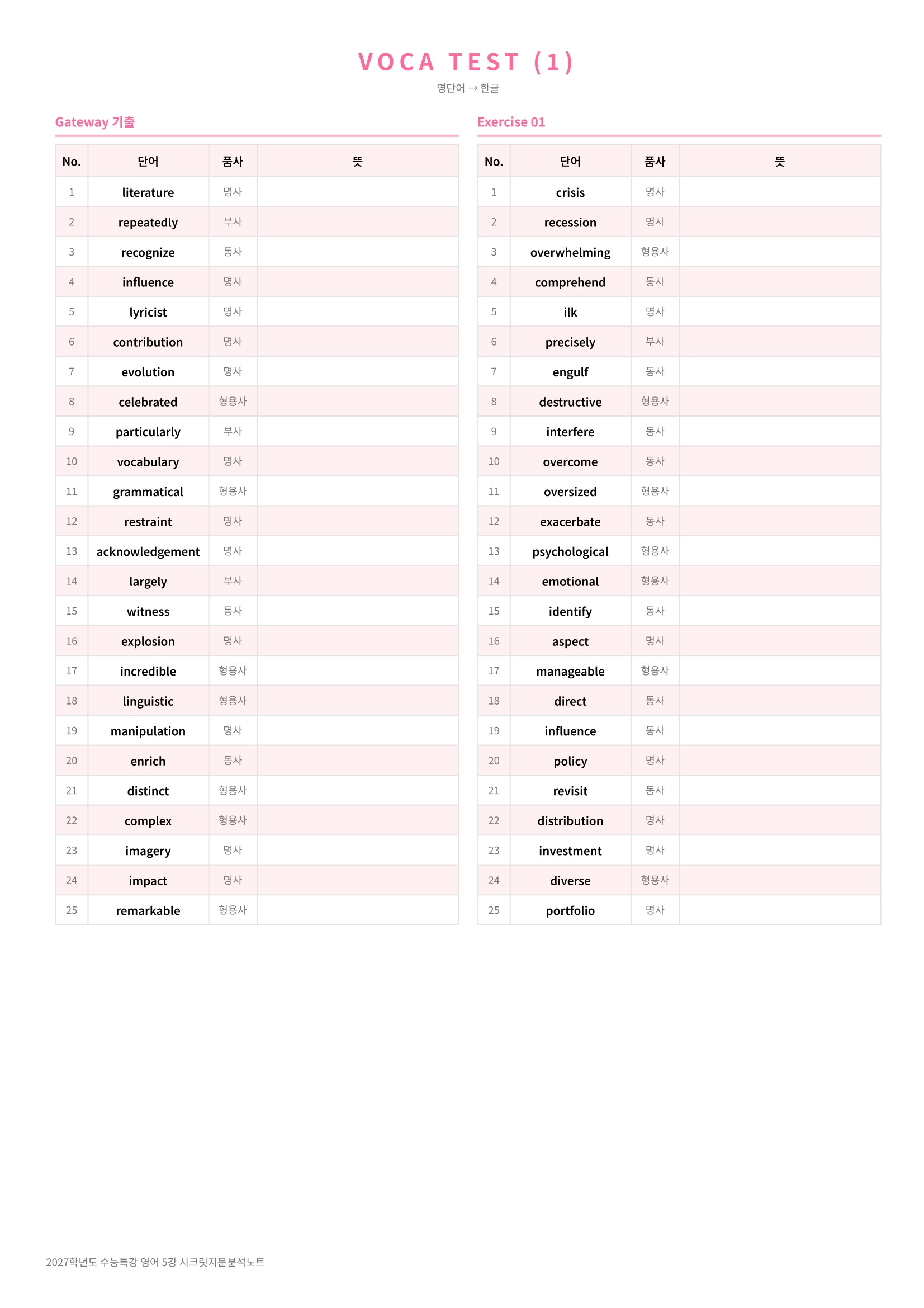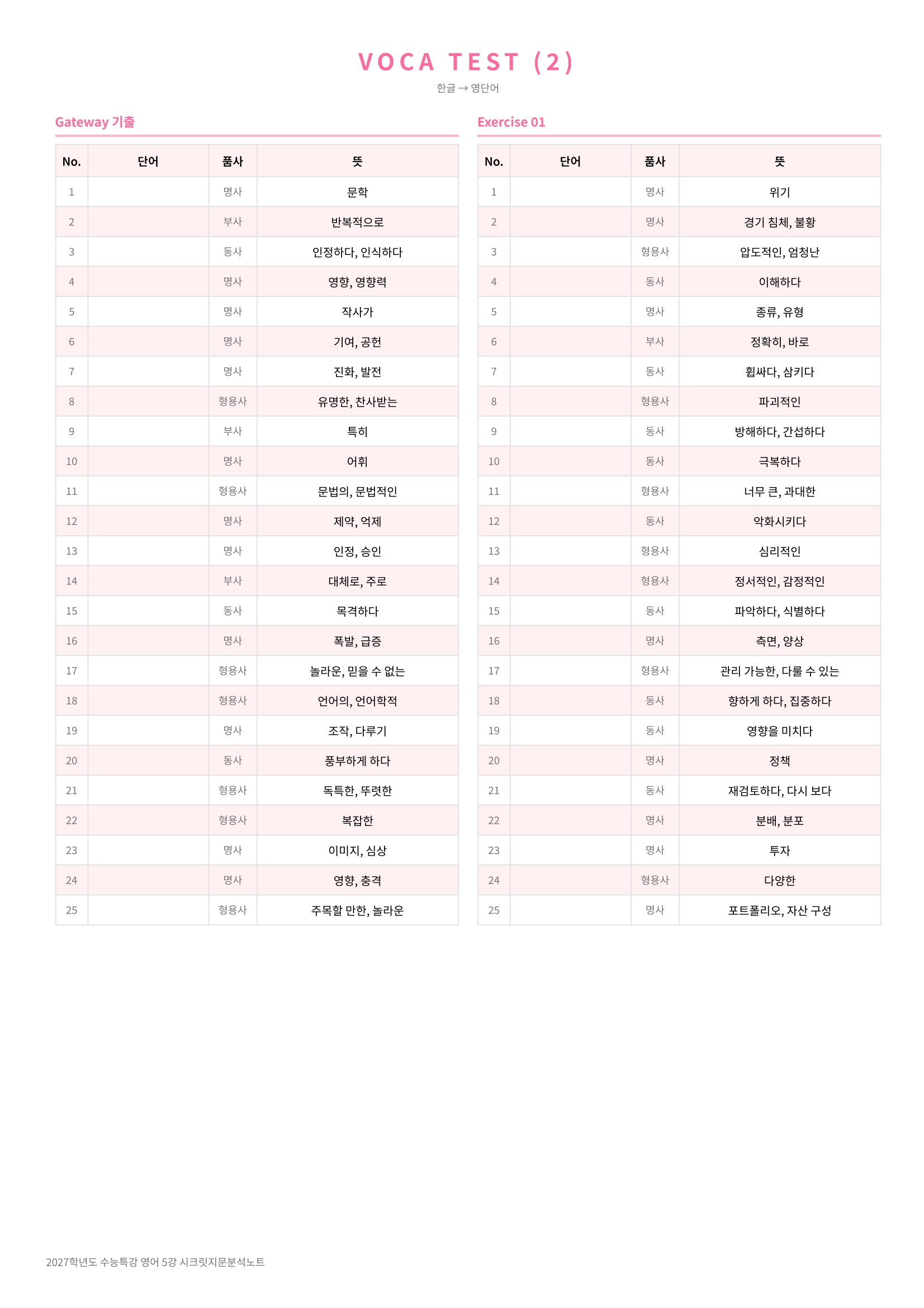 ๋ฌธํญ๋ณ ๋จ์ด ์ ๋ฆฌ & ํ ์คํธ