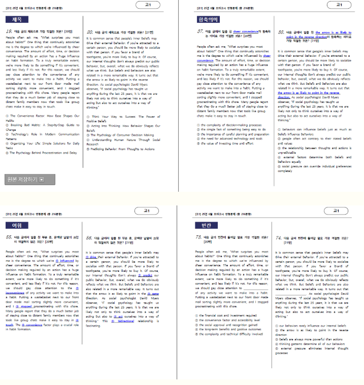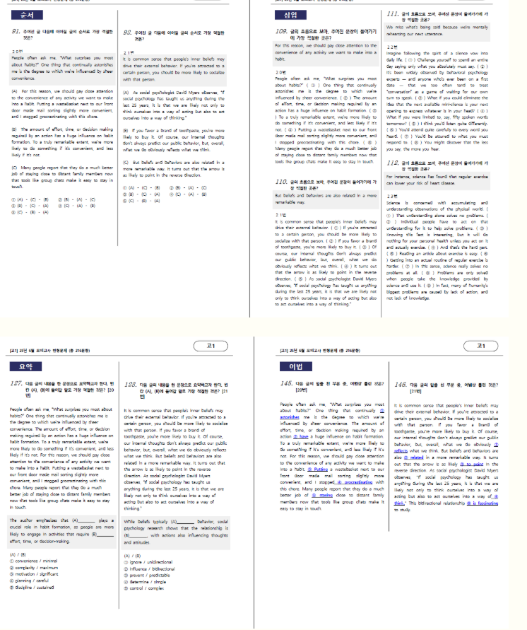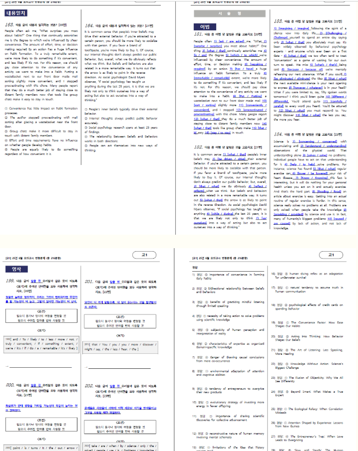 (유형편) : 주제, 제목, 밑줄함의, 어휘, 어법, 요약문, 빈칸, 순서, 삽입, 서술형 영작