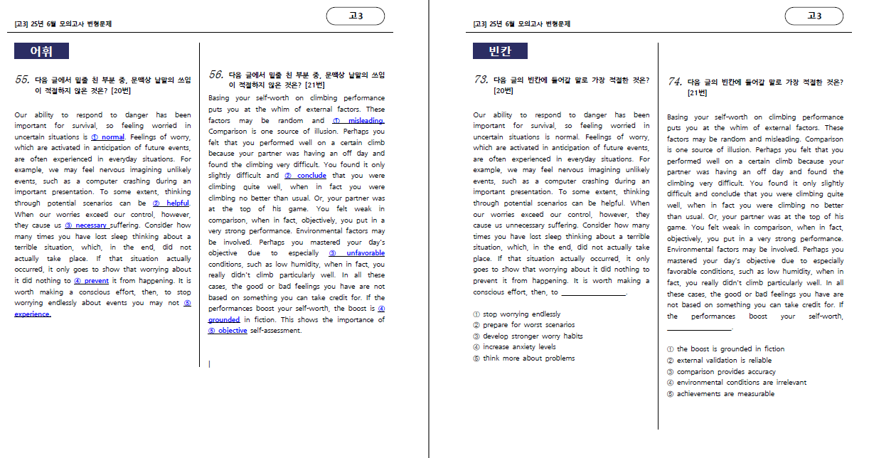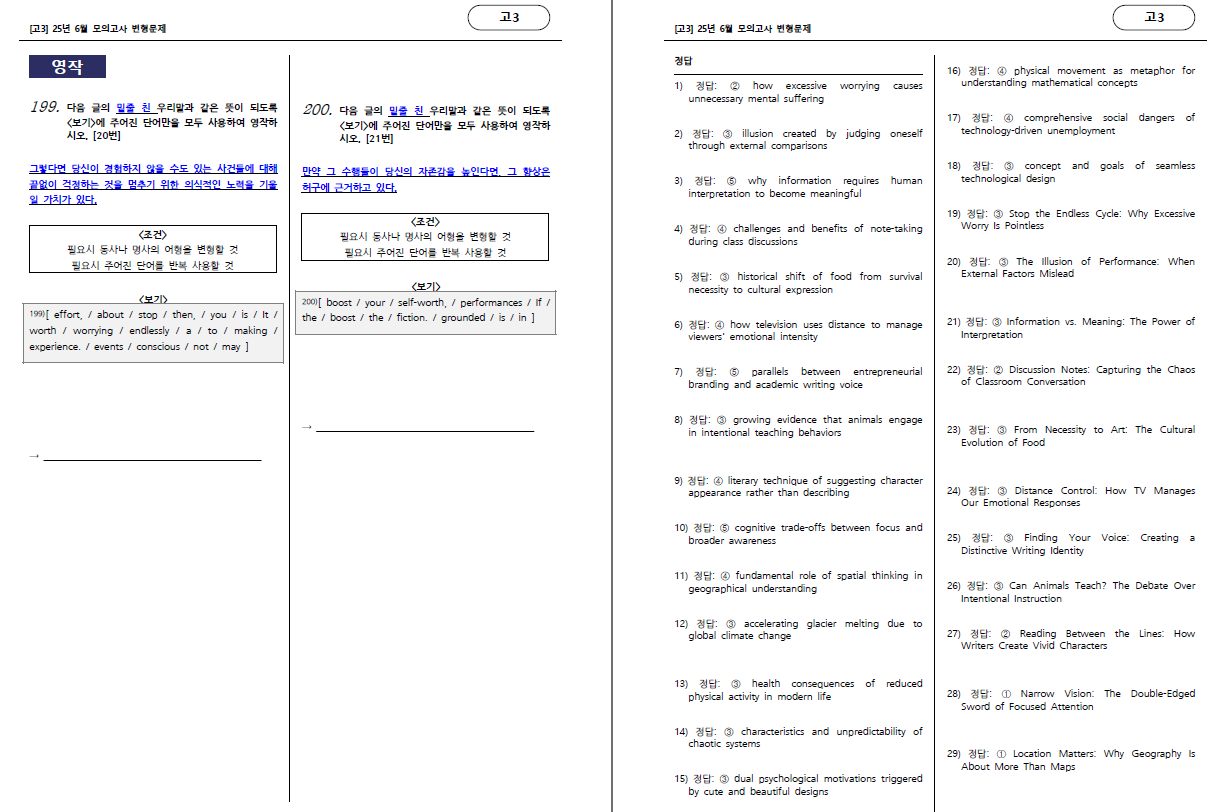 25학년도 6월 모의고사 고3 변형문제 입니다.