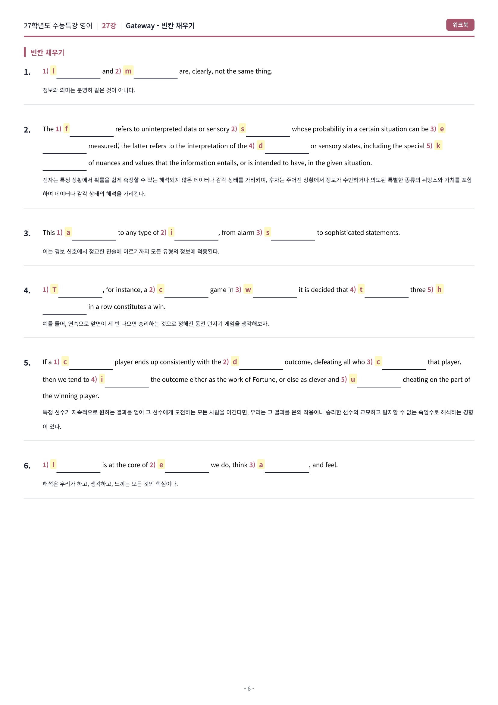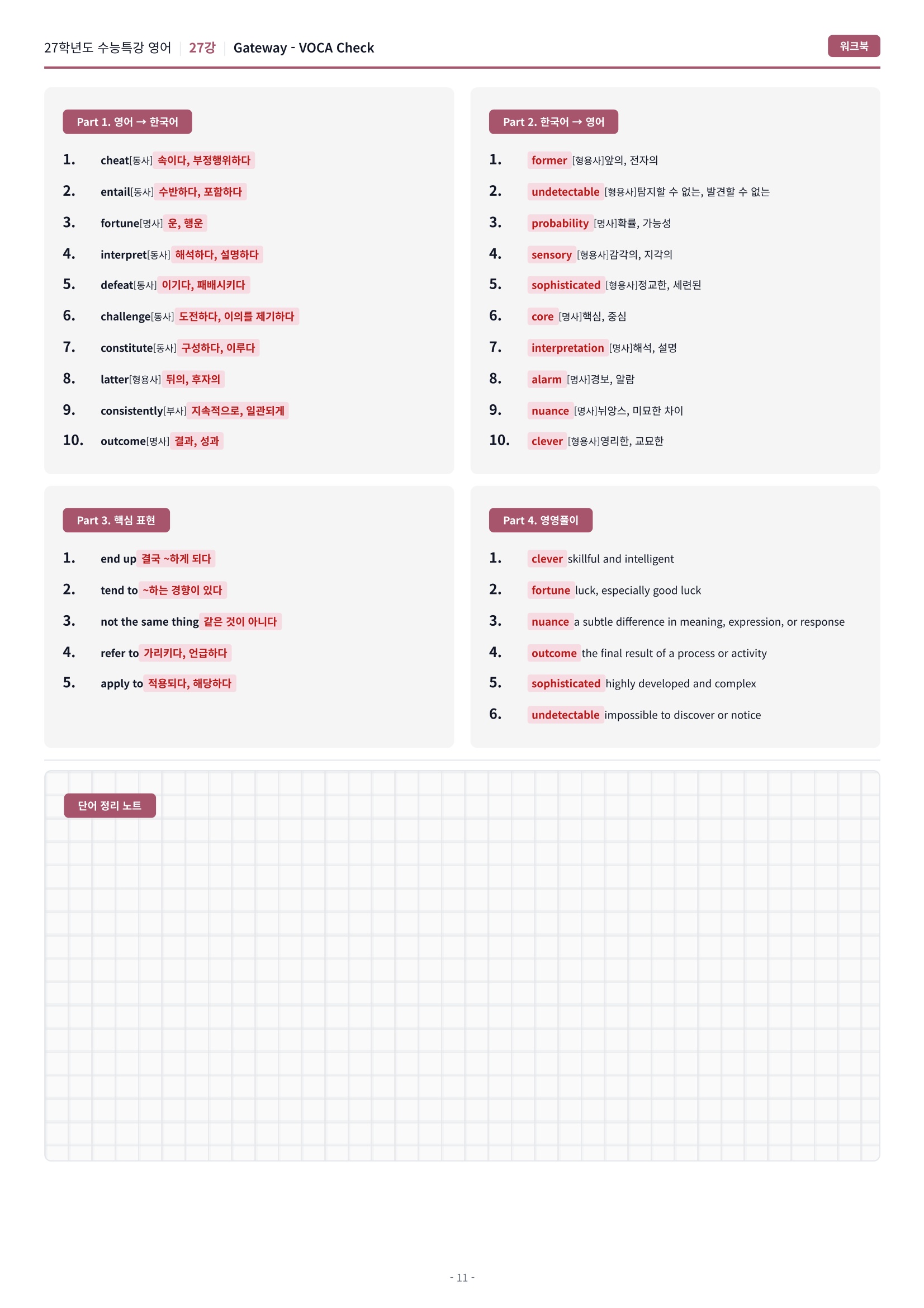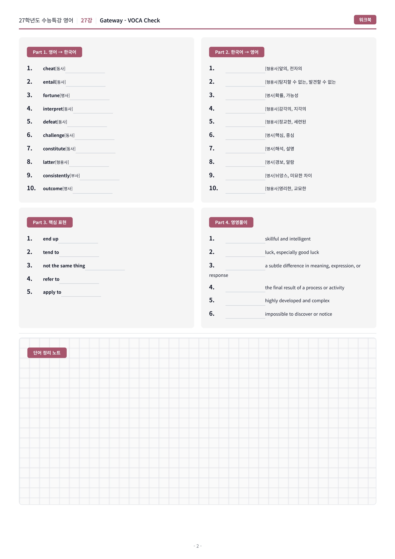 1. VOCA CHECK : ์๋ฌธ + ์ ์ฒดํด์ + ํ์๋จ์ด + ๋์์ด + ๋ฐ์์ด + ์์ํ์ด + ํ์ํํ