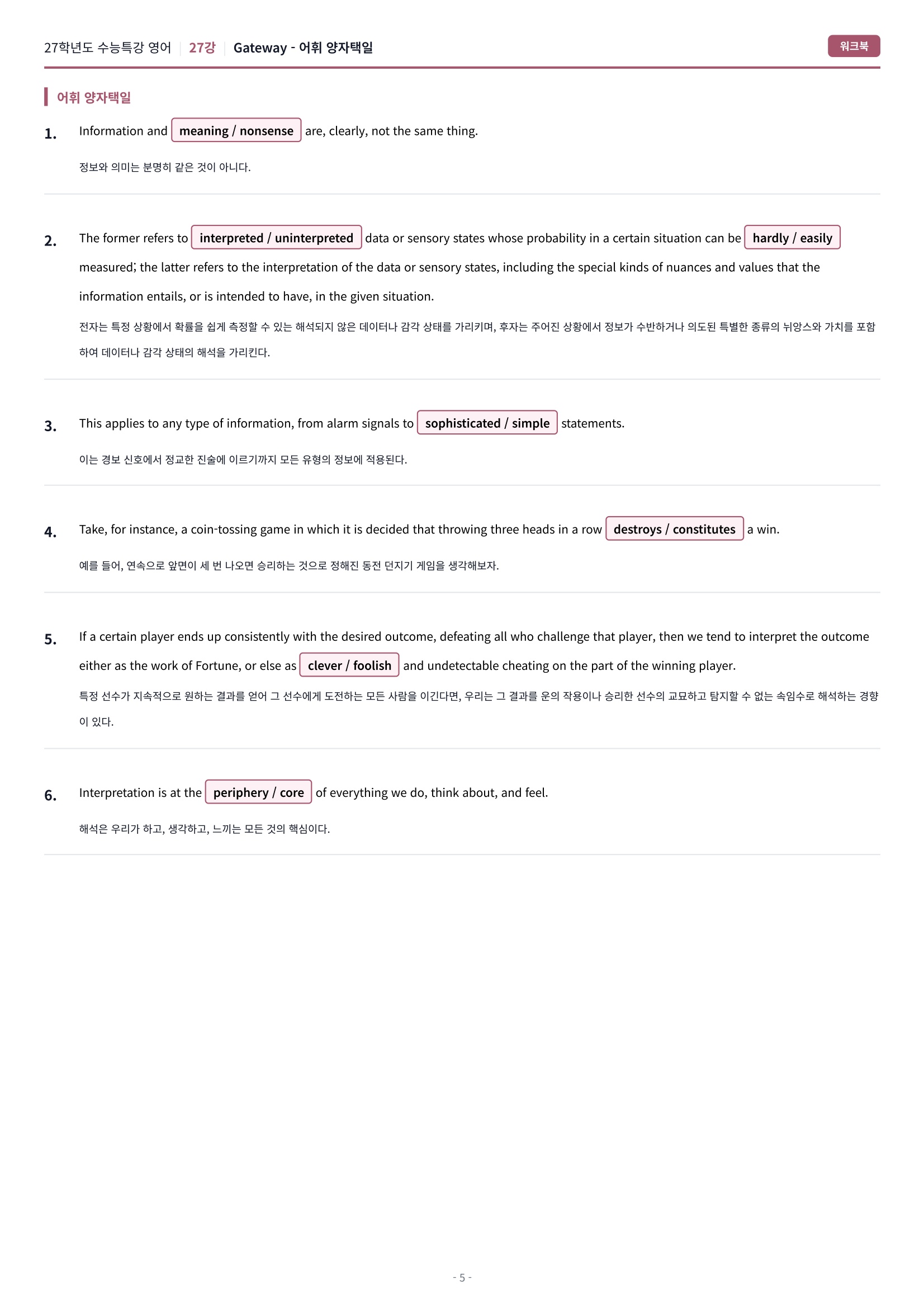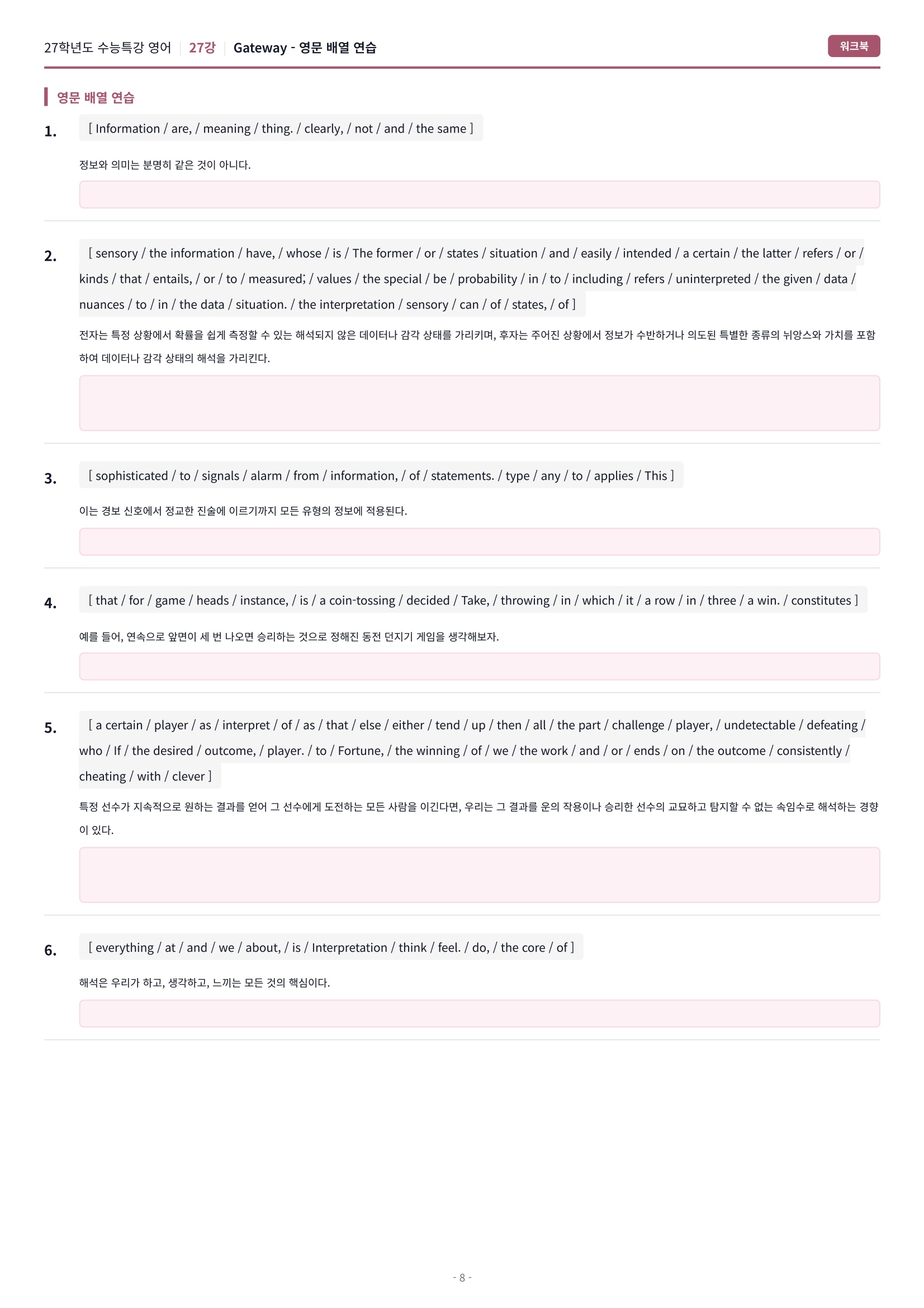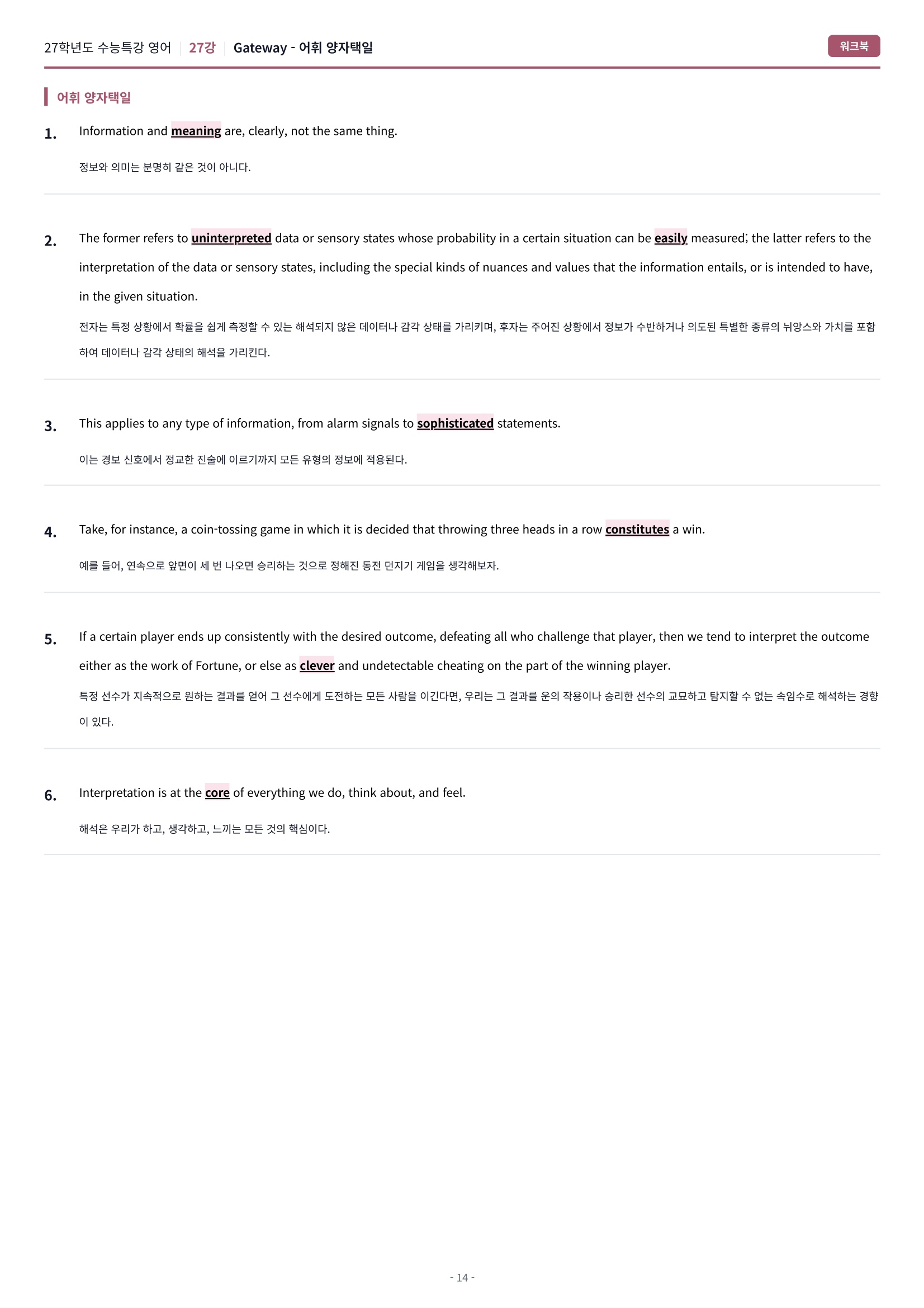 1. VOCA CHECK : ์๋ฌธ + ์ ์ฒดํด์ + ํ์๋จ์ด + ๋์์ด + ๋ฐ์์ด + ์์ํ์ด + ํ์ํํ