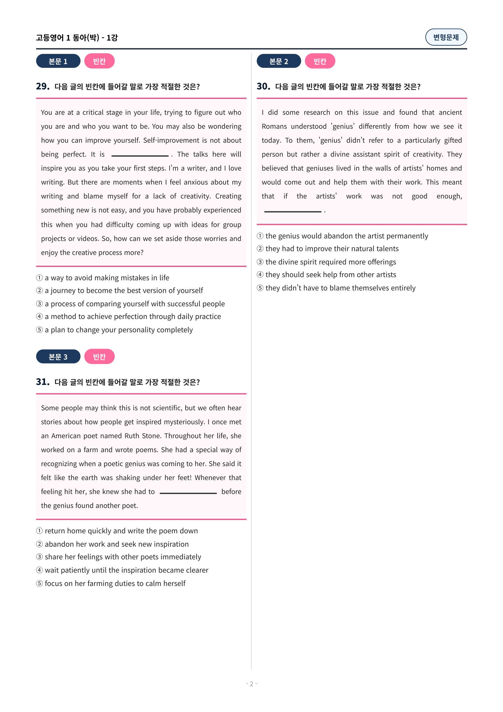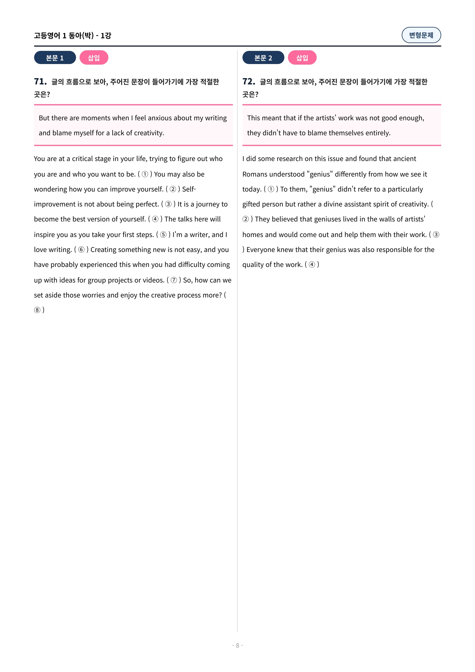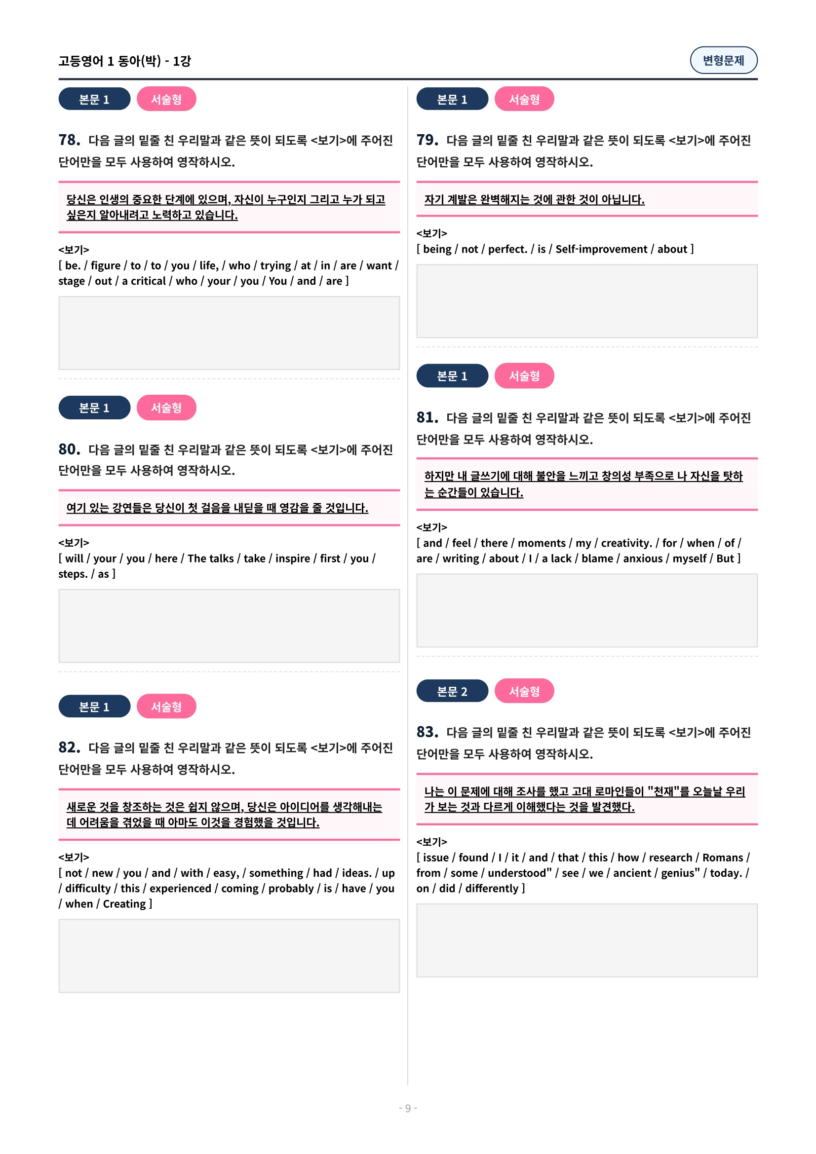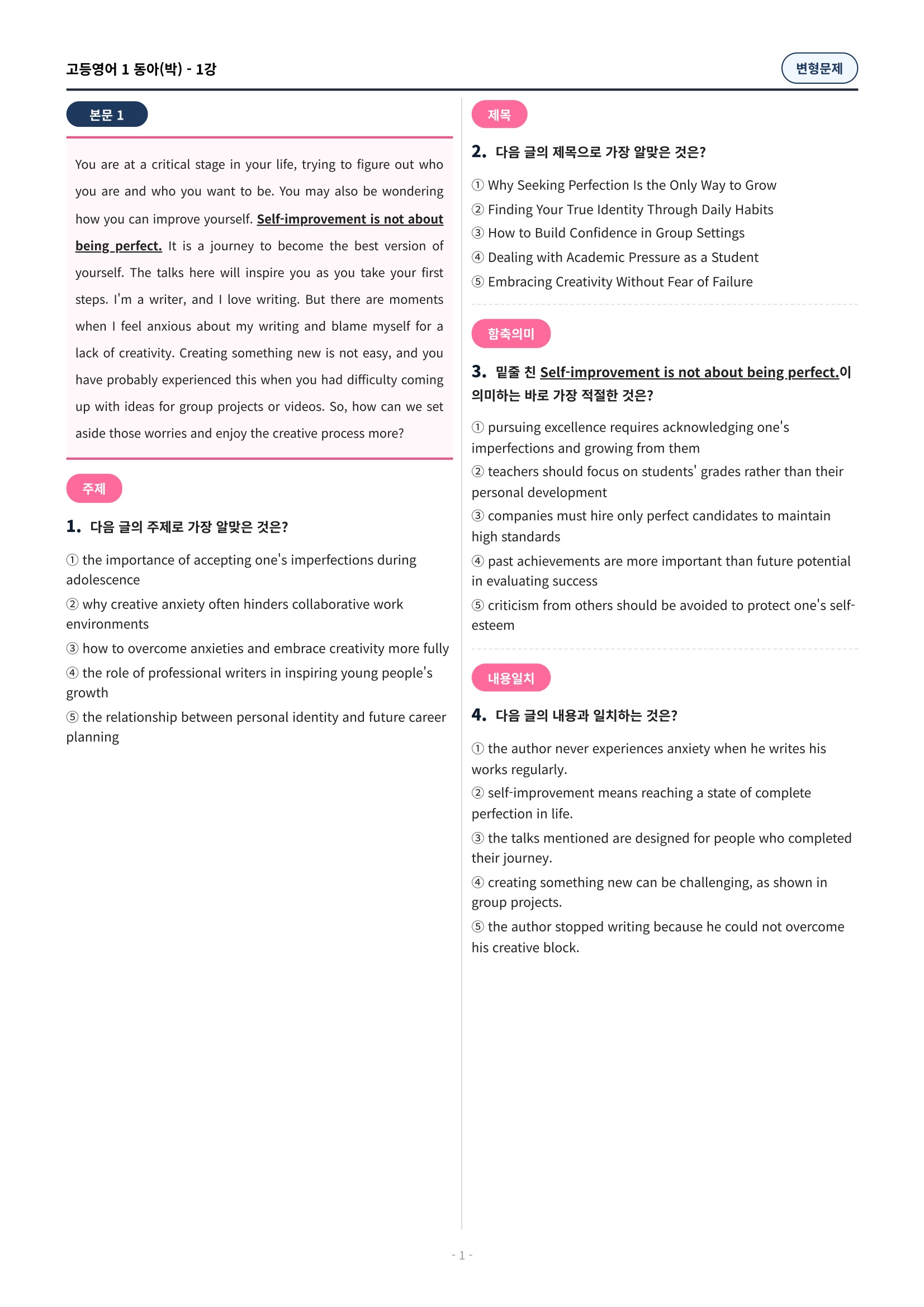 ๐ฉท[์์ด1] ๋์(๋ฐ) 1๊ณผ ๋ณํ๋ฌธ์ (107์ )๐ฉท