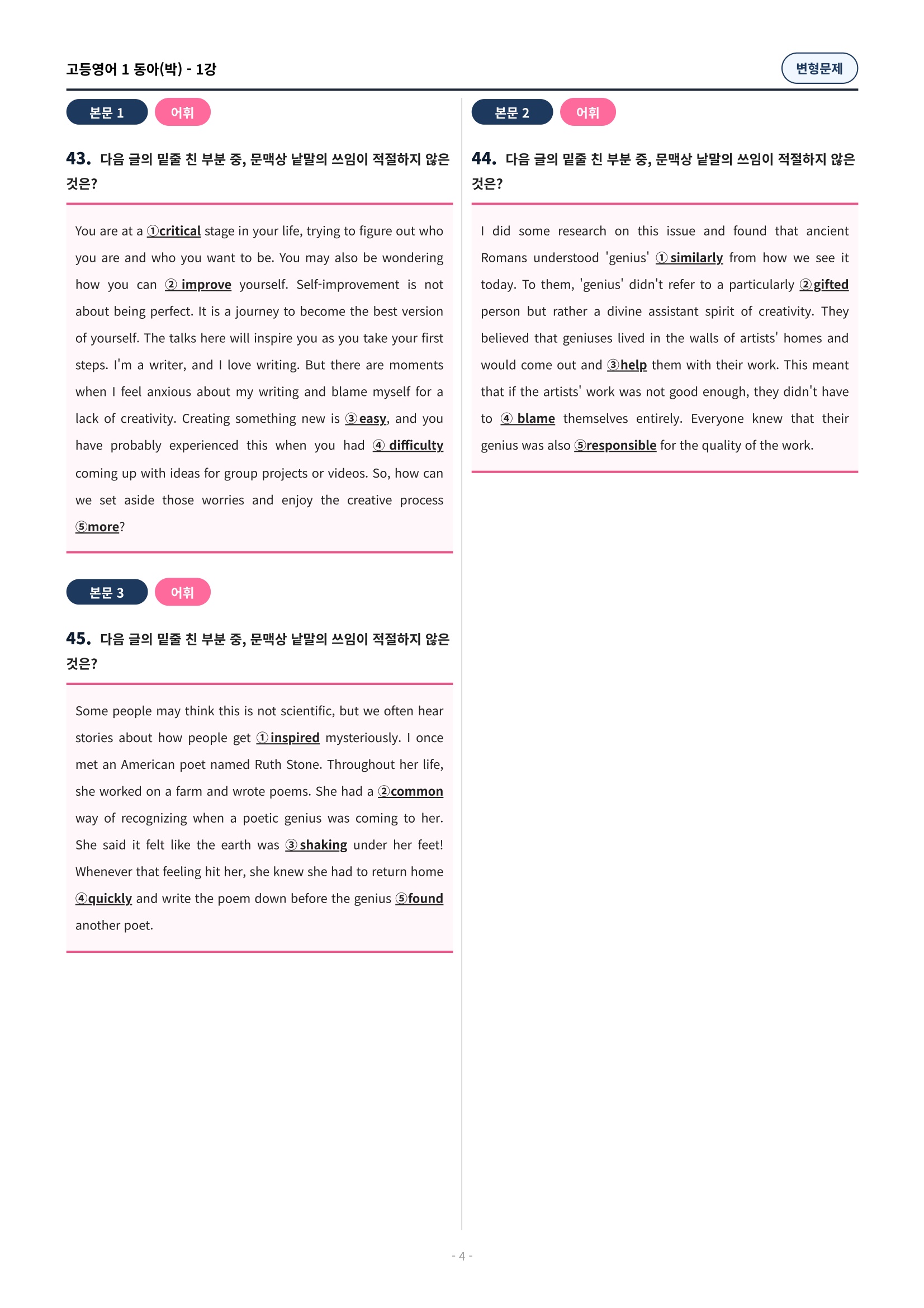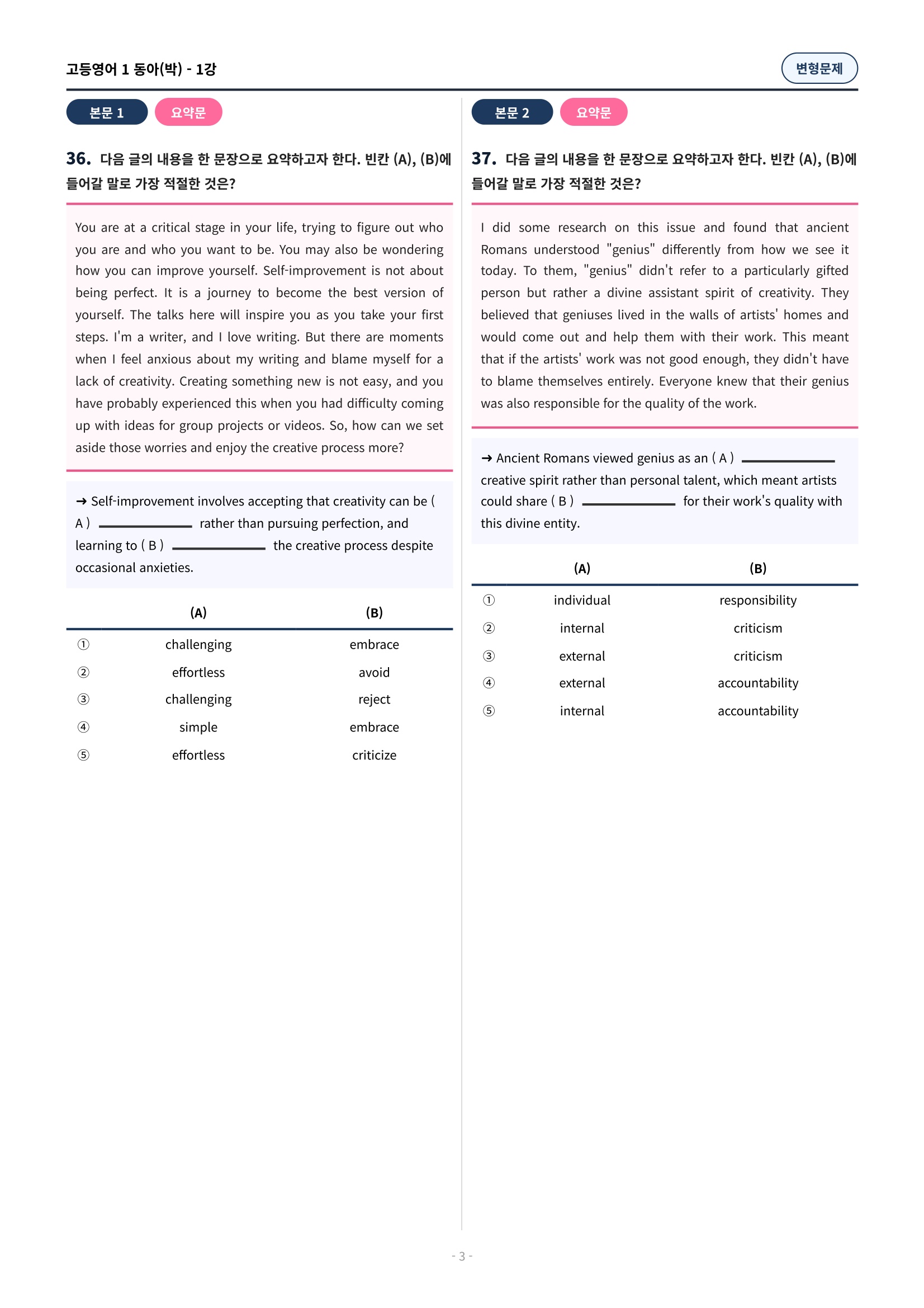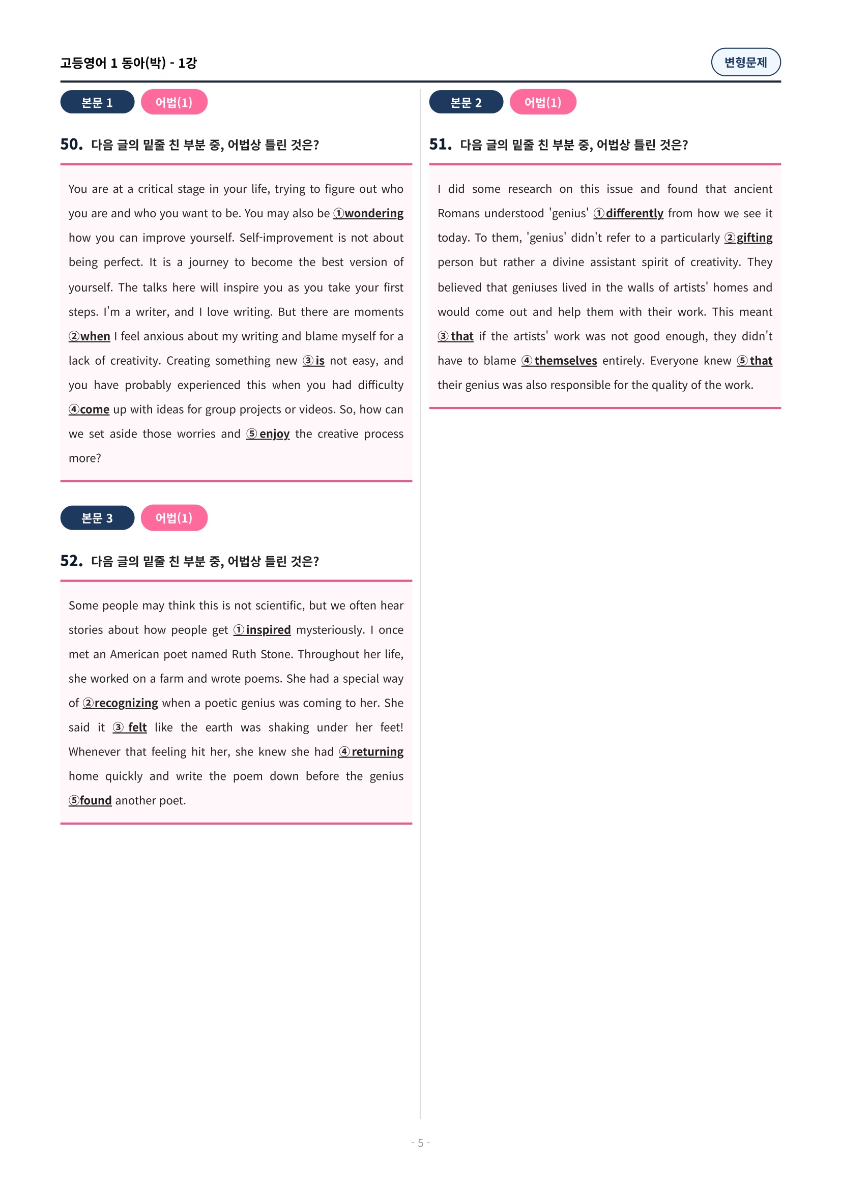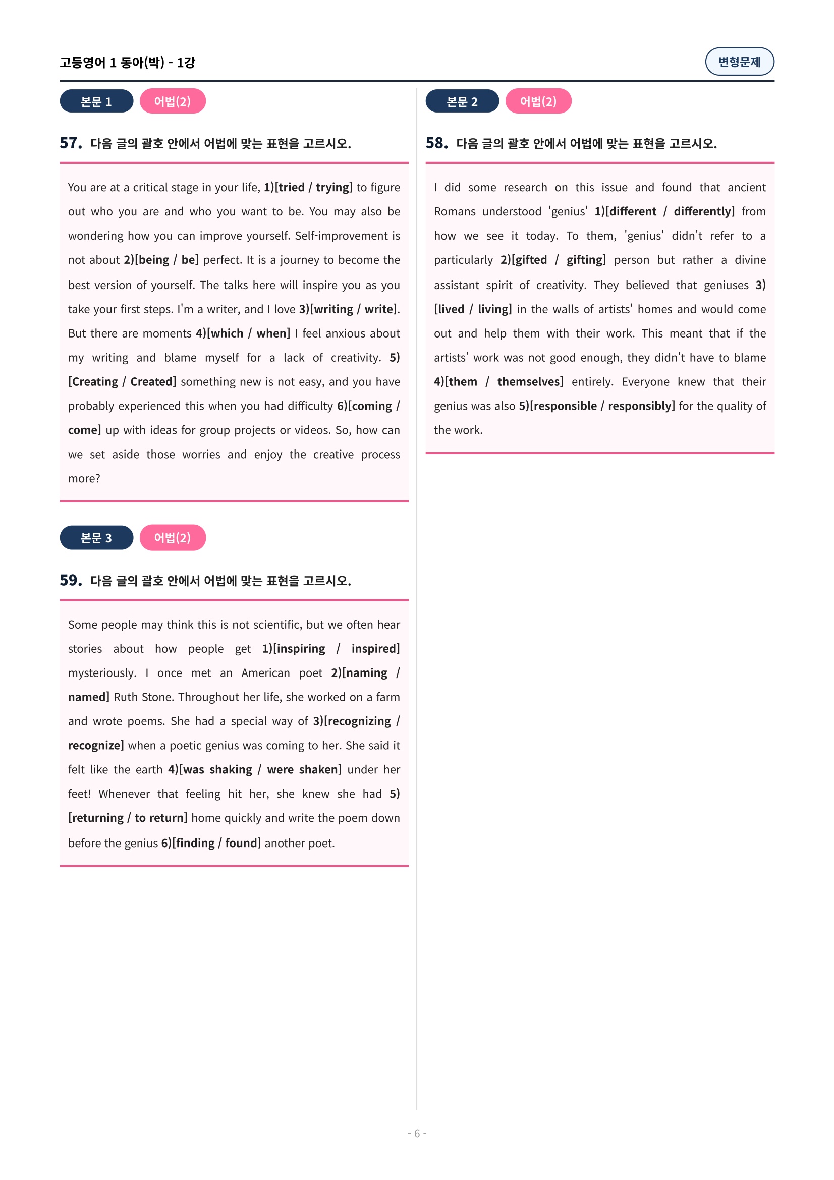 ๐ฉท[์์ด1] ๋์(๋ฐ) 1๊ณผ ๋ณํ๋ฌธ์ (107์ )๐ฉท