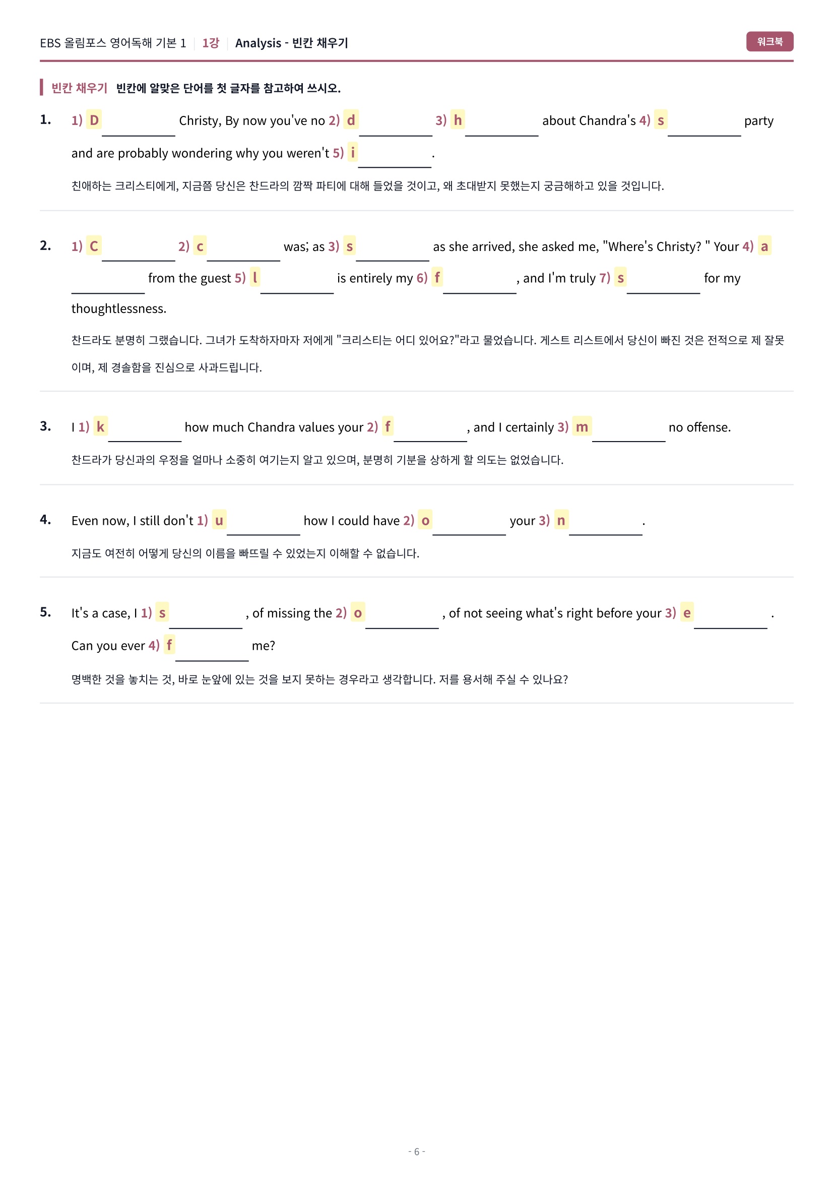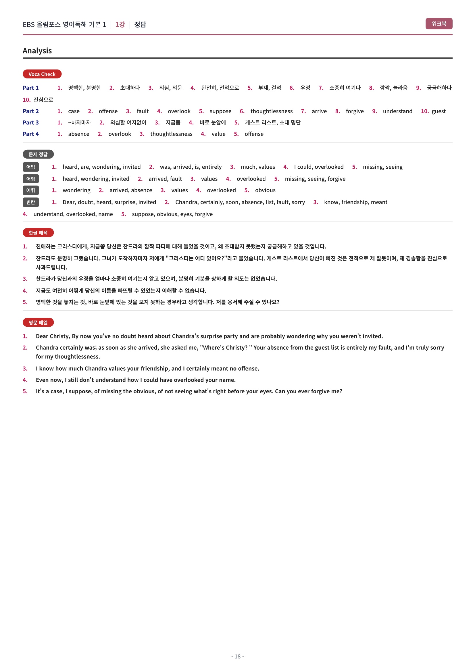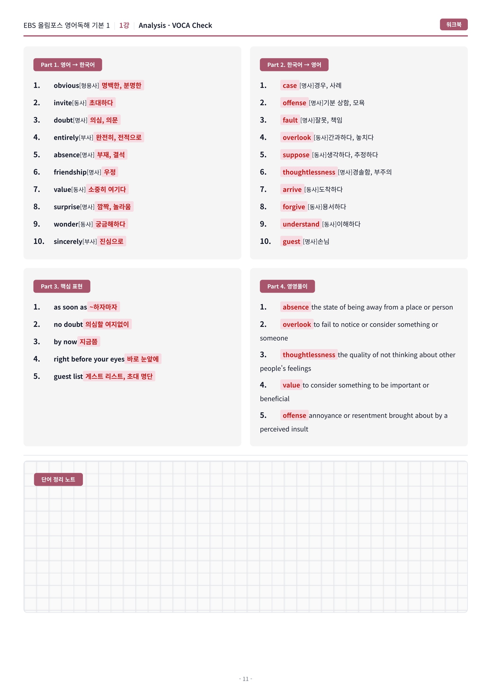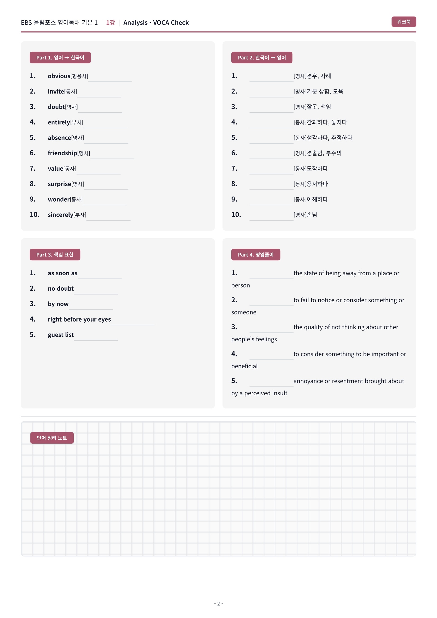 1. VOCA CHECK : ์๋ฌธ + ์ ์ฒดํด์ + ํ์๋จ์ด + ๋์์ด + ๋ฐ์์ด + ์์ํ์ด + ํ์ํํ