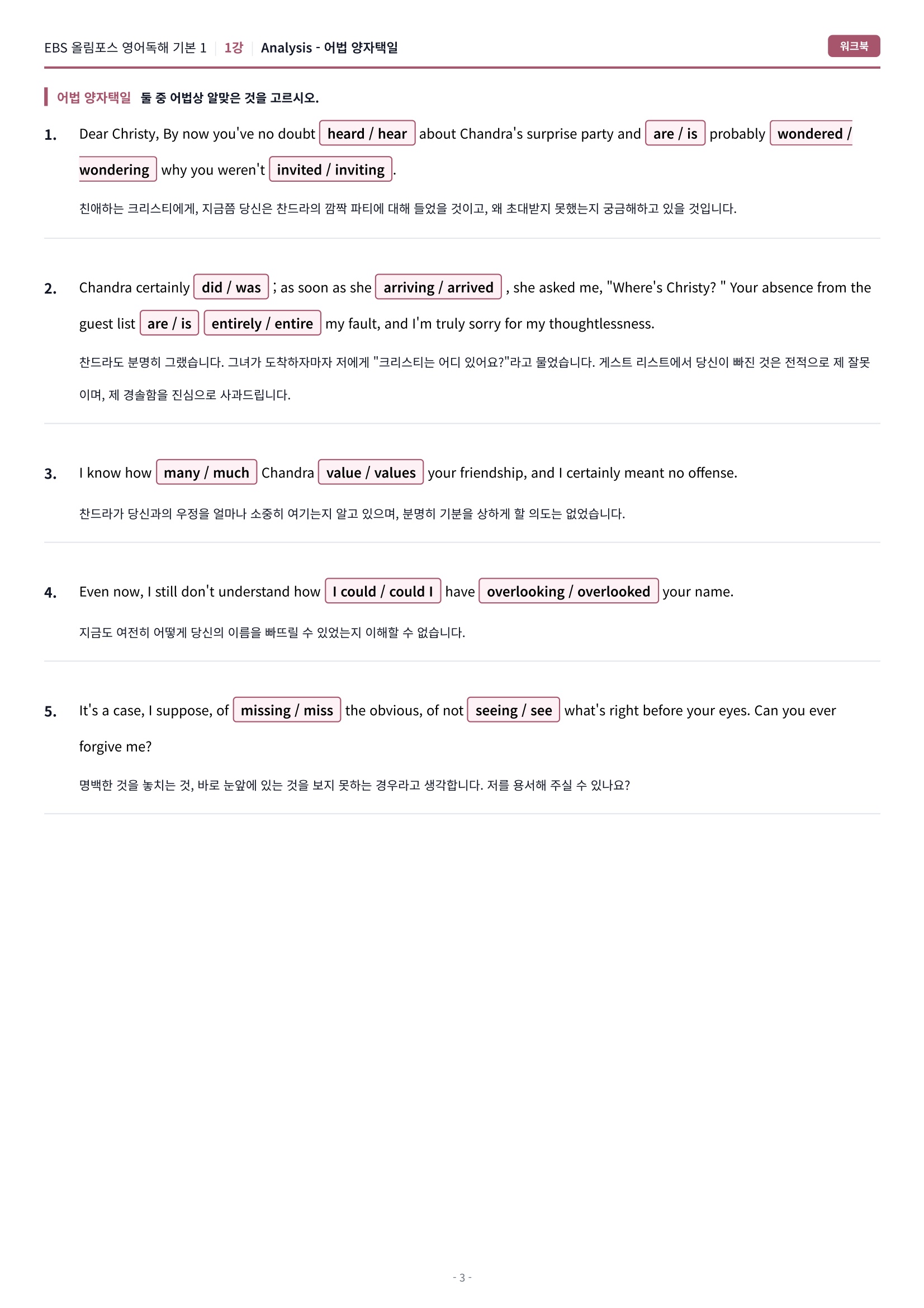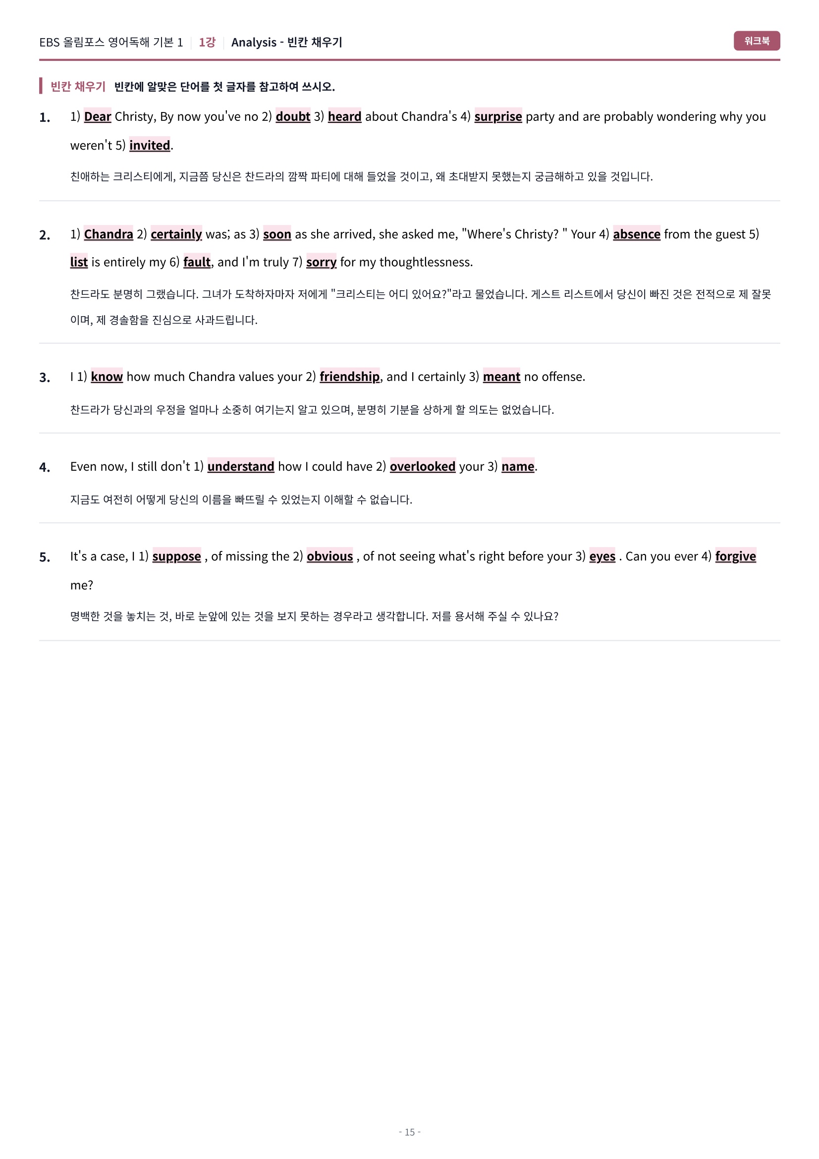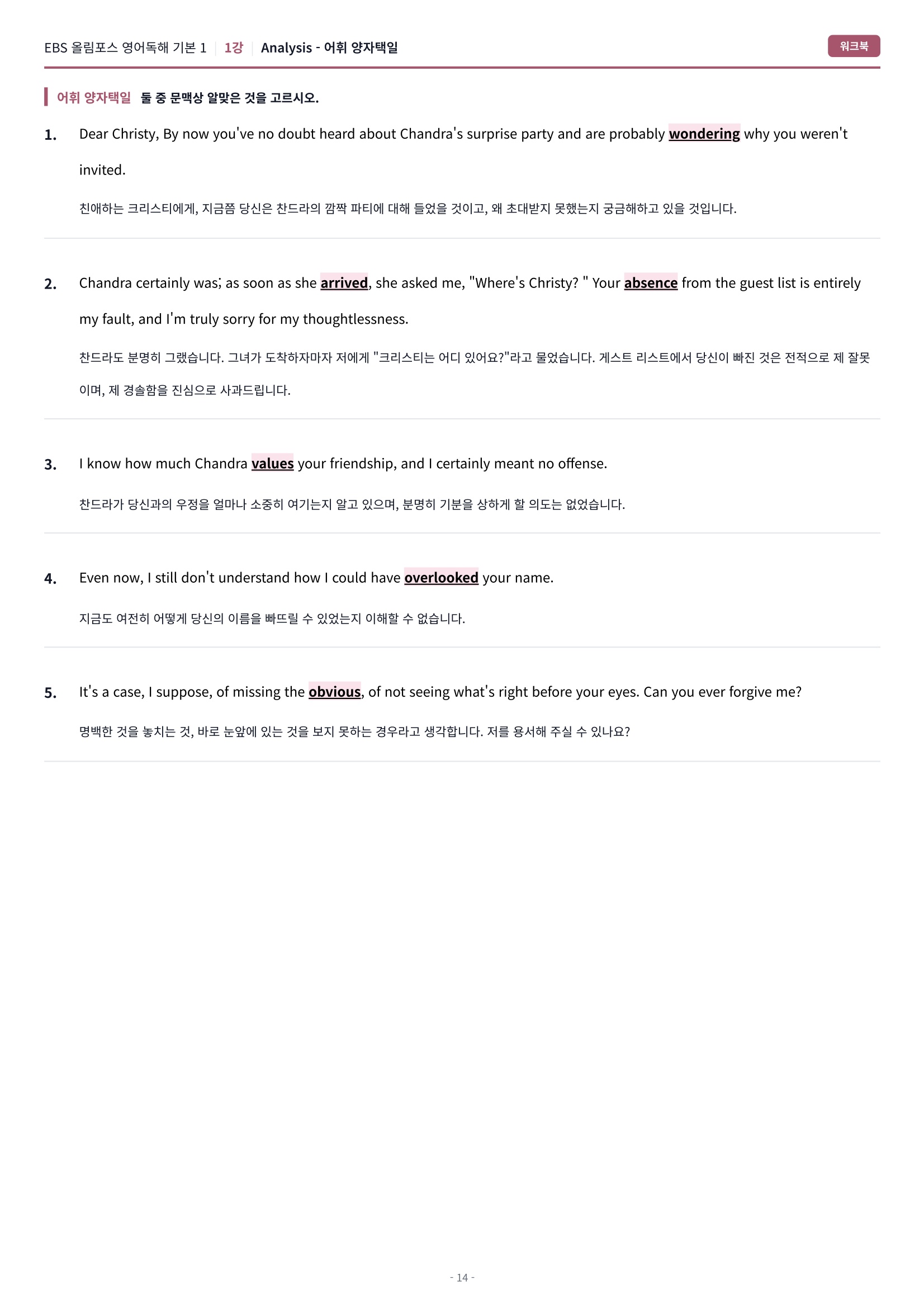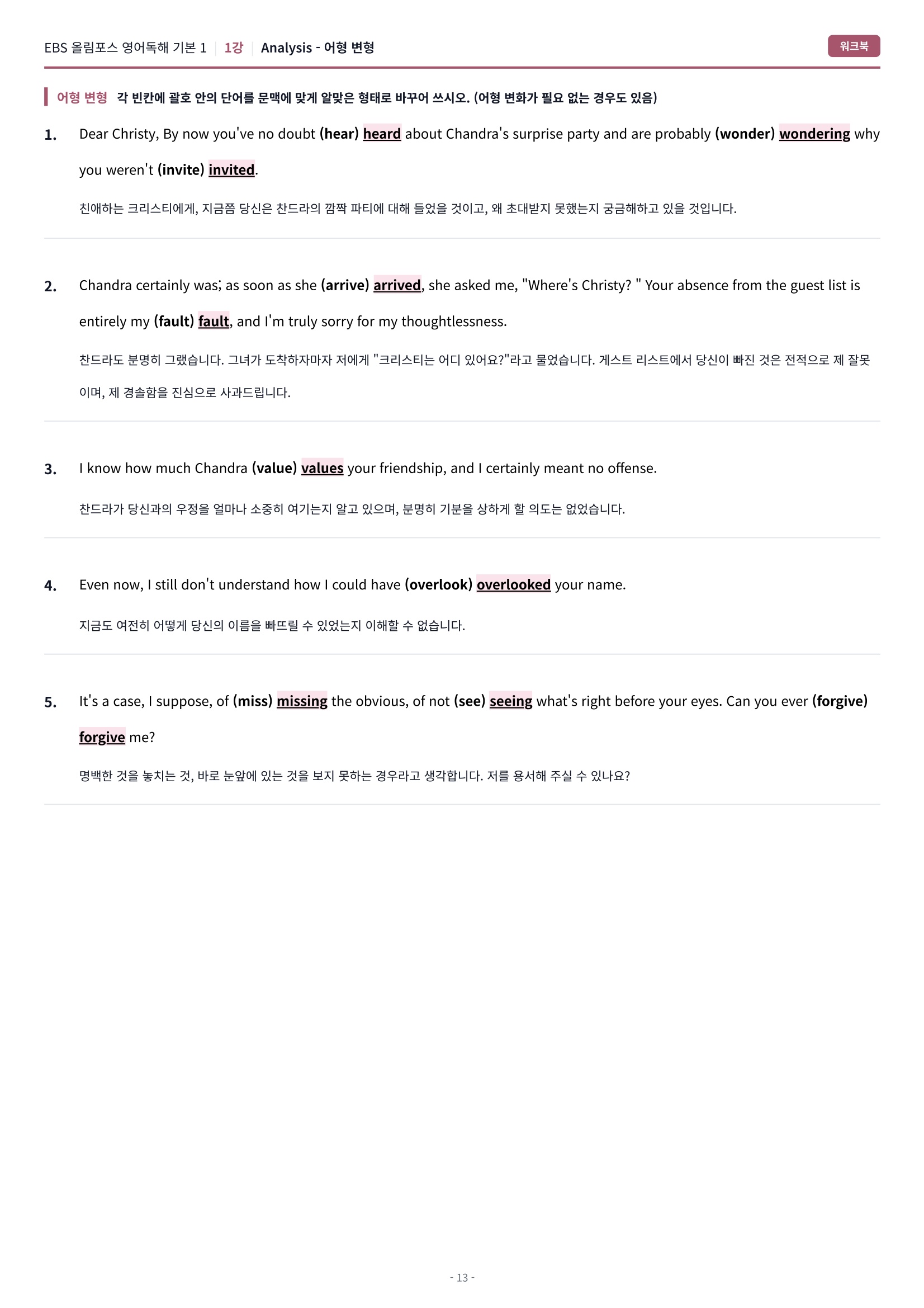 1. VOCA CHECK : ์๋ฌธ + ์ ์ฒดํด์ + ํ์๋จ์ด + ๋์์ด + ๋ฐ์์ด + ์์ํ์ด + ํ์ํํ