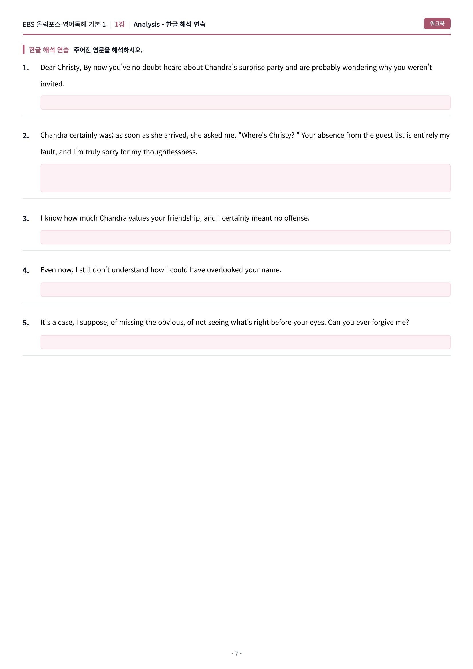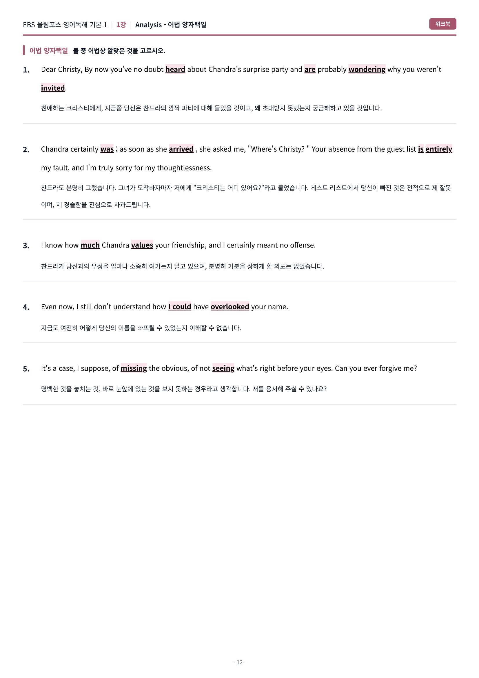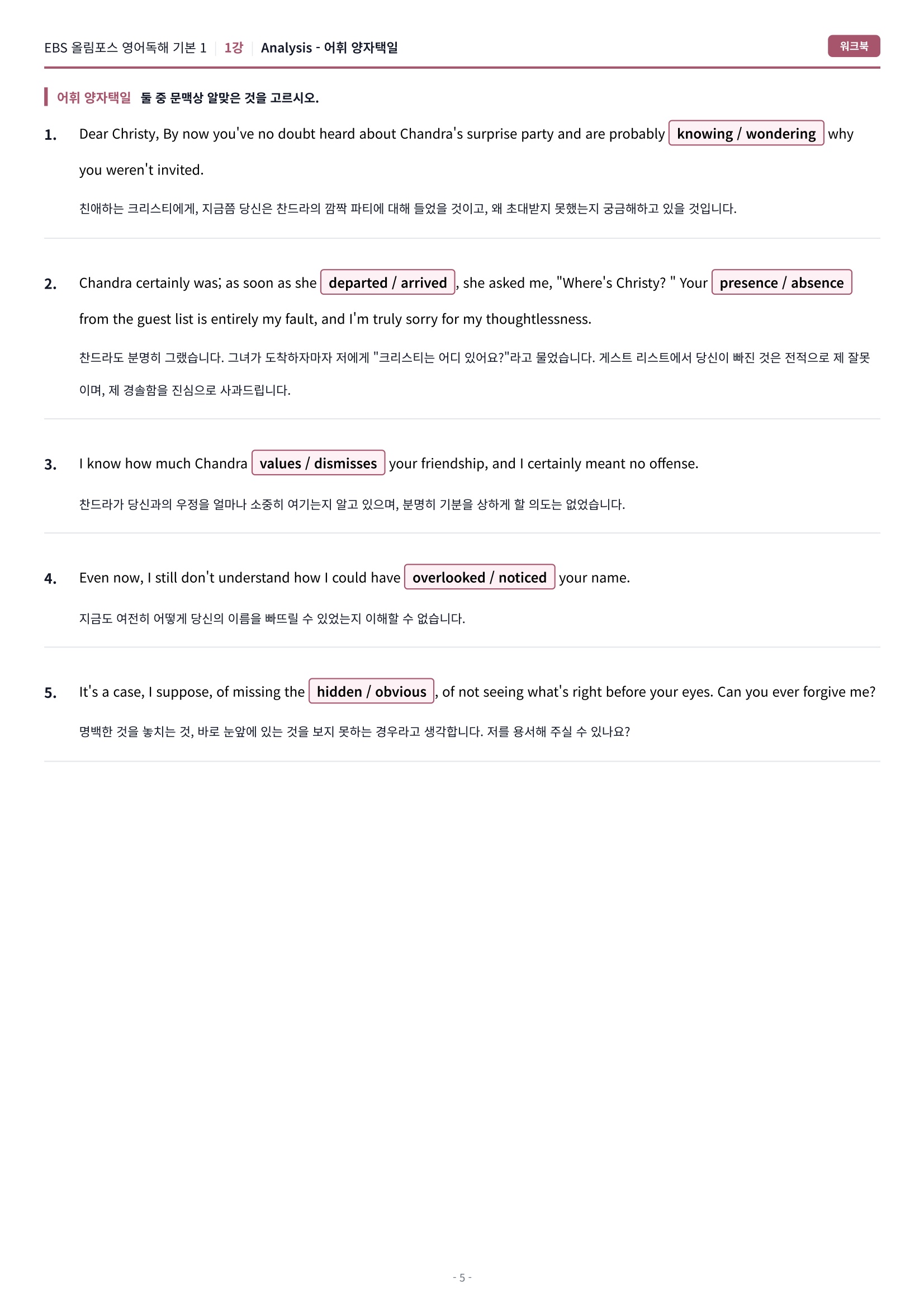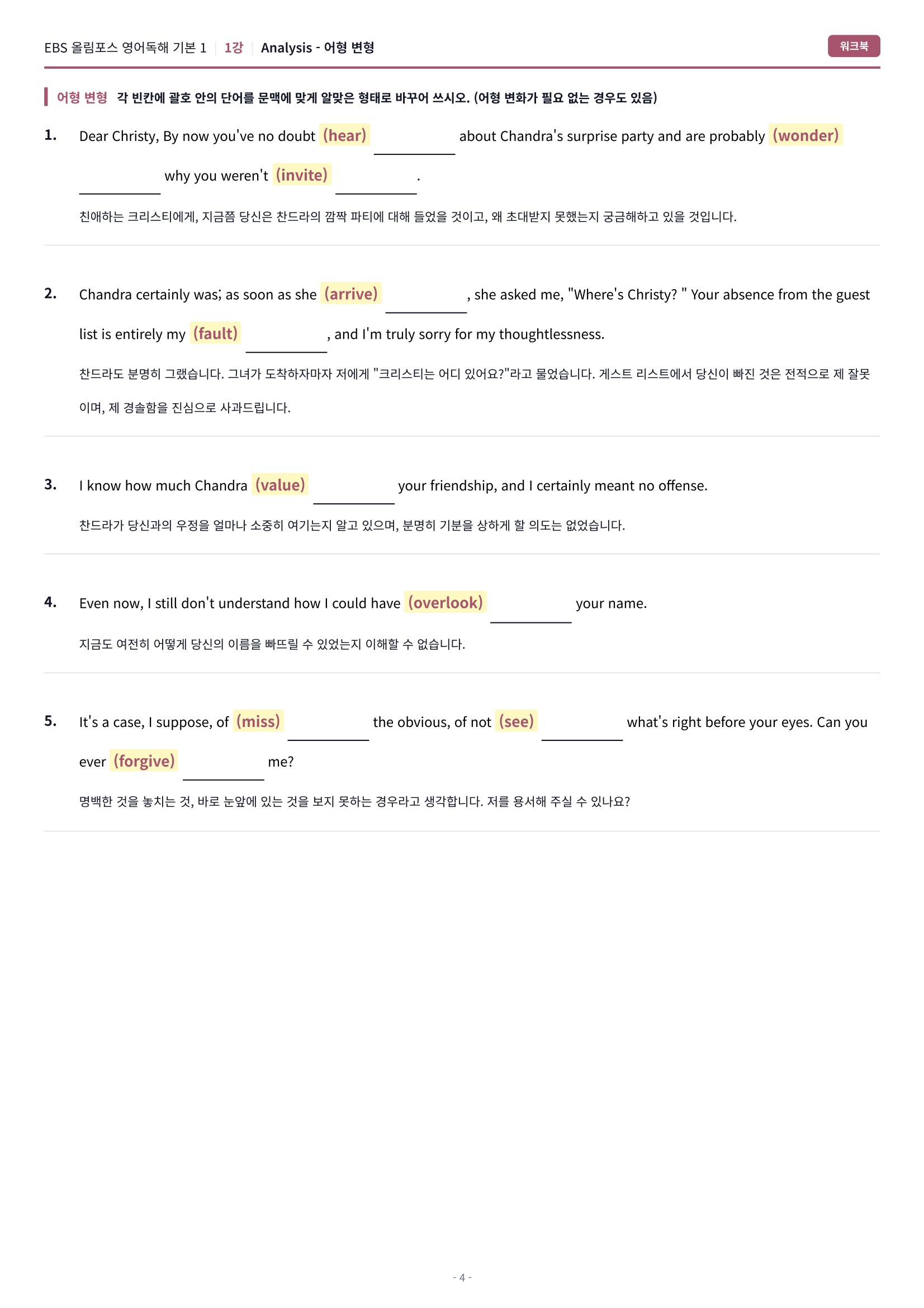 1. VOCA CHECK : ์๋ฌธ + ์ ์ฒดํด์ + ํ์๋จ์ด + ๋์์ด + ๋ฐ์์ด + ์์ํ์ด + ํ์ํํ