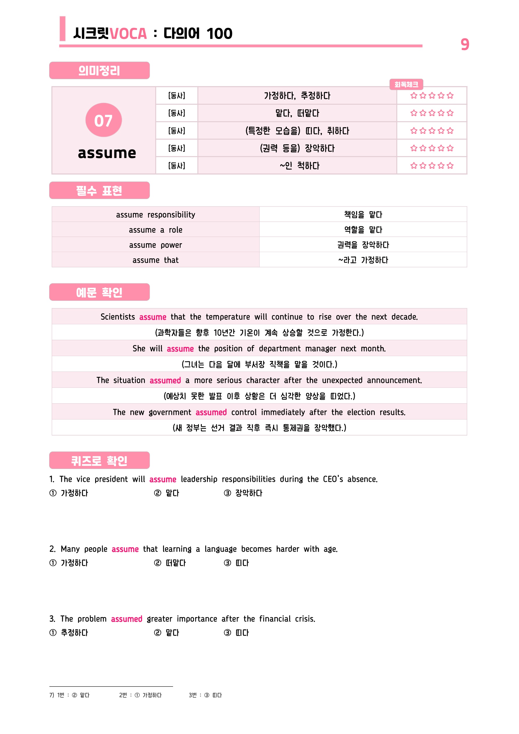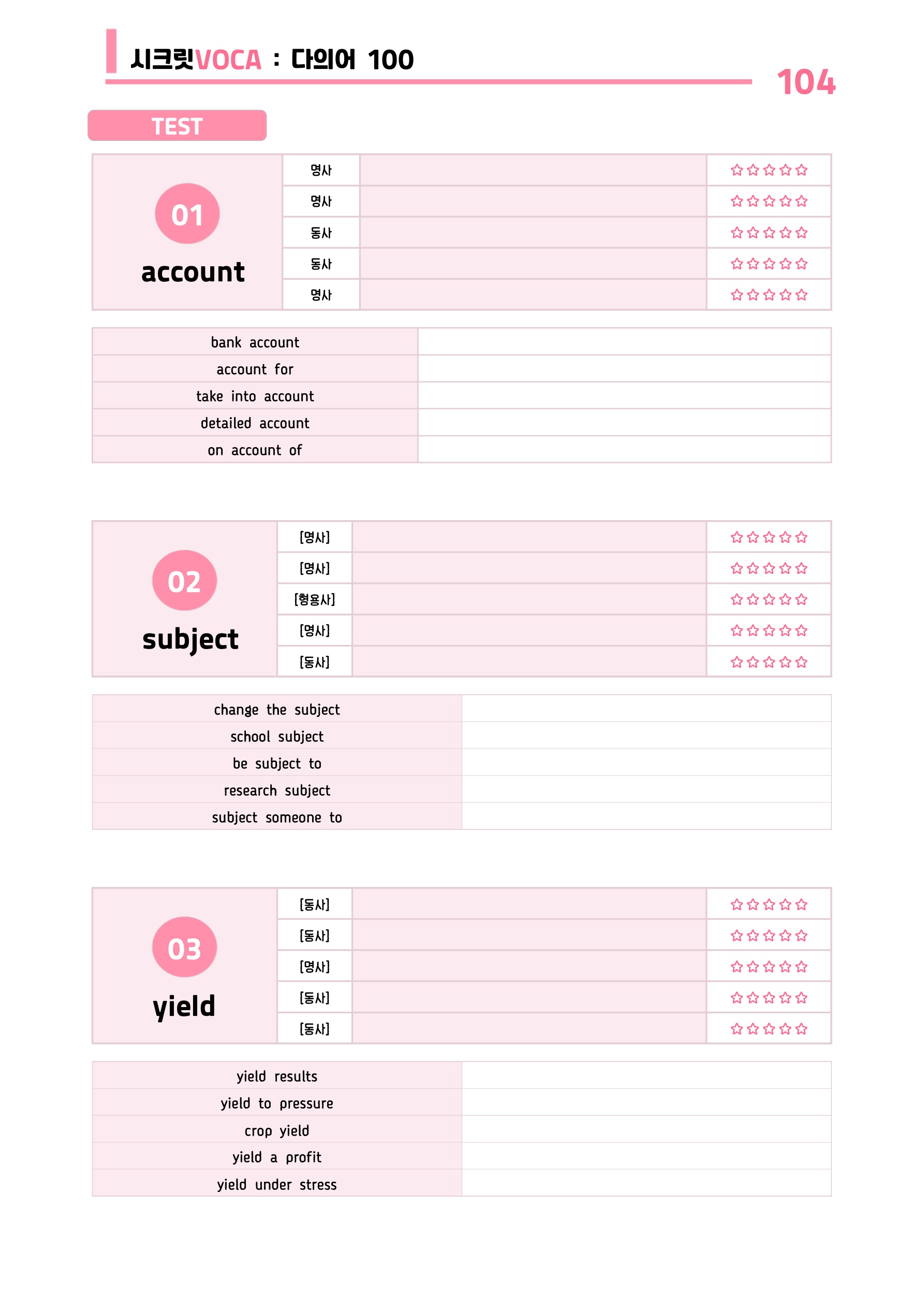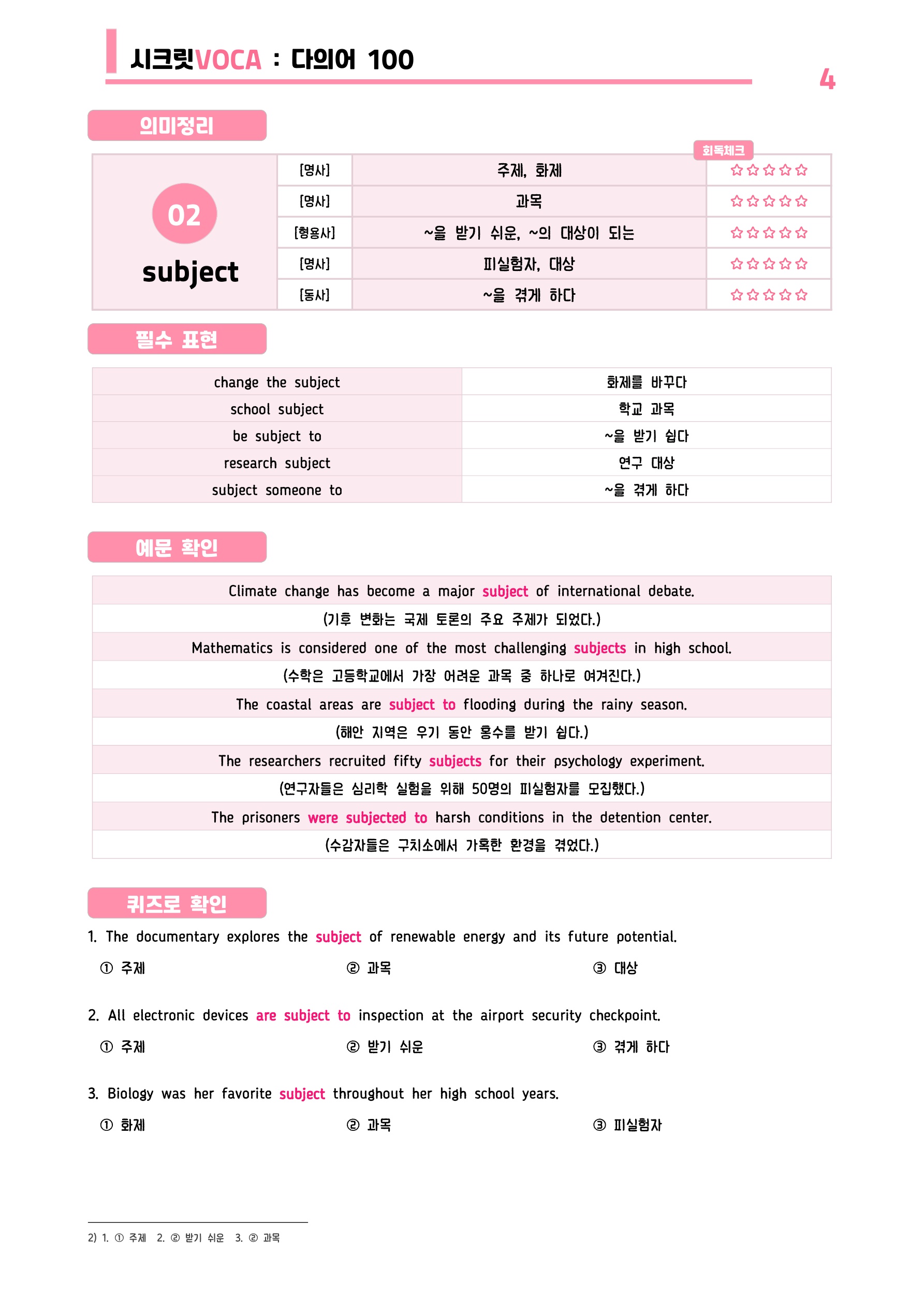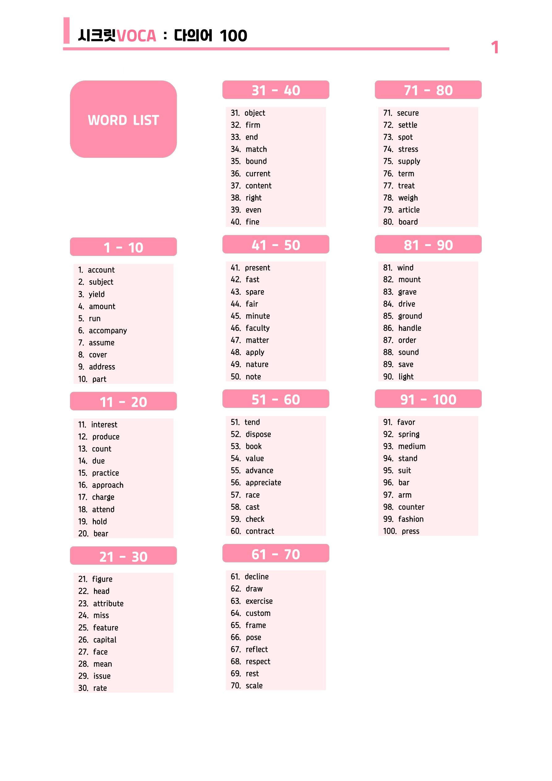 ๐ฉท์ํฌ๋ฆฟVOCA : ๋ค์์ด 100๊ฐ ๋๋ด๊ธฐ - ๋ฐฉํํน๊ฐ ์ดํ ์๋ฃ๐ฉท