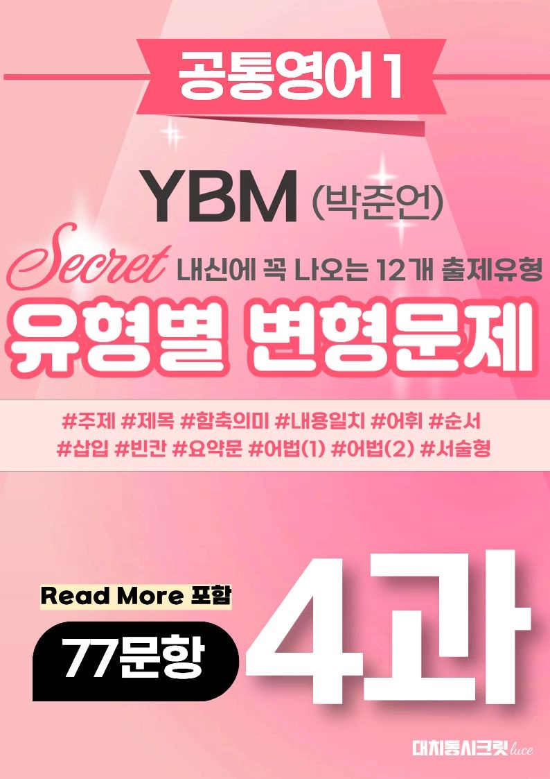 🩷[공통1] YBM(박준언) 4과 변형문제 77제 추가리딩포함🩷